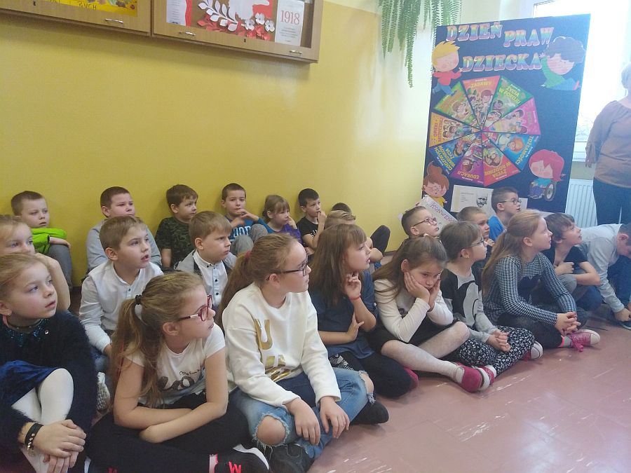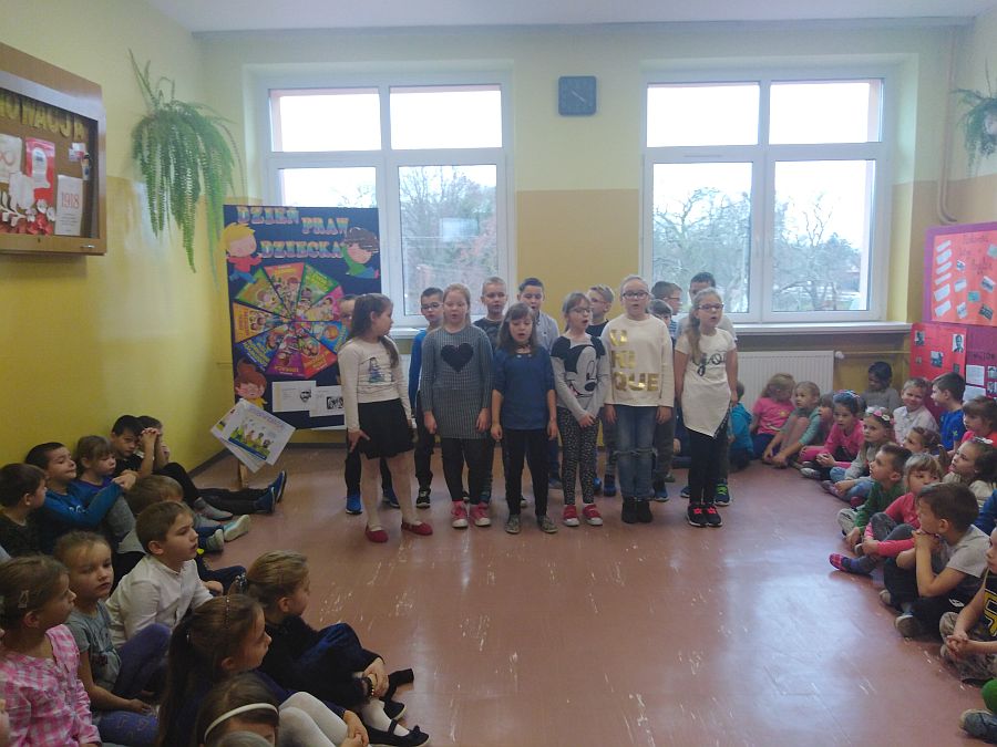 Szkolne spotkanie przeprowadzone pod hasłem: „Masz prawo znać swoje prawa”, rozpoczęto od obejrzenia krótkiego filmiku. Następnie każda klasa zaprezentowała swój punkt widzenia praw dziecka w piosenkach i wierszykach.