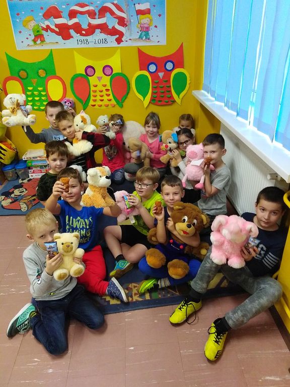 W poniedziałek 26. 11. 2018 uczniowie z klasy I b poznali historię pluszowego misia. Miękki, puchaty i taki z łatką. 25 listopada swoje święto obchodziła najmilsza zabawka, najlepszy przyjaciel dzieci i niezastąpiona przytulanka przy zasypianiu – Pluszowy Miś. Mimo coraz nowocześniejszych i coraz bardziej atrakcyjnych zabawek, moda na misie nie przemija, bo „czy to jutro, czy to dziś, wszystkim jest potrzebny Miś!” Tego dnia uczniowie brali udział w zabawach, śpiewali misiowe piosenki i zajadali misiowe przekąski!!!
