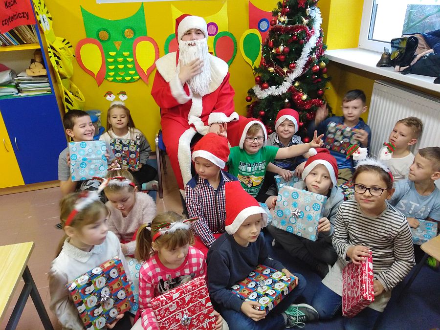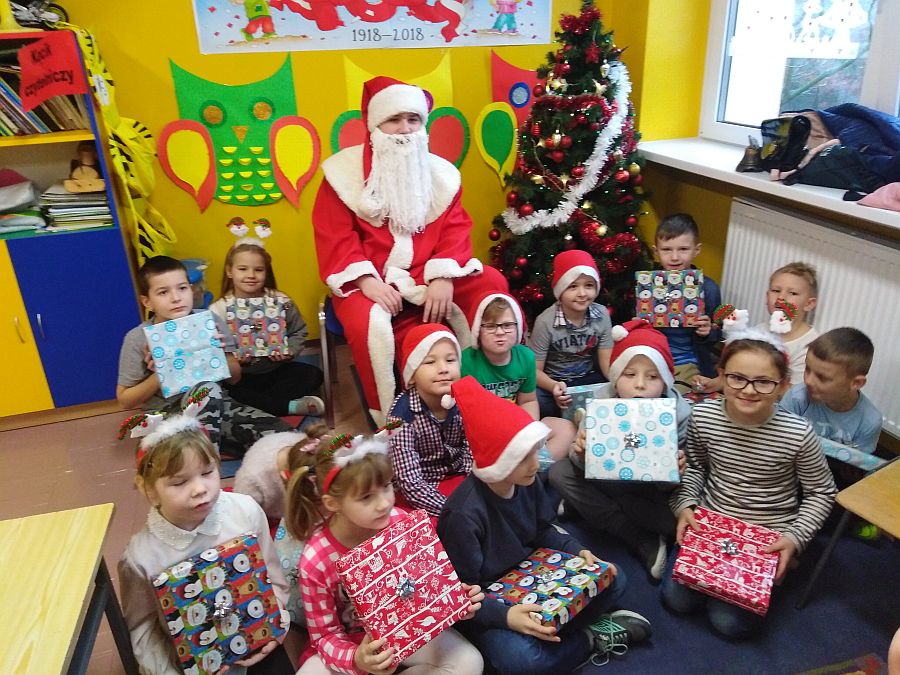 W czwartek, czyli 6-go grudnia panował u nas szczególny klimat, gdyż - zgodnie z tradycją – gościliśmy świętego Mikołaja. Dotarł on do szkoły z workiem pełnym prezentów, co nasi uczniowie przyjęli bardzo entuzjastycznie. Dla każdej klasy znalazły się również cukierki, ufundowane przez dyrekcję szkoły, które wszystkim dzieciom wręczał osobiście Mikołaj. Było dużo radości i uśmiechów. Przejęte i uradowane buźki dzieci potwierdziły, że wierzą w Mikołaja i niecierpliwie go oczekują.