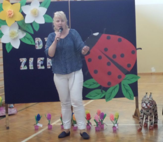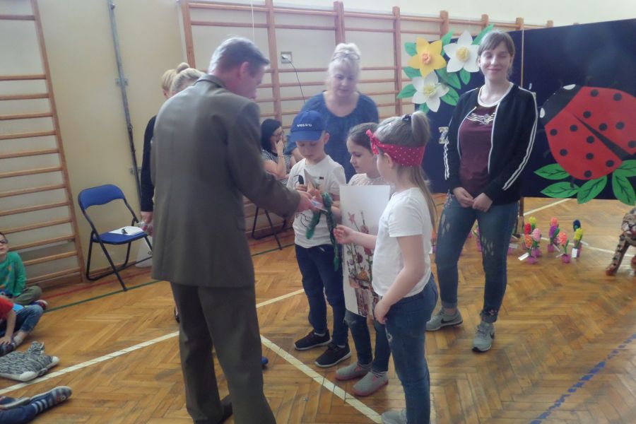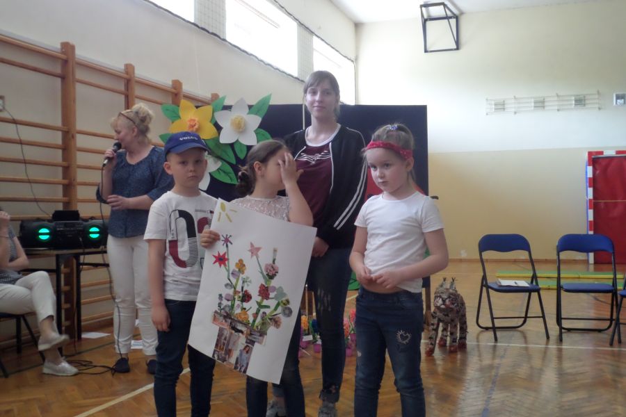 Dni Ziemi obchodzone 22 kwietnia to czas, kiedy ludzie na całym świecie łączą siły, aby uświadomić wszystkim, że wspaniałe dary przyrody trzeba wykorzystywać mądrze - tak, aby starczyło ich dla przyszłych pokoleń. Musimy być przyjaciółmi przyrody - ekologami i dbać o środowisko. Budzenie wśród dzieci i młodzieży współodpowiedzialności za stan środowiska w przyszłości, poczucia troski o stan czystości najbliższego otoczenia oraz wychowanie w duchu miłości i szacunku do przyrody, to główne cele tegorocznych obchodów Dnia Ziemi w naszej szkole, które obyły się 26 kwietnia 2019. Organizatorką była pani Aleksandra Białkowska, ktora przygotowała z tej okazji wiele atrakcji i niespodzianek, a w obchody Dnia Ziemi włączyły się klasy 0-3. Uczniowie klas 0 i klasy pierwszej wzięły udział w konkursie plastycznym. Ich zadaniem było wykonanie przestrzennego kwiatka z gazet. Uczniowie klas drugich i trzecich uczestniczyli w turniejadzie ekologicznej, której motywem przewodnim były polskie parki narodowe. Każda klasa miała także wykonać symbol wybranego przedz siebie parku. Jak zwykle nie zawiedli goście. Byli reprezentanci LOP z Gostynina, którzy najmłodszym członkom wręczyli legitymacje członkowskie LOP oraz przedstawiciele Nadleśnictwa Gostynin - leśniczy Sławomir Waćkowski i leśniczy Waldemar Różański. Na uczestników konkursów i turniejady czekały nagrody niespodzianki, które wręczyła pani dyrektor Ewa Romańska.