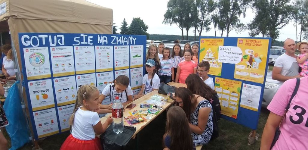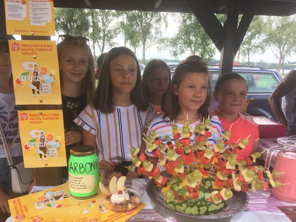 a) “Lokalna kampania informacyjna” - uczniowie klasy VB w dniu 22. 06. 2019 uczestniczyli w imprezie plenerowej “Biesiada Świętojańśka” organizowanej przez Samorząd Gminy Nowy Duninów, Szkołę Podstawową w Nowym Duninowie, Radę Rodziców oraz stowarzyszenia gminne. Podczas imprezy nad Zalewem Wiślańskim w Nowym Duninowie, uczniowie wraz z Panią Agnieszką Paradowską oraz Aleksandrą Migdalską na stoisku przez nich przygotowanym promowali zasady zdrowego żywienia. Uczniowie wykonali tablice informacyjne, na których pokazali piramidę zdrowego żywienia, instrukcje jak czytać etykiety produktów i które produkty wybierać, aby być zdrowym. Uczniowie w porcie nad Zalewem Wiślańskim w Nowym Duninowie rozdawali ulotki informacyjne o zdrowych technikach kulinarnych oraz przepisach na smaczne kolrowe koktajle, a dodatkowe zachęcali do odwiedzenia stoiska z kiermaszem potraw przyrządzonych przez nich. Zasadniczym celem kampanii informacyjnej było promowanie zdrowych nawyków żywieniowych wśród lokalnej społeczności, zachęcenie do zmiany trybu odżywiania i pogłębienia wiedzy na temat zdrowego stylu życia. Kampania promująca prawidłowe żywienie umożliwiąła uczniom zdobycie umiejętności związanych z reklamą i promocją podczas imprez plenerowych.
