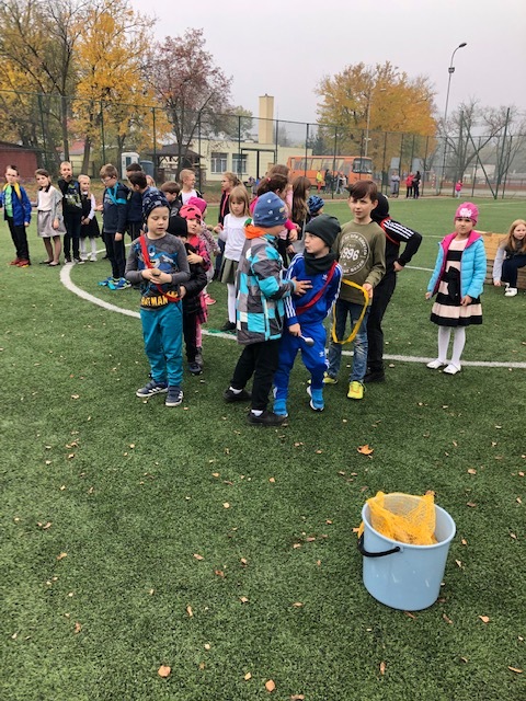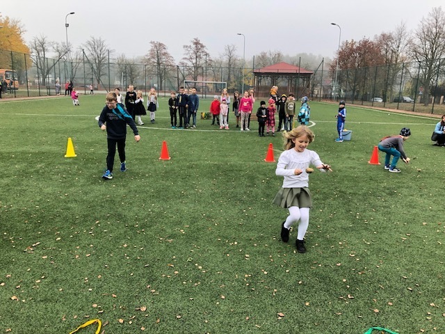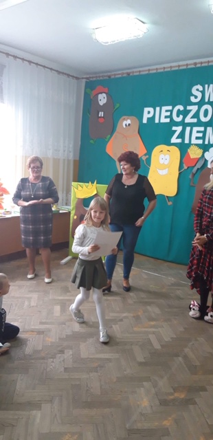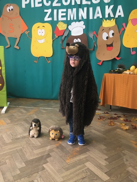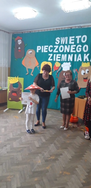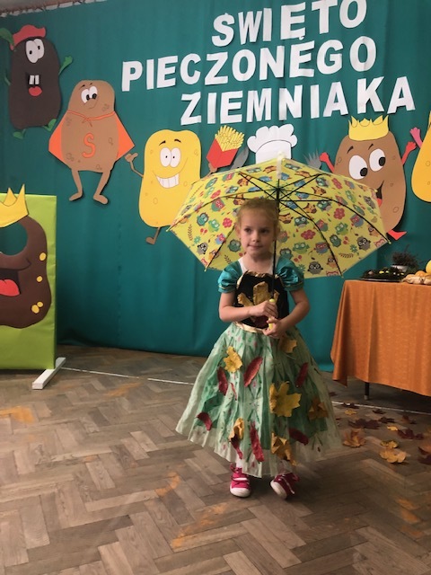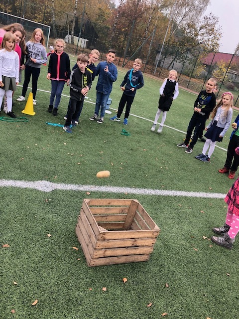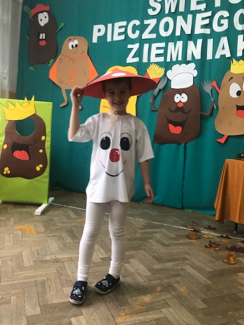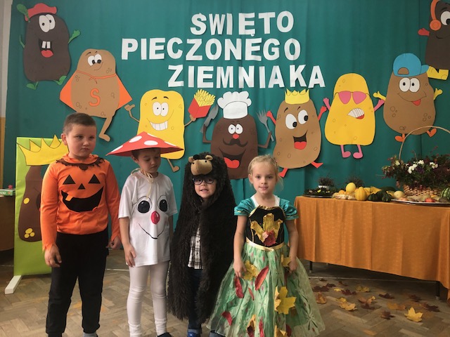 Spotkanie rozpoczęło się na sali gimnastycznej od zapoznania dzieci z historią pochodzenia ziemniaka i jego nazw w różnych regionach i dialektach. Następnie finaliści konkursu „Jesień w książce i na okładce” zaprezentowali się w pięknych, jesiennych wierszach. Po krótkiej przerwie na słodki poczęstunek i obradach jury p. Dyrektor oraz organizatorzy p. D. Buczyńska i p. K. Szymkowiak nagrodziły zwycięzców konkursu prezentami i pamiątkowymi dyplomami. Korzystając z pogodnej aury spotkanie przeniosło się na boisko szkolne. Uczestnicy brali udział w różnych grach sportowych, a najwięcej zabawy i śmiechu dostarczyła konkurencja „sadzenie ziemniaka”. Po doskonałej rywalizacji nadszedł czas na degustację smakowitych ziemniaków pieczonych w ognisku, nad którymi dzielnie czuwali rodzice naszych uczniów. Z dobrym humorem oraz uśmiechem na twarzach, na których pozostały jeszcze ślady pieczonych smakołyków, zakończono obchody „Święta pieczonego ziemniaka”.