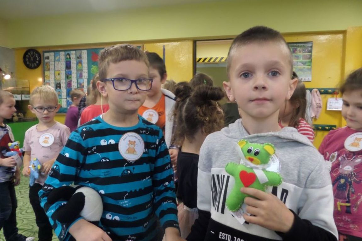 25 listopada w oddziałach przedszkolnych było bardzo miło, przytulnie i przyjemnie, a to za sprawą pluszowych przyjaciół, które przyniosły dzieci. Tego właśnie dnia obchodziliśmy Światowy Dzień Misia. Krótką historię powstania pierwszego misia dzieci poznały 8 listopada na warsztatach edukacyjnych w Stróżewku, podczas których wykonywali swoje własne misie. Motywem przewodnim naszego święta był niedżwiedź polarny. Dzieci poznawały jego wygląd, miejsce życia, sposób odżywiania i inne ciekawostki i porównywały te wiadomości z wiadomościami na temat niedźwiedzia brunatnego występującego u nas. Potem przyszedł czas na wspólną zabawę gry i konkursy. Dzieci miały za zadanie rozpoznać owoce po smaku, ułożyć misiowe puzzle, rozpoznać kolegę tylko po butach, a także przeprowadzić swojego misia po cienkiej linie nad olbrzymią przepaścią. Wszyscy bawili się wspaniele. Z niecierpliwością czekamy już na przyszłoroczne święto.
