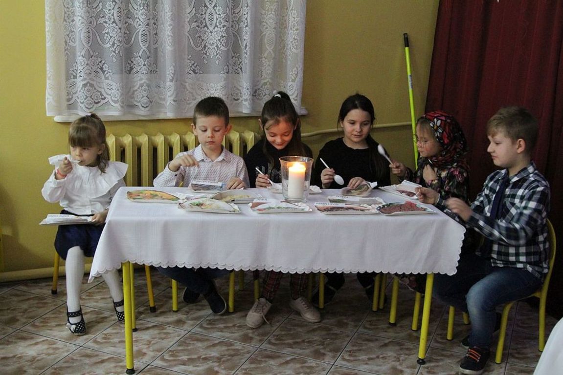 Na zakończenie głos zabrała Pani Dyrektor, która złożyła zebranym gościom życzenia bożonarodzeniowe, a następnie wszyscy podzielili się opłatkiem. Mali aktorzy wprowadzili zebranych w świąteczny nastrój, a śpiew kolęd i pastorałek dopełniał całość przedstawienia.