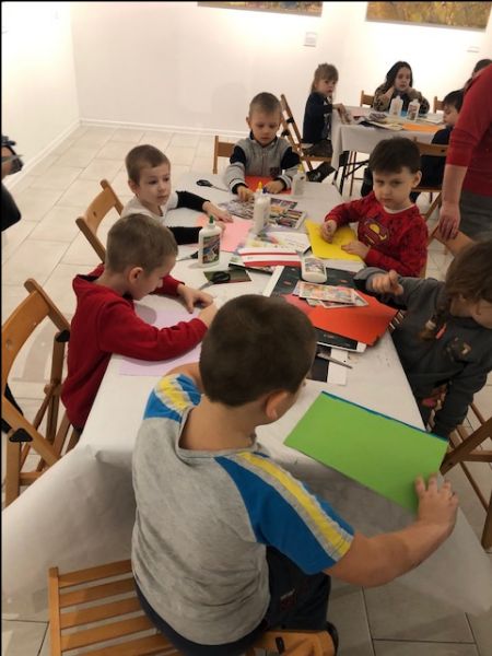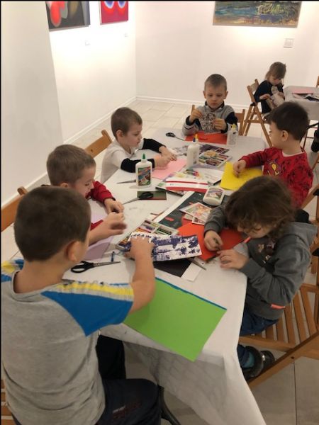 Po zwiedzeniu wystawy dzieci wzięły udział w warsztatach plastycznych; pod kierunkiem pana Mirosława wykonywały prace wykorzystując technikę zwaną kolażem. Kreatywność i duże zaangażowanie w wykonywaną pracę, dały wspaniałe efekty. Powstały własne, niepowtarzalne dzieła sztuki dziecięcej, które będą ozdobą klas lekcyjnych. Chyba warto było pojechać i chyba warto będzie jeszcze raz powtórzyć taki wyjazd.
