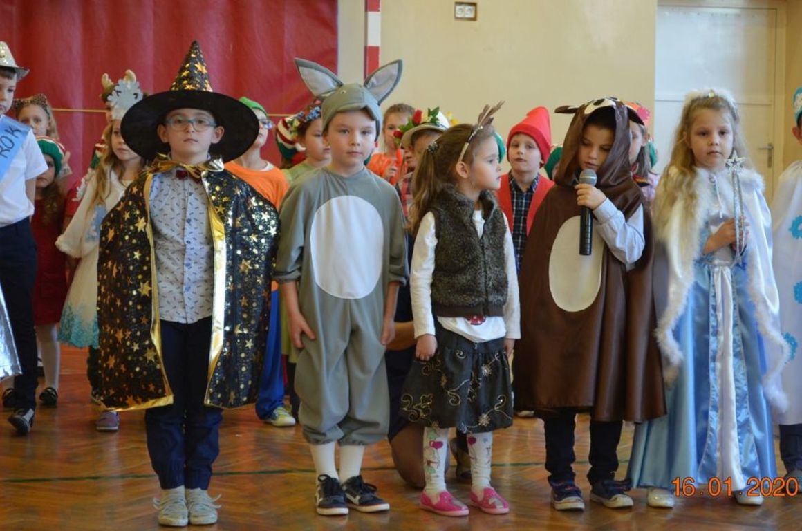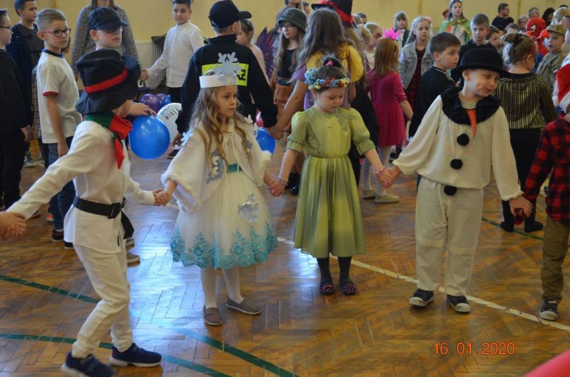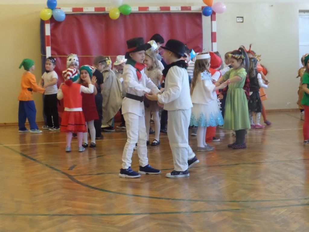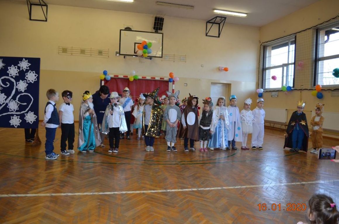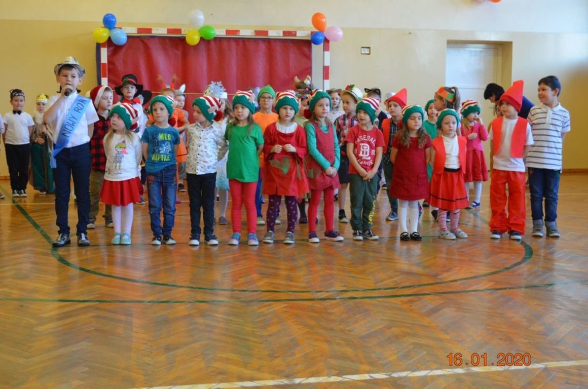 Na ten dzień dzieci czekały od dawna. Już od poczatku grudnia trwały przygotowania, dzieciaki uczyły się piosenek i wierszyków, a rodzice szykowali piękne stroje. 16 stycznia wszystkie przedszkolaki spotkały się i czekały na Mikołaja. Jakie było zdziwienie, gdy zamiast Mikołaja pojawiła się pani Mikołajaowa z pełnym workiem prezentów. Odczytała list od Mikołaja, a następnie wszystkim grzecznym dzieciom wręczyła prezenty. Po tym zaskakującym spotkaniu przedszkolaki zaprezentowały przygotowane na tę okazję przedstawienie "Dary Nowego Roku". Mali aktorzy wypadli świetnie, za co zostali nagrodzeni przez publiczność wielkimi brawami. Po przedstawieniu przyszła pora na tańce, gry, zabawy i konkursy. Zabawy i radości było co niemiara. W miłej i radosnej atmosferze wspólnie bawiły się maluchy z "zerówek " i ich starsi koledzy z klas I - III. Na następny bal zapraszamy już za rok.