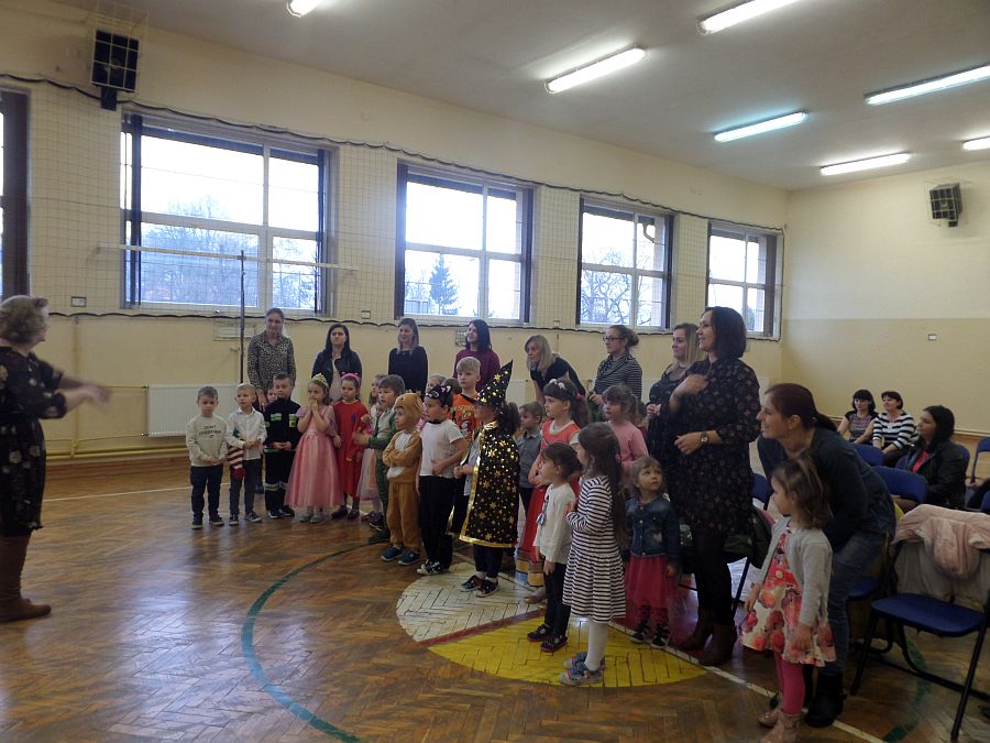 Od wielu lat organizujemy Dzień Otwarty dla przyszłych przedszkolaków. W tym roku spotkanie odbyło się 2 marca. Panie od rana szykowały upominki, słodycze, dekoracje. Dzieci układały na półkach równiutko lalki, samochody i inne zabawki, wszystko na przybycie gości. Na przyszłych przedszkolaków czekało wiele atrakcji. Goście serdecznie powitani przez panie A. Białkowską, A. Piątek, D. Sudomir mieli możliwość obejrzenia przedstawienia pt. „W świecie bajek” w wykonaniu dzieci uczęszczających do przedszkola. Dzieci pięknie się prezentowały w bajkowych strojach, a przybyłe maluchy bezbłędnie rozwiązywały zagadki. Przyszli wychowankowie chętnie włączali się do zajęć zorganizowanych przez nauczycielki. Podczas swobodnych zabaw mieli okazję poznać swoich rówieśników, mogli również oswoić się z nowym miejscem, aby we wrześniu chętnie i bez obaw do niego wrócić.