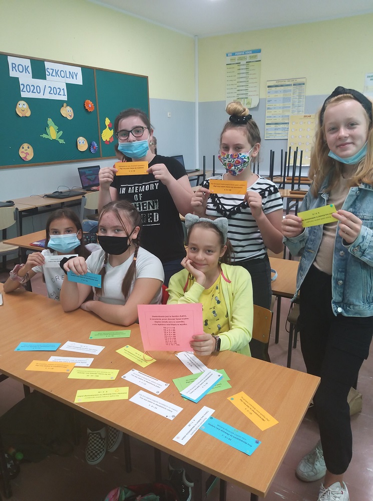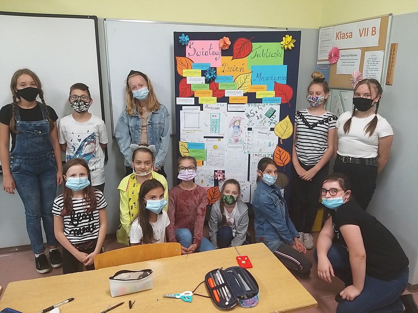 W tym roku uczniowie klasy VIA przygotowali wystawę z pracami plastycznymi oraz wierszykami ułatwiającymi zapamiętywanie tabliczki mnożenia. „Tabliczkowa wiedza” sprawdzana była podczas krótkich egzaminów z tabliczki mnożenia, które z uwagi na sytuację epidemiologiczną odbywały się w poszczególnych klasach. Egzaminatorami byli uczniowie klasy VIA m. in.: Wiktoria Domańska, Oliwia Kamińska, Miriam Woźniak, Szymon Przytuła, Adam Niewiadomski, Tomasz Stołowski, Jakub Franciszkiewicz, Natalia Wenderlich, Julia Niewiadomska, Amelia Starzyńska. Uczniowie losowali mini teściki z 5 działaniami z tabliczki mnożenia. Egzaminatorzy pod opieką Pani Agnieszki Paradowskiej sprawdzali rozwiązania uczniów.