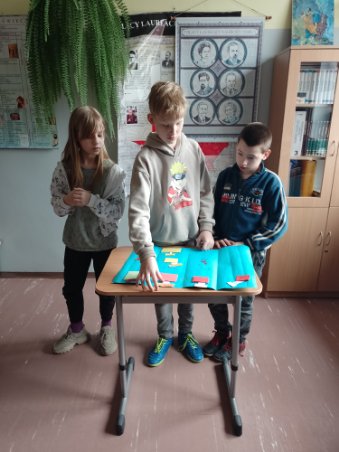 Uczniowie klasy 4b w ramach zadania projektowego na lekcji języka polskiego otrzymali polecenie wykonania lapbooka.