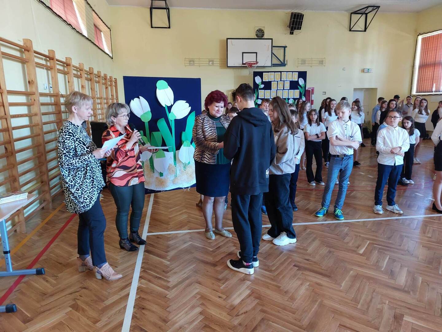 Podczas apelu wręczony nagrody wyróżnionym w konkursie szkolnym