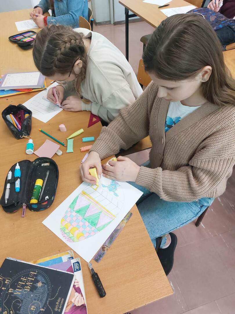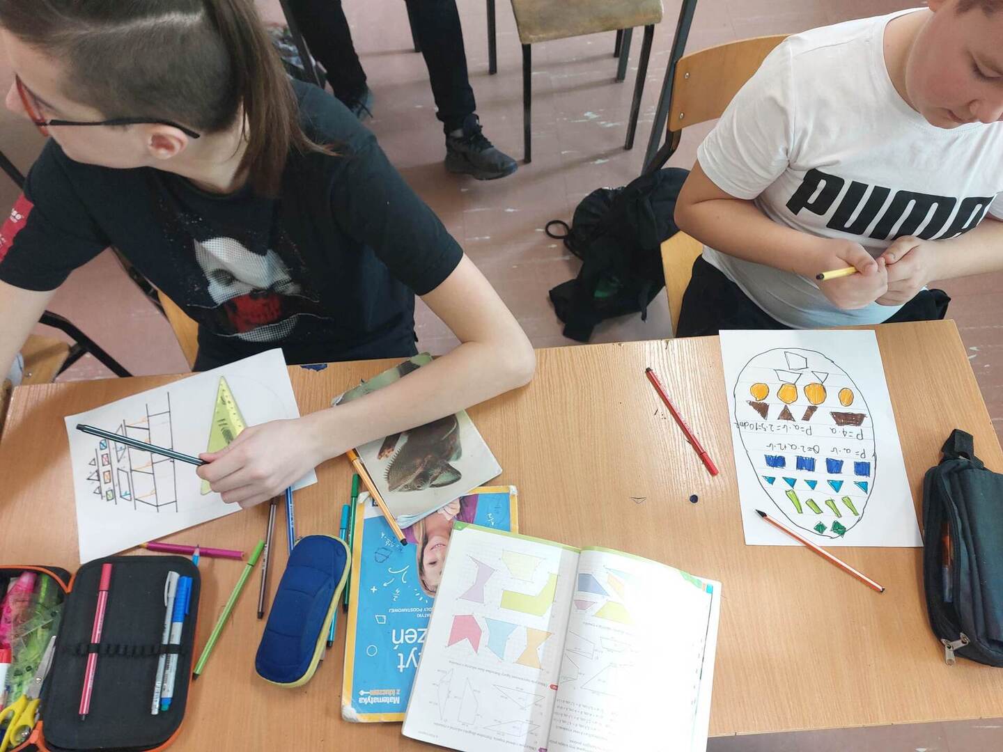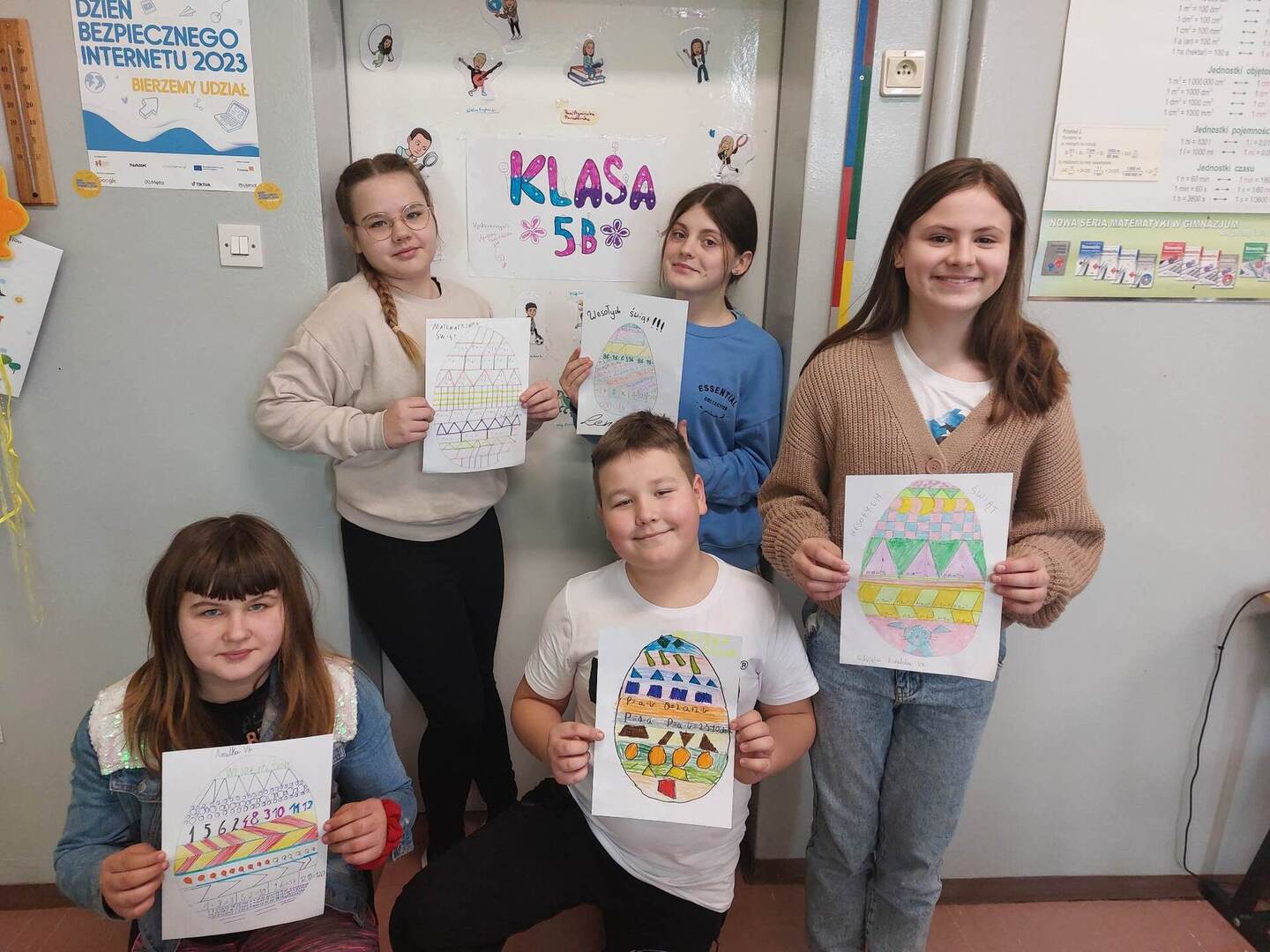 Uczniowie klasy Vb wykonywali dziś matematyczne pisanki.