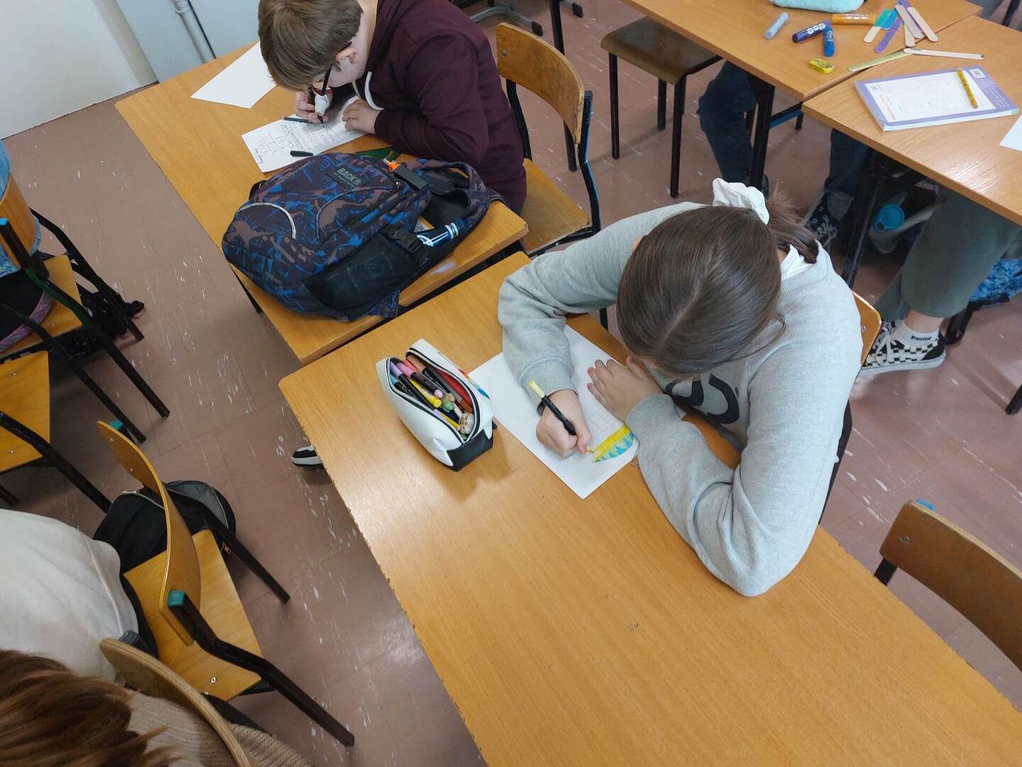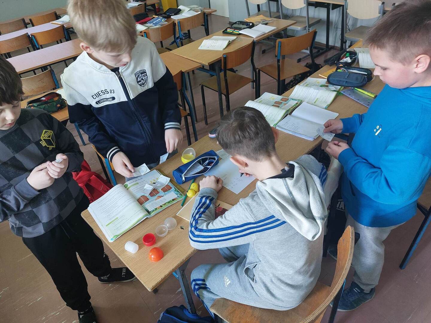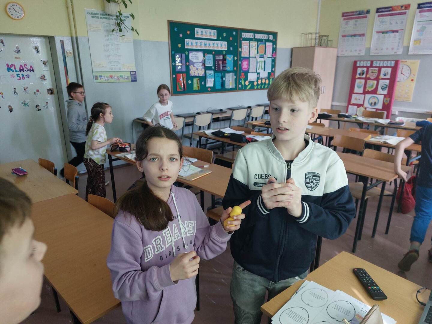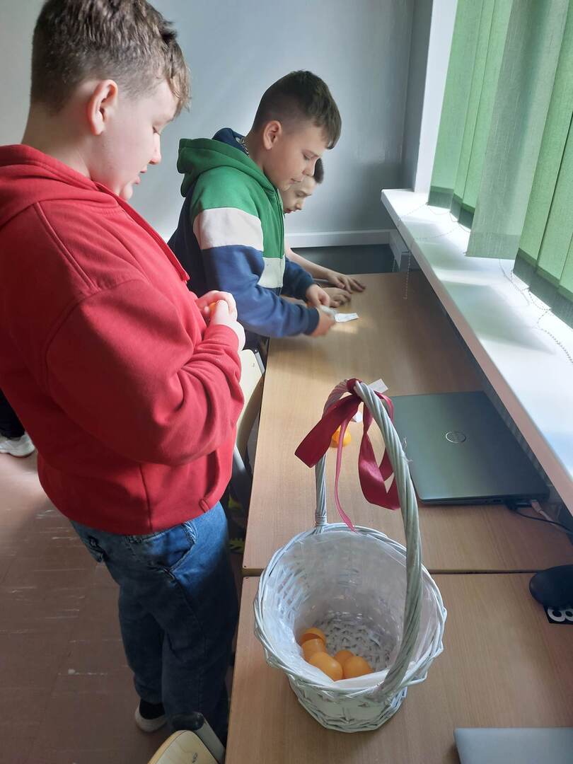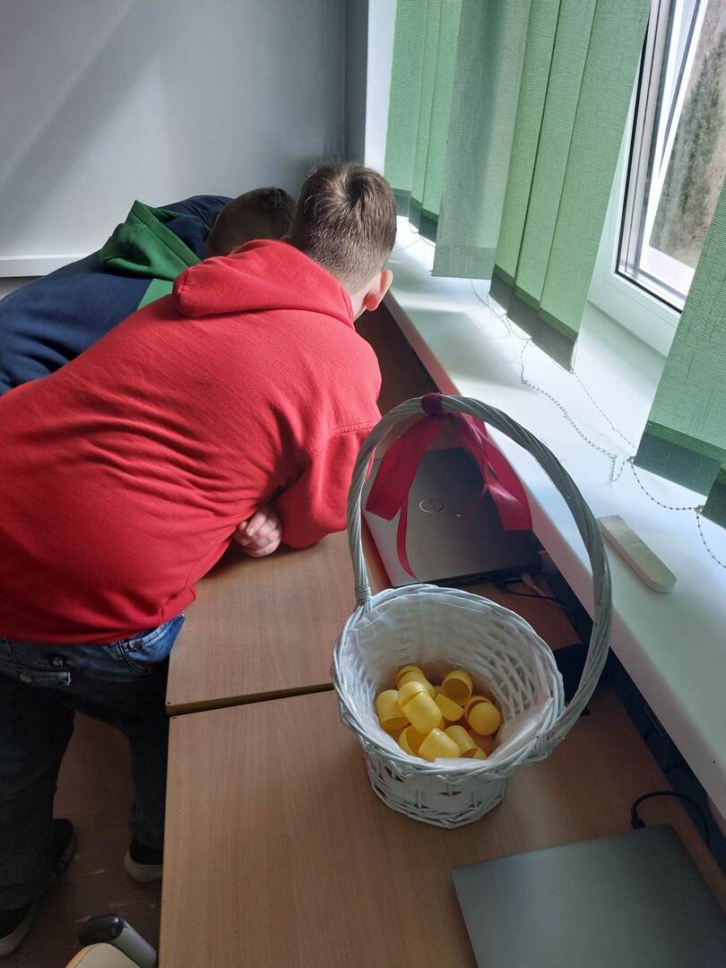 Na koniec lekcji zrobili niespodziankę siódmoklasistom i dla nich również pochowali jajka w zakamarkach klasy.