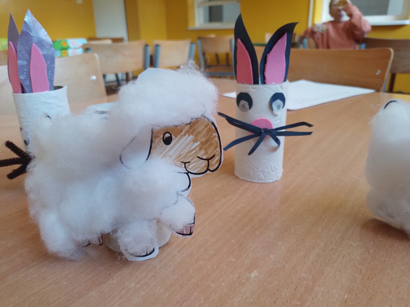 Na zajęciach świetlicowych dzieci wykonywały prace plastyczno-techniczne związane z tradycjami Świąt Wielkanocnych: palmy, pisanki, zajączki, baranki.