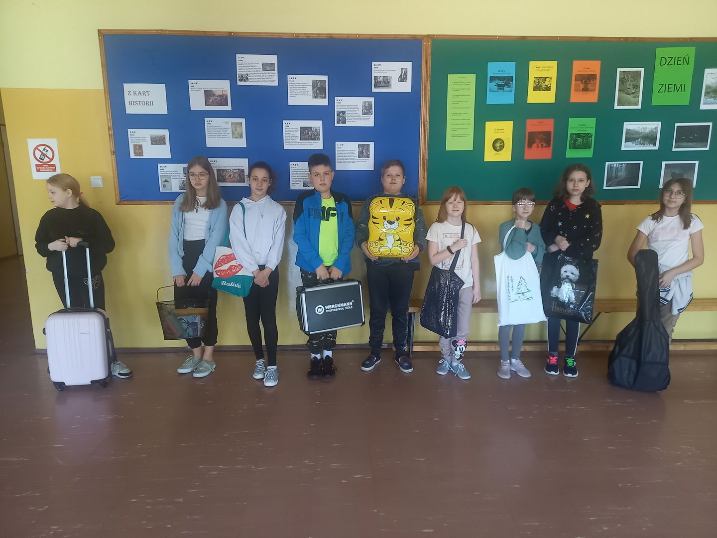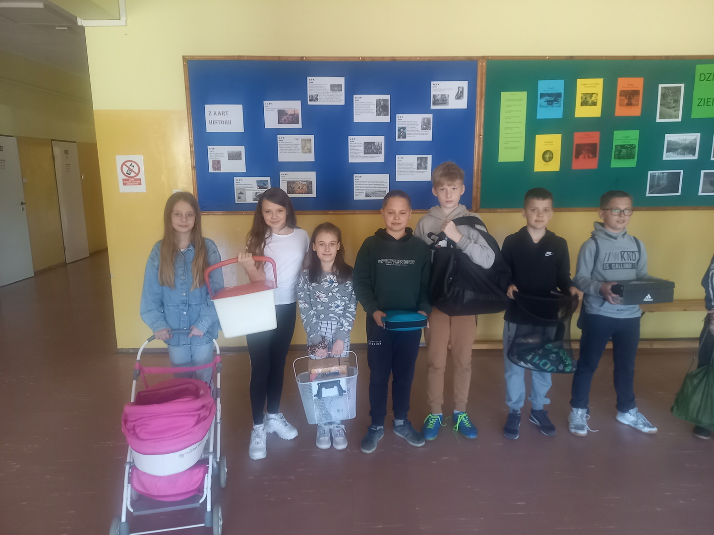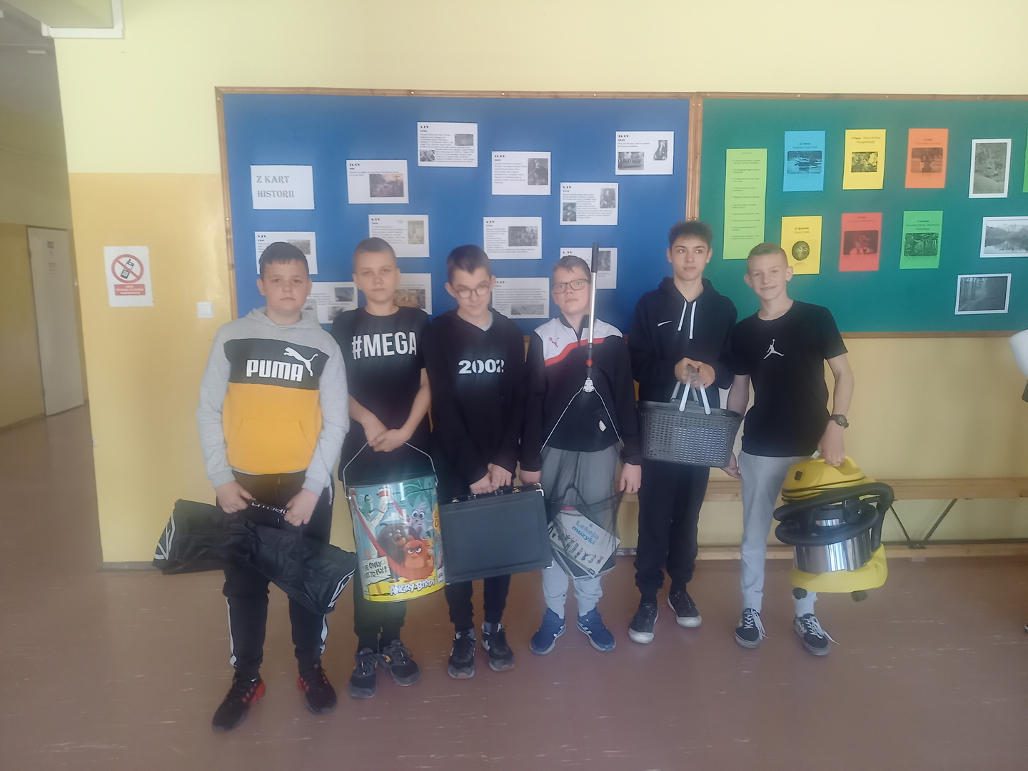 W piątek – 21 kwietnia 2023 r. w naszej szkole obchodziliśmy Dzień bez plecaka. Była to inicjatywa Samorządu Uczniowskiego. Tego dnia nasi uczniowie zamienili plecaki na inne nosidła. Przyjście do szkoły bez plecaka nie zwalniało z zabrania wszystkich potrzebnych tego dnia rzeczy, takich jak zeszyty, książki, przybory szkolne. Uczniowie udowodnili, że wyobraźnia nie zna granic. Zeszyty i podręczniki zostały spakowane w wózki dziecięce, kosze na śmieci, walizki, poszewki od poduszek, kosze sklepowe, a nawet poroże czy odkurzacz. Liczyła się pomysłowość i spryt, a tego naszym uczniom nie brakuje.