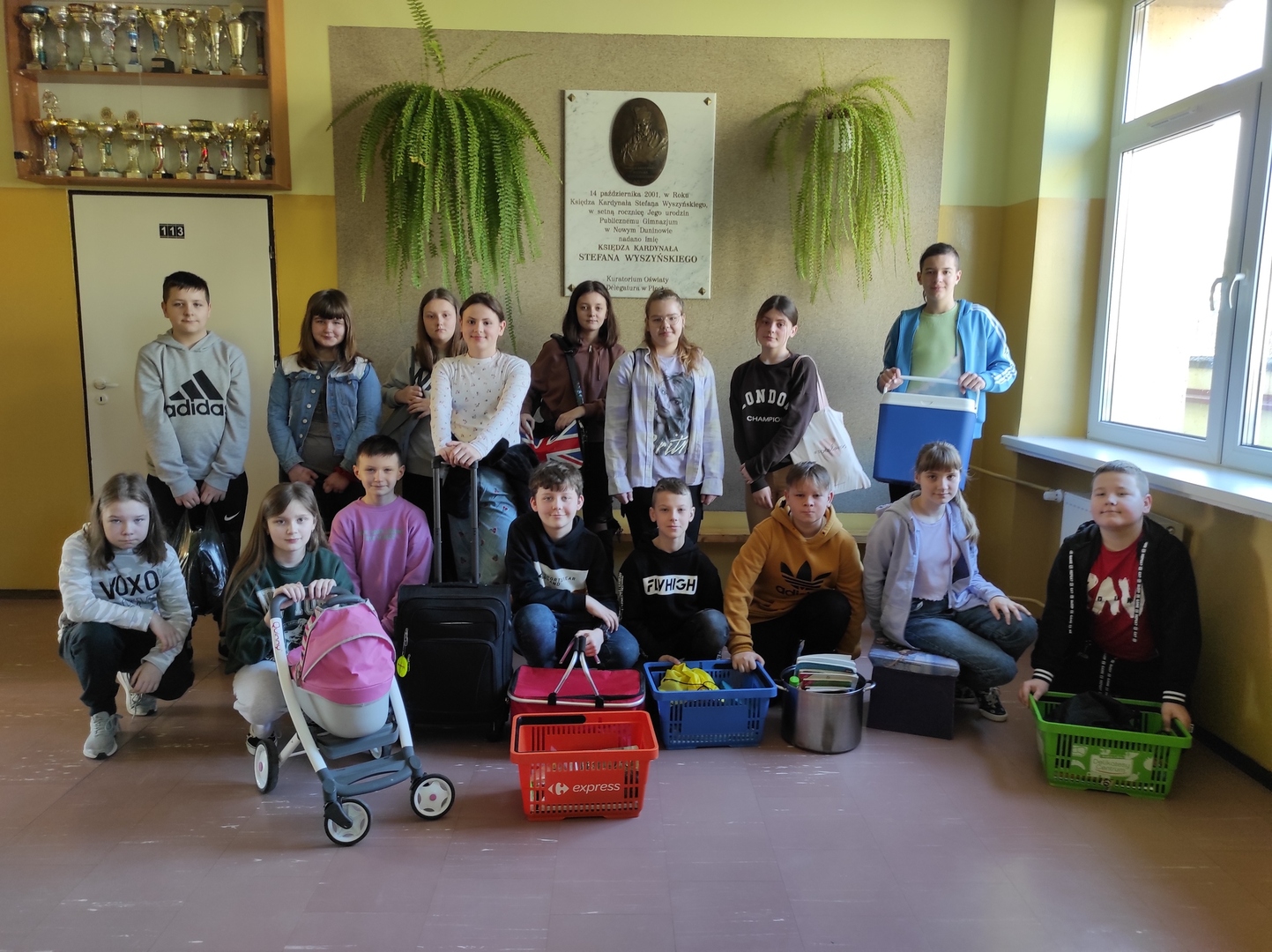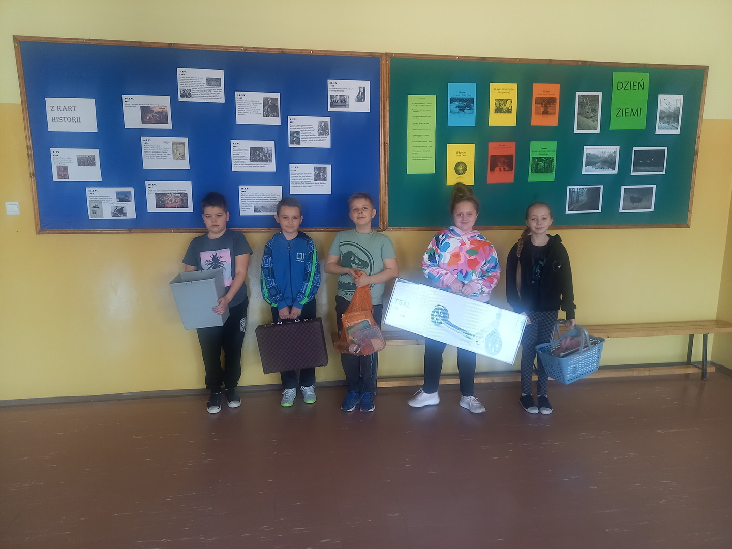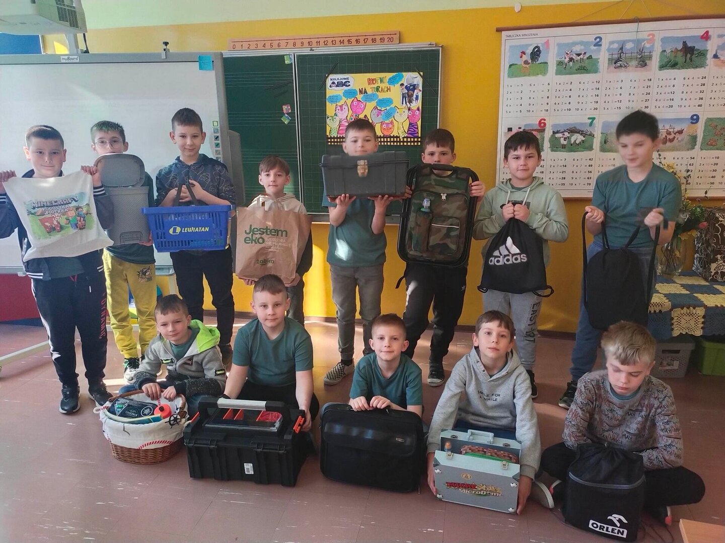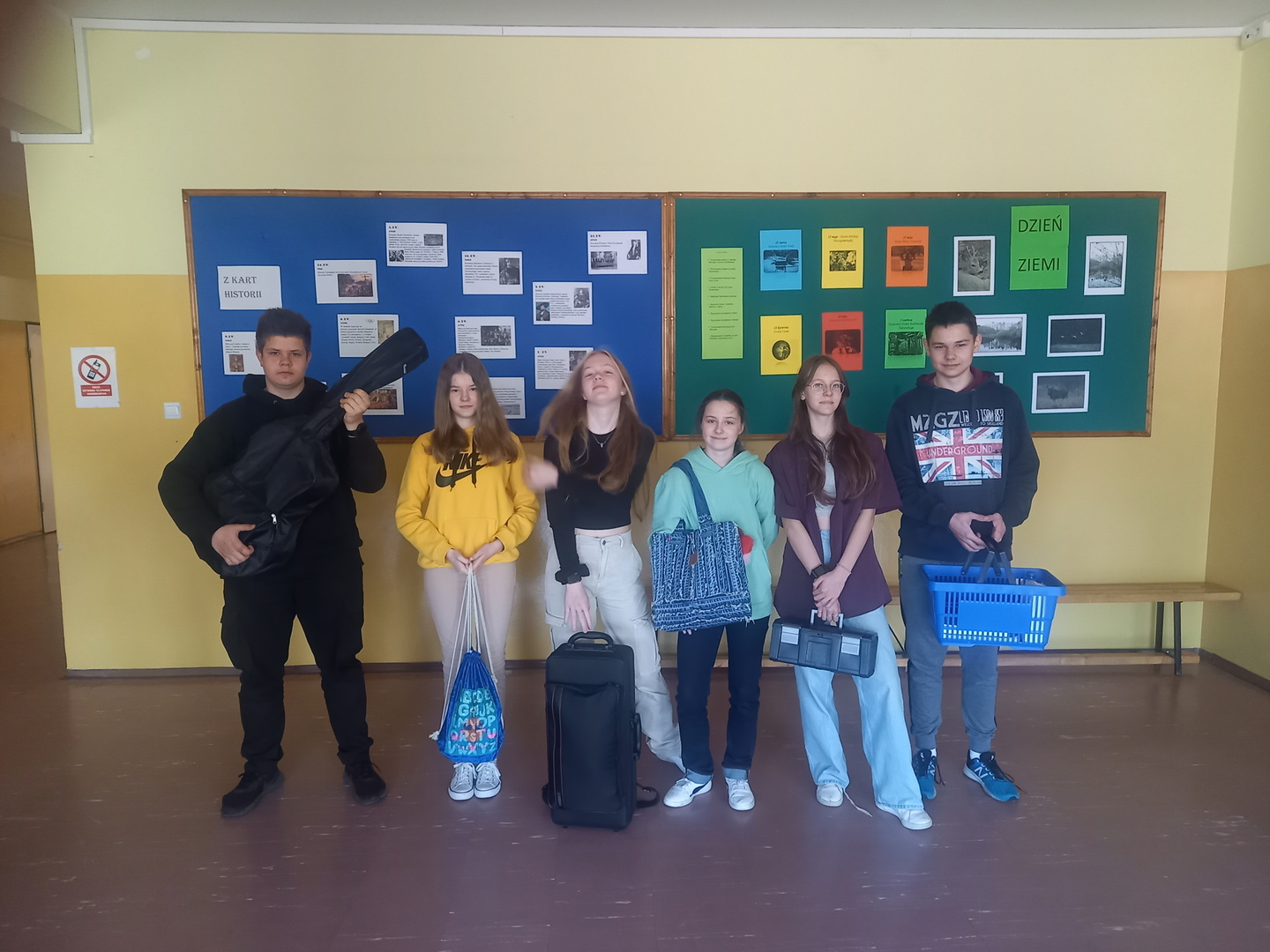W piątek – 21 kwietnia 2023 r. w naszej szkole obchodziliśmy Dzień bez plecaka. Była to inicjatywa Samorządu Uczniowskiego. Tego dnia nasi uczniowie zamienili plecaki na inne nosidła. Przyjście do szkoły bez plecaka nie zwalniało z zabrania wszystkich potrzebnych tego dnia rzeczy, takich jak zeszyty, książki, przybory szkolne. Uczniowie udowodnili, że wyobraźnia nie zna granic. Zeszyty i podręczniki zostały spakowane w wózki dziecięce, kosze na śmieci, walizki, poszewki od poduszek, kosze sklepowe, a nawet poroże czy odkurzacz. Liczyła się pomysłowość i spryt, a tego naszym uczniom nie brakuje.