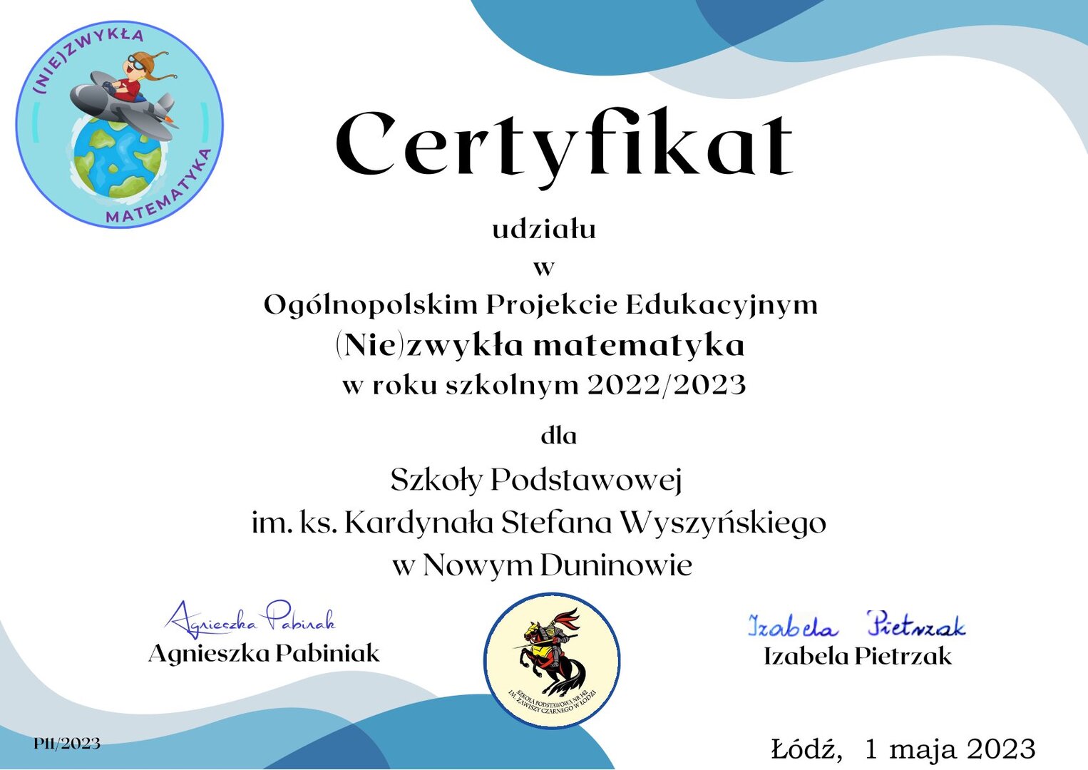 Uczniowie klas IV – VII w roku szkolnym 2022/2023 uczestniczyli w ogólnopolskim projekcie edukacyjnym „(Nie)zwykła matematyka”.