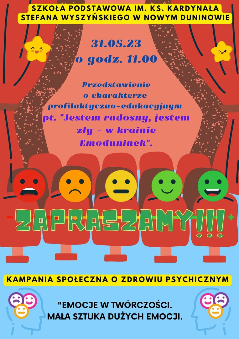Dnia 31.05.23 o godz. 11.00 w naszej szkole odbędzie się przedstawienie o charakterze profilaktyczno-edukacyjnym