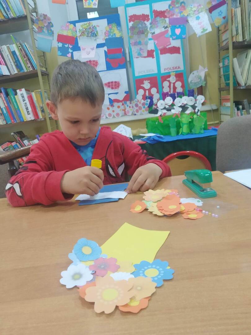 W czasie zajęć plastycznych dzieci wykonywały różnymi technikami upominki dla swoich mam .
