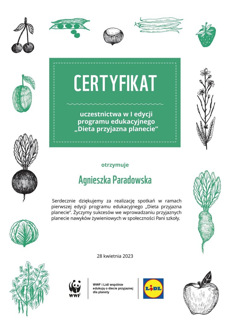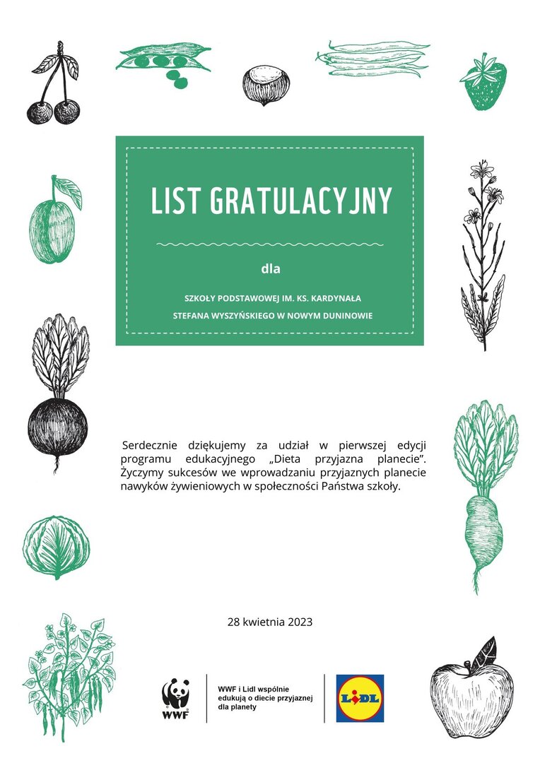 W załączeniu certyfikat oraz list gratulacyjny, który otrzymaliśmy od organizatora.