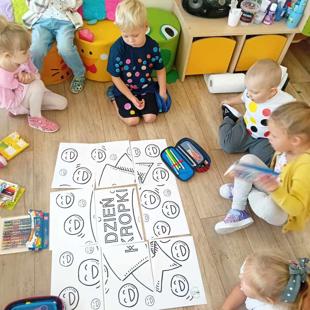 Celem Międzynarodowego Dnia Kropki jest rozwijanie u dzieci kreatywności, pomysłowości i zachęcenie ich do działania, tworzenia Dzien Kropki jest to dzień zabawy i odwagi. Tego dnia nasze zabawy wypełnione były kolorowymi kropkami.