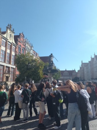 Przewodnik oprowadził nas po mieście , opowiedział interesujące historie, pokazał najciekawsze miejsca w Gdańsku m.in. Ratusz, Dwór Artusa, fontannę z posągiem Neptuna, ulicę Długą , piękne mieszczańskie kamieniczki i ówczesne więzienie.