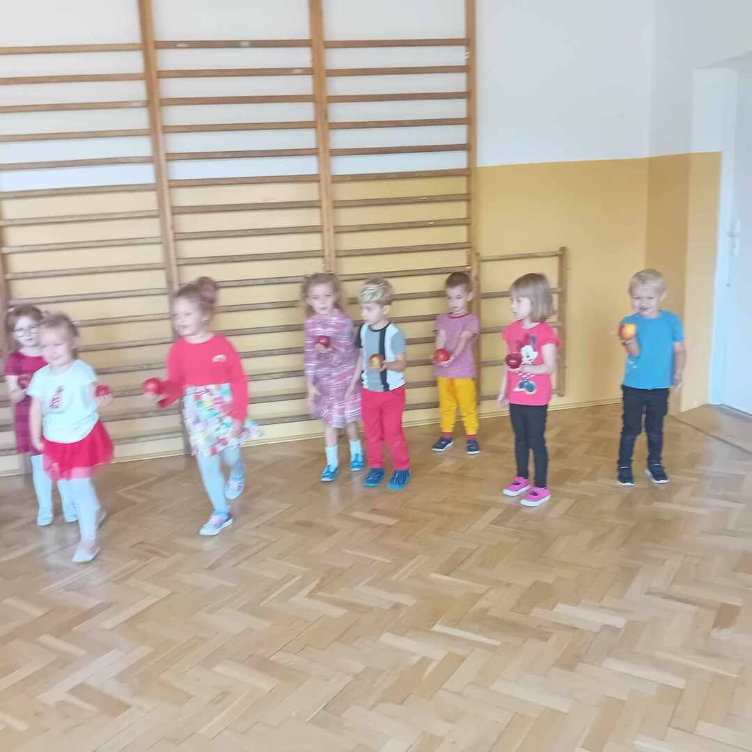 28 września przedszkolaki z oddziałów OA i OB zachęcały do spożywania jabłek jako źródła witaminy C .