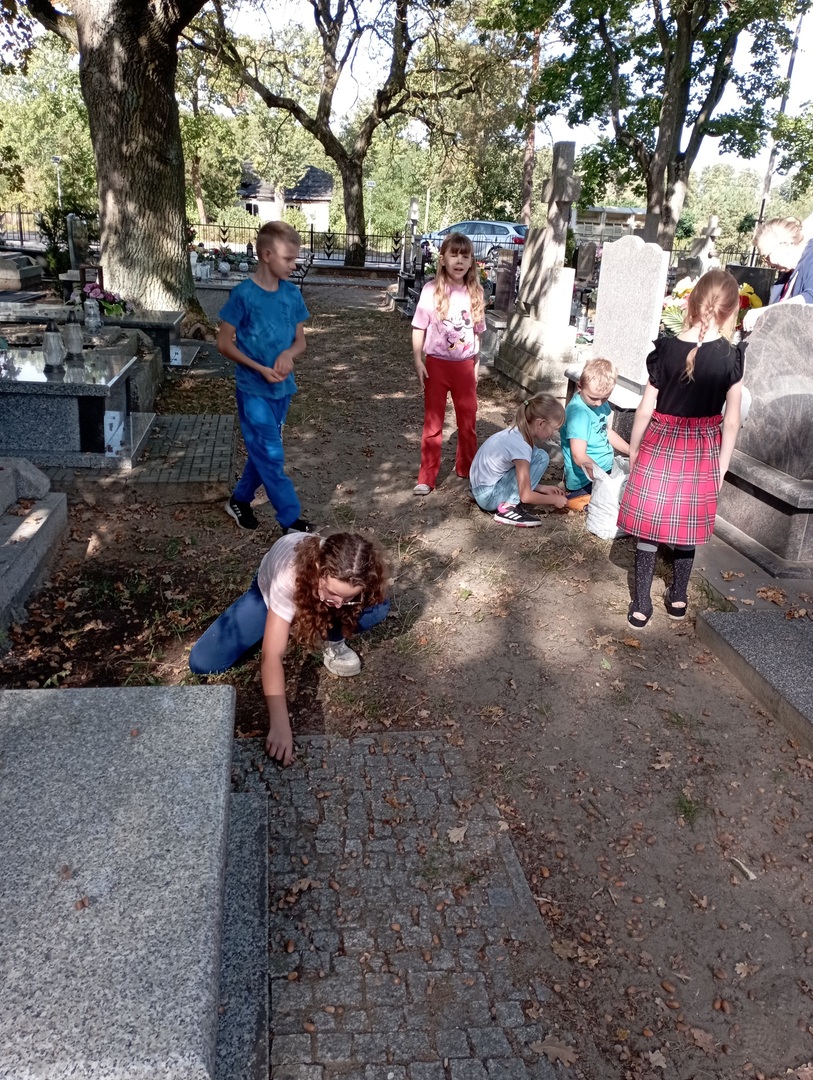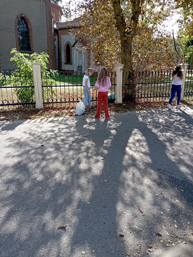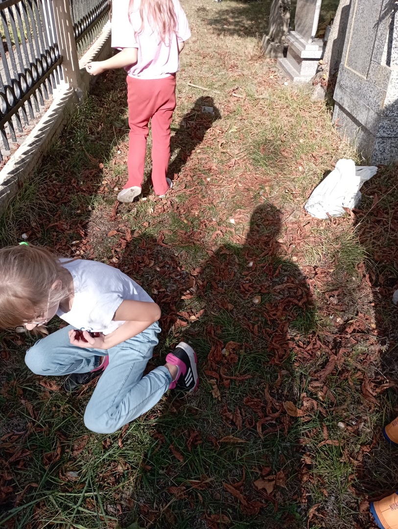 A oto kilka zdjęć jak klasa 2 i klasa 3 starała się zbierać kasztany i żołędzie nawet w bardzo nietypowym miejscu…..