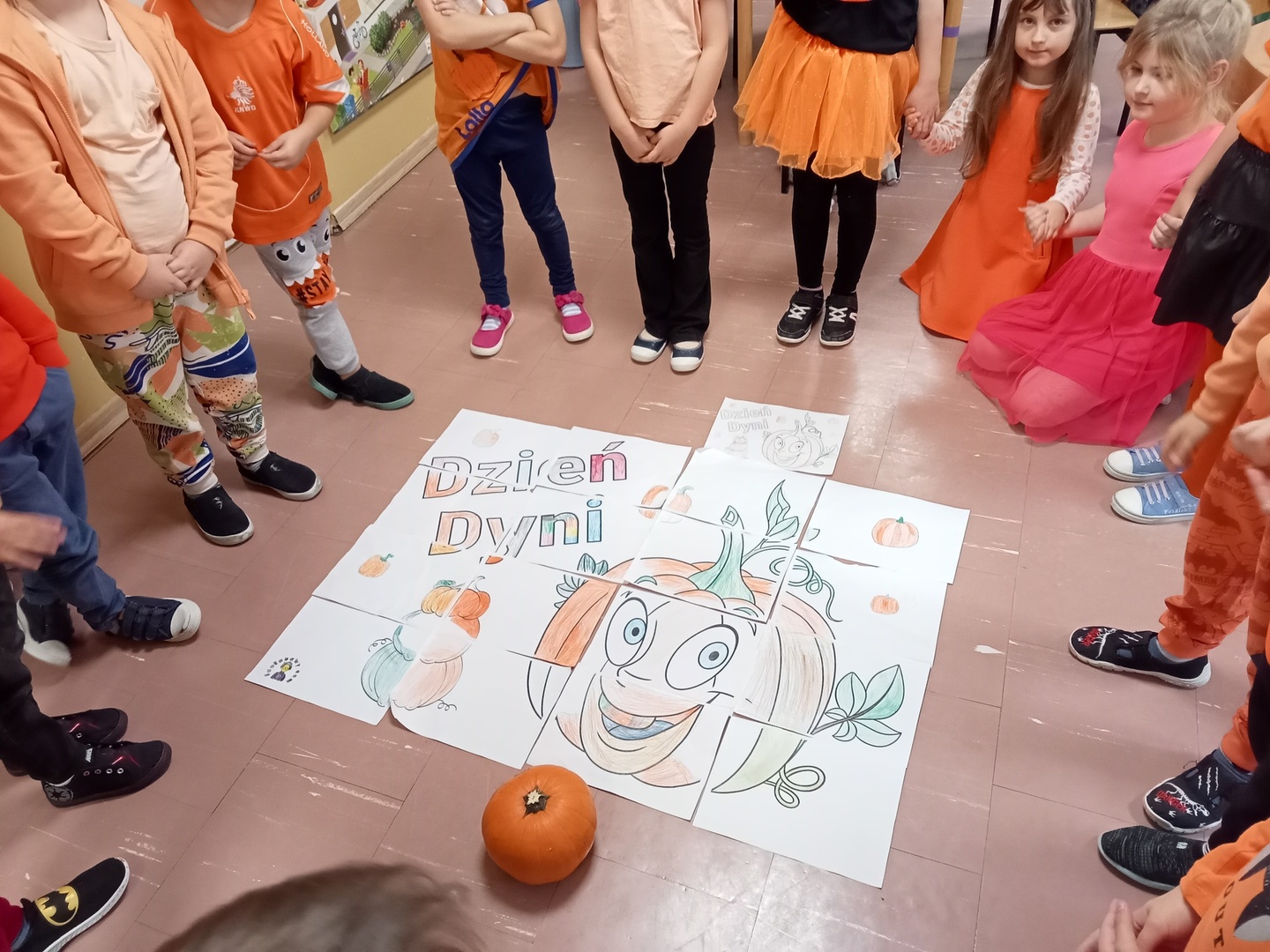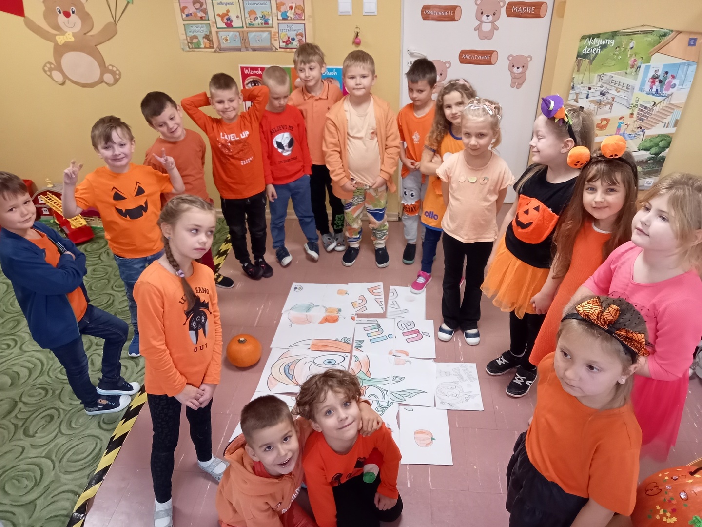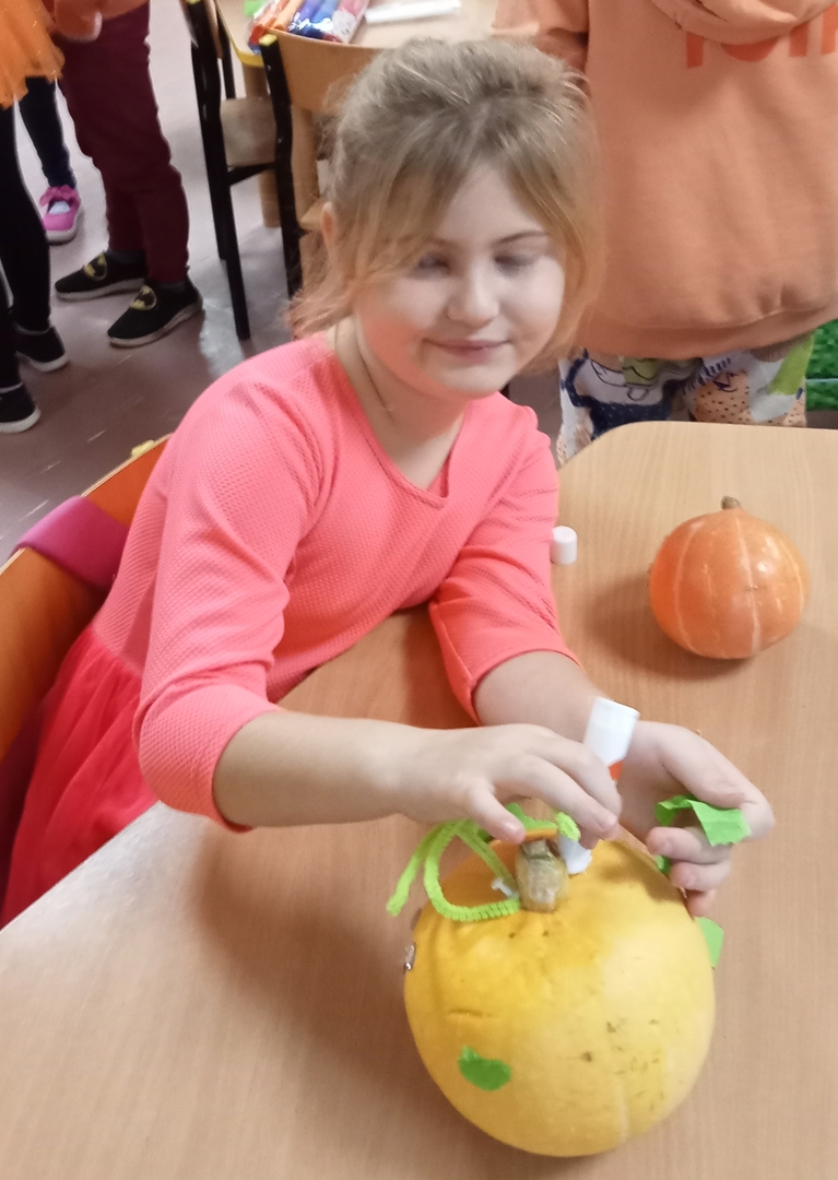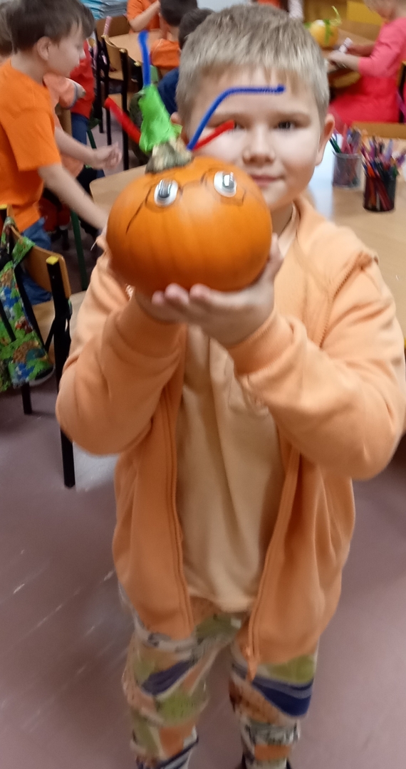 Wspólnie uczestniczyliśmy w zajęciach, podczas których poznaliśmy bardzo zdrowe i urodziwe warzywo jakim jest dynia. Tego dnia przynieśliśmy do przedszkola dynie i ubraliśmy się na kolor pomarańczowy. Spędziliśmy czas na wielu zabawach. Uczyliśmy się rymowanki o dyni, słuchaliśmy wiersza, układaliśmy dyniowe puzzle, bawiliśmy się w zręczne rączki, które ozdabiały dynię, poznawaliśmy potrawy, które można zrobić z dyni.