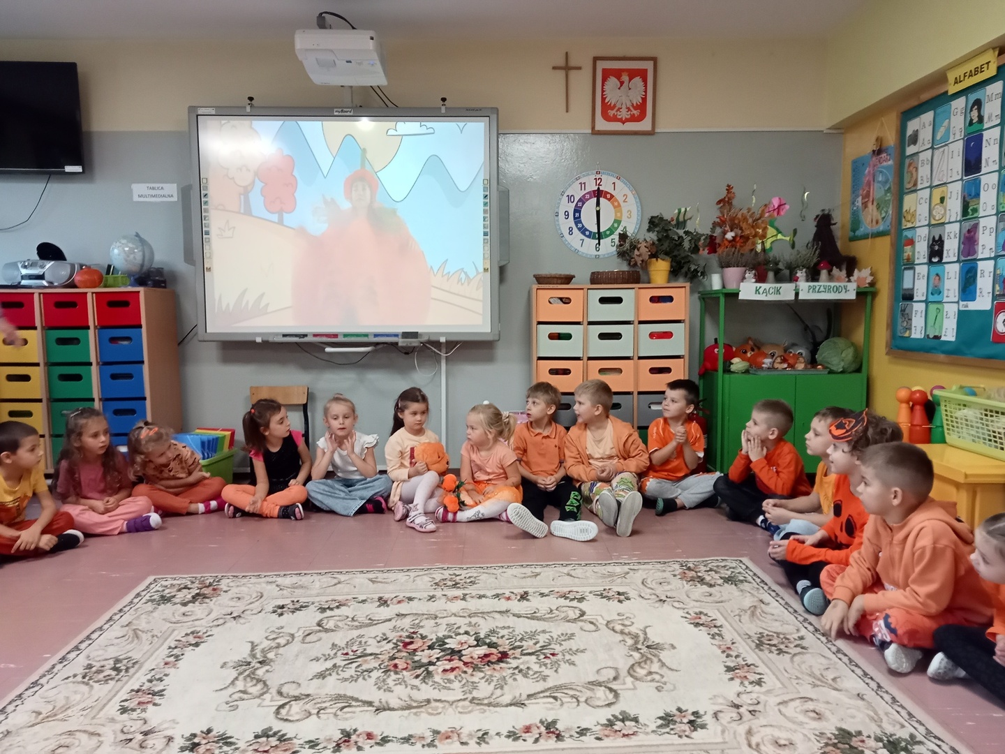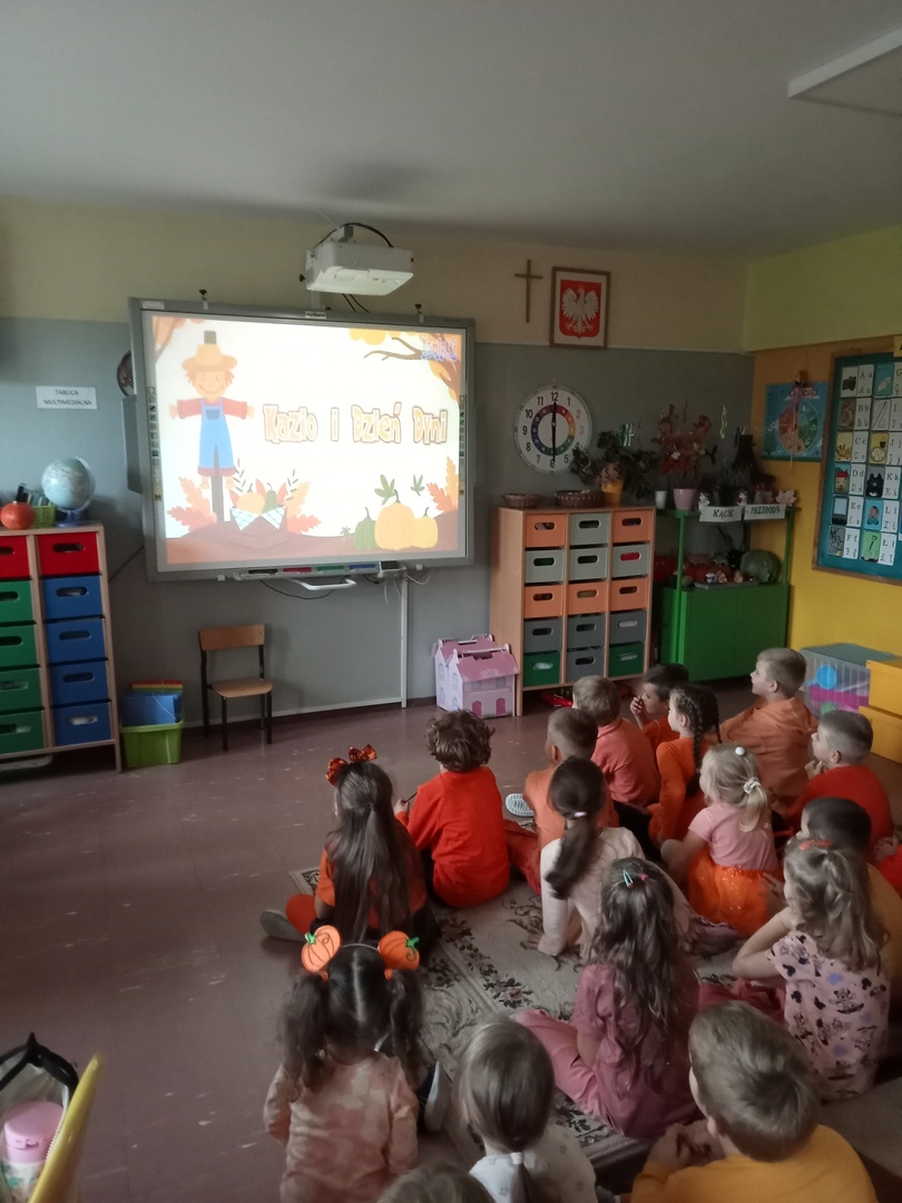 Dużą radość sprawiły dzieciom zabawy w kole, oczywiście z dynią. Przedszkolaki obejrzały też film o Dniu Dyni.