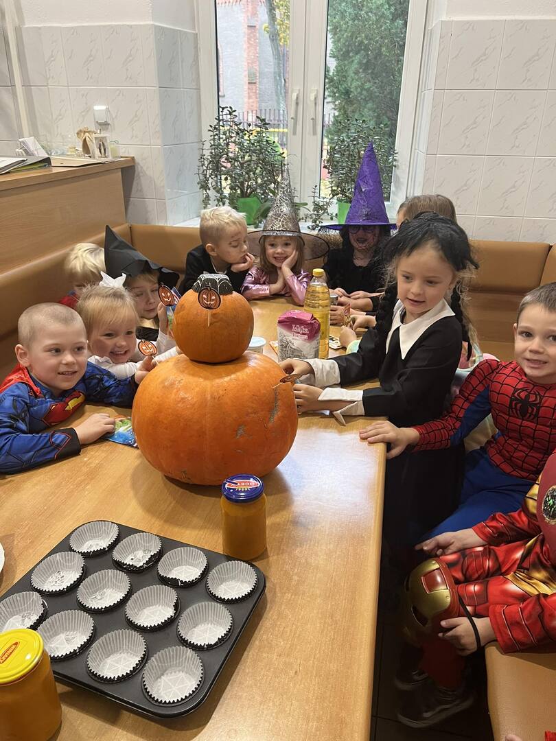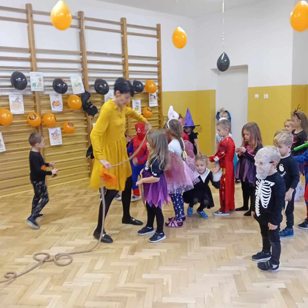 31 października w naszym przedszkolu odbyła się wesoła zabawa od rana. Swoje święto miala wesoła Dynia. Były tańce i zabawa, dyniowe zawody. Wspólnie z uczniami klas 1-3 uczestniczyliśmy w zajęciach, podczas których poznaliśmy bardzo zdrowe i urodziwe warzywo jakim jest dynia. Tego dnia każdy wykonał czarodziejska miotle ze smakołykami w środku, która zabrał do swojego domu. Dzięki współpracy z rodzicami po balu udało się przygotować słodki poczęstunek.