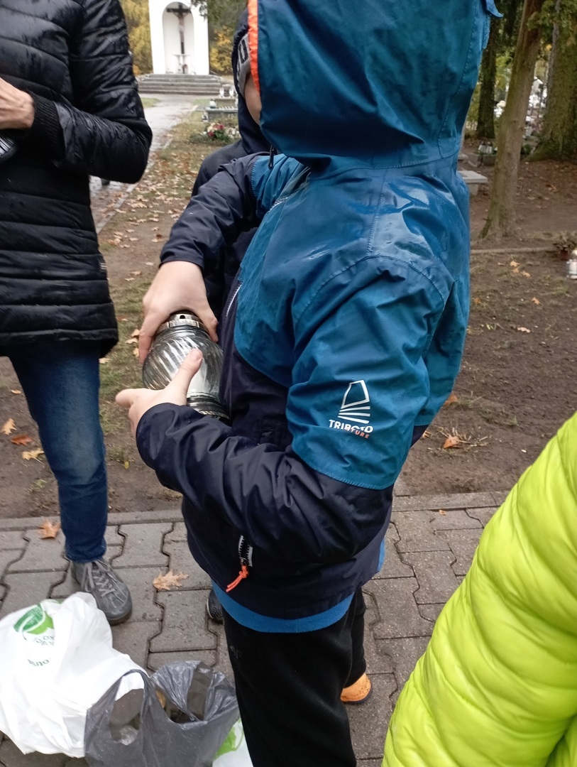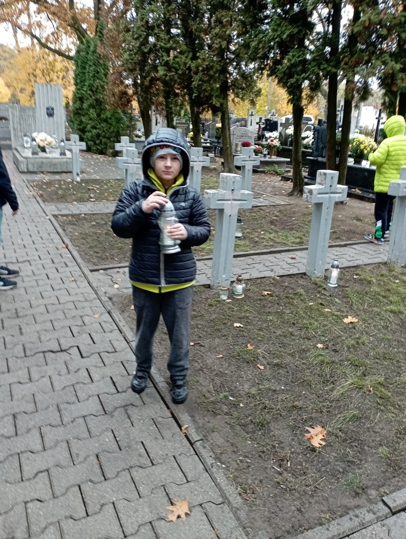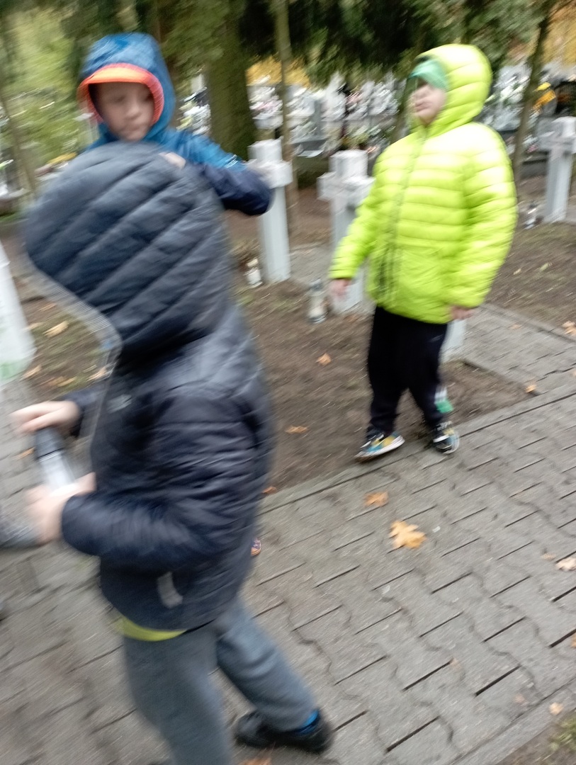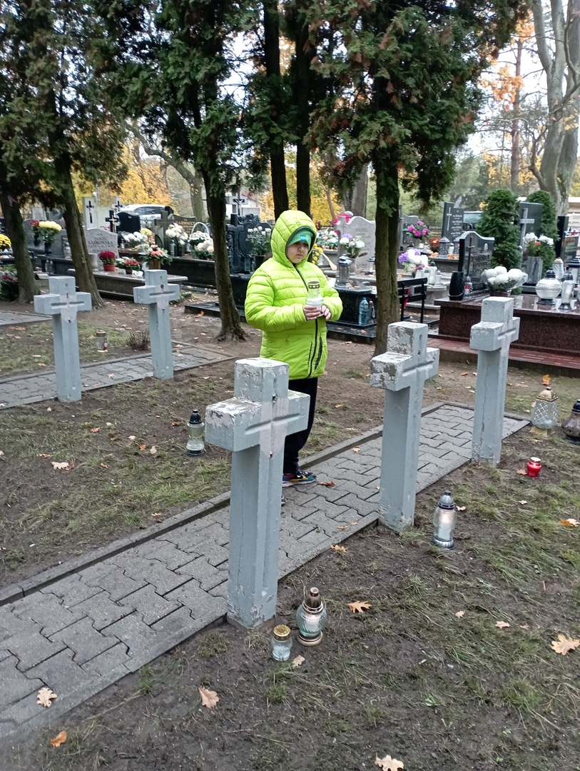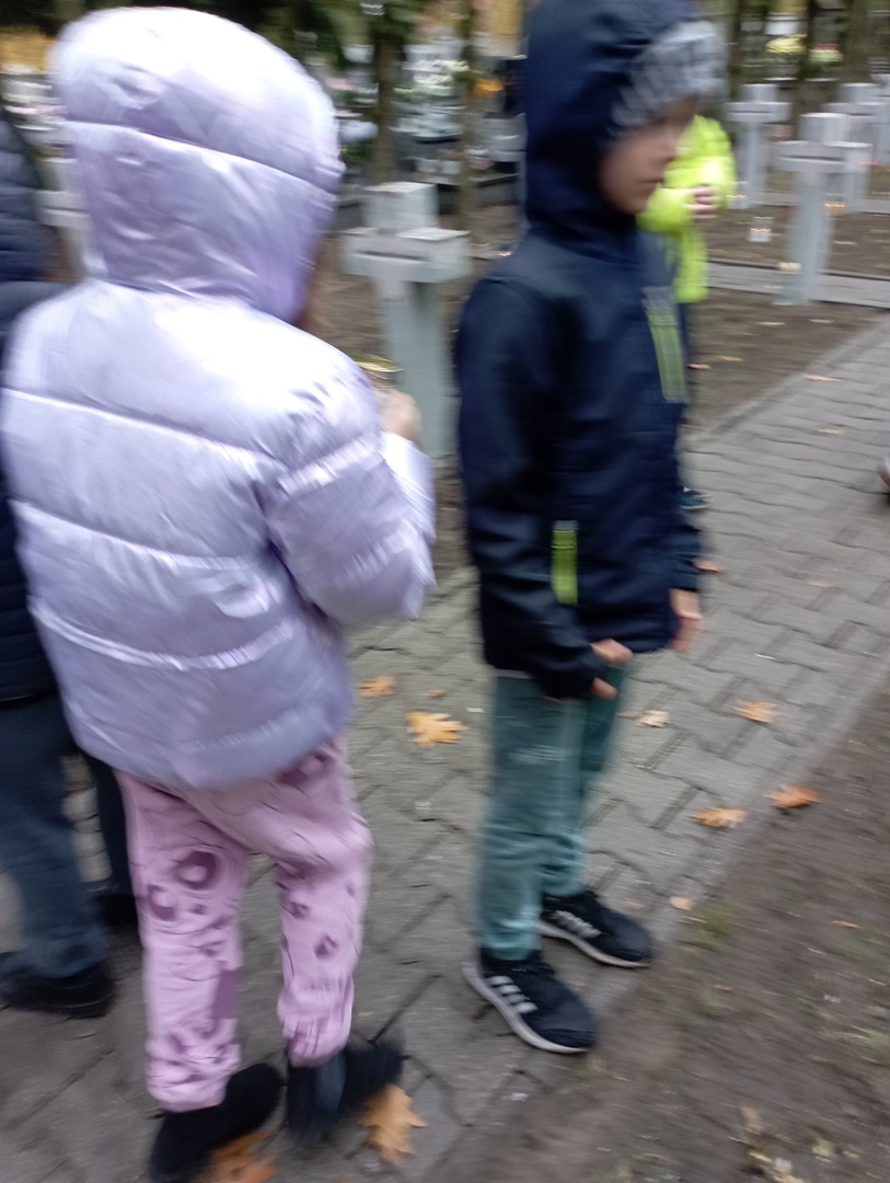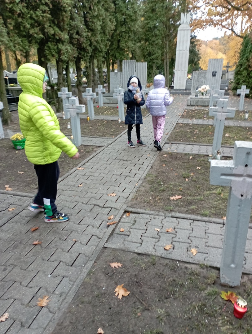 Mimo to uczniowie klasy 2 i klasy 3 jako reprezentanci poszli na cmentarz pod opieką pani Renaty Podkańskiej i Agnieszki Kruszewskiej, aby zapalić znicze i złożyć kwiaty na mogiłach żołnierskich.