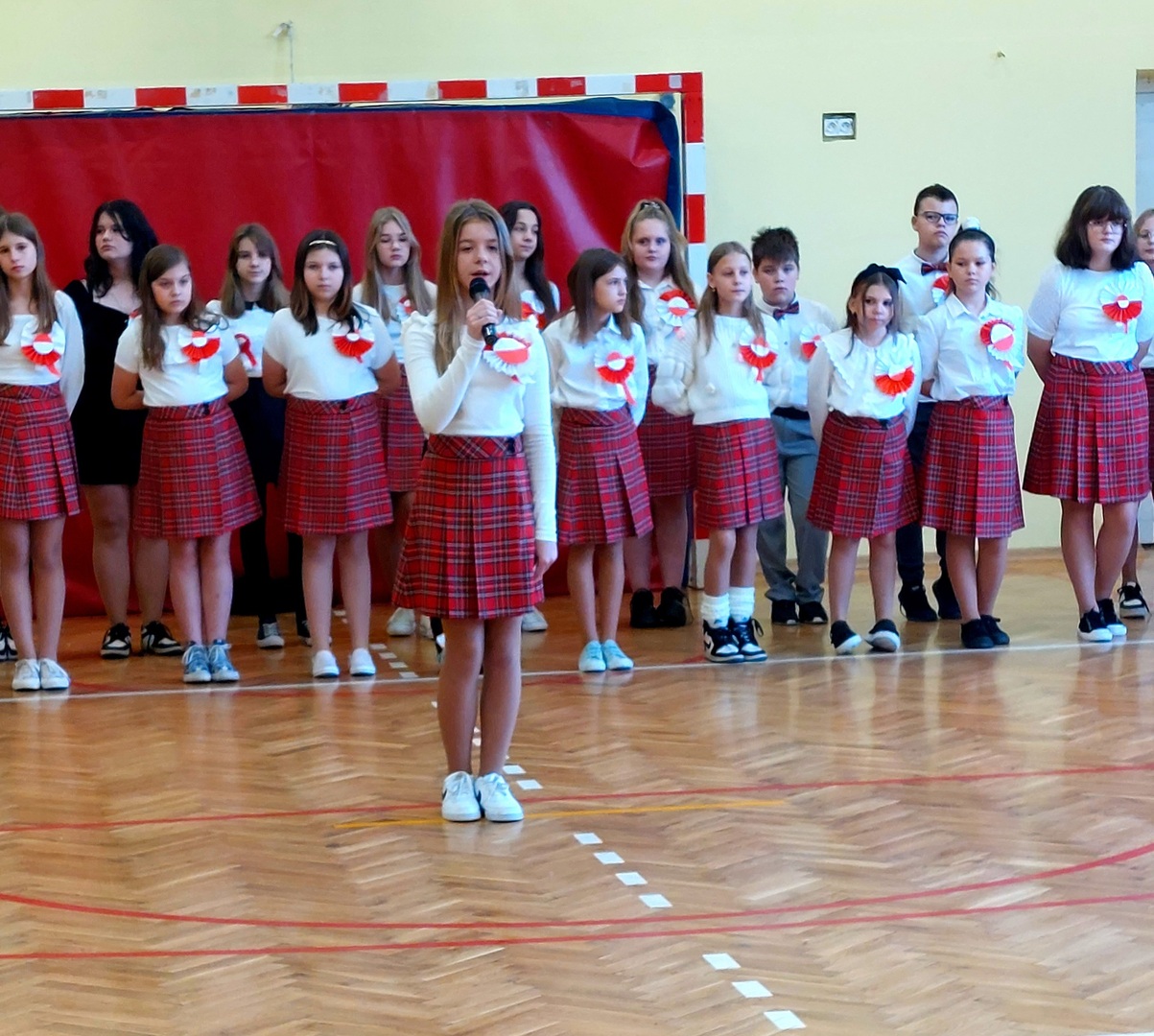 Jak co roku nasza szkoła uczestniczyła w akcji “Szkoła do hymnu”. Akcja ma na celu włączenie społeczności szkolnych w świętowanie rocznicy odzyskania przez Polskę niepodległości.