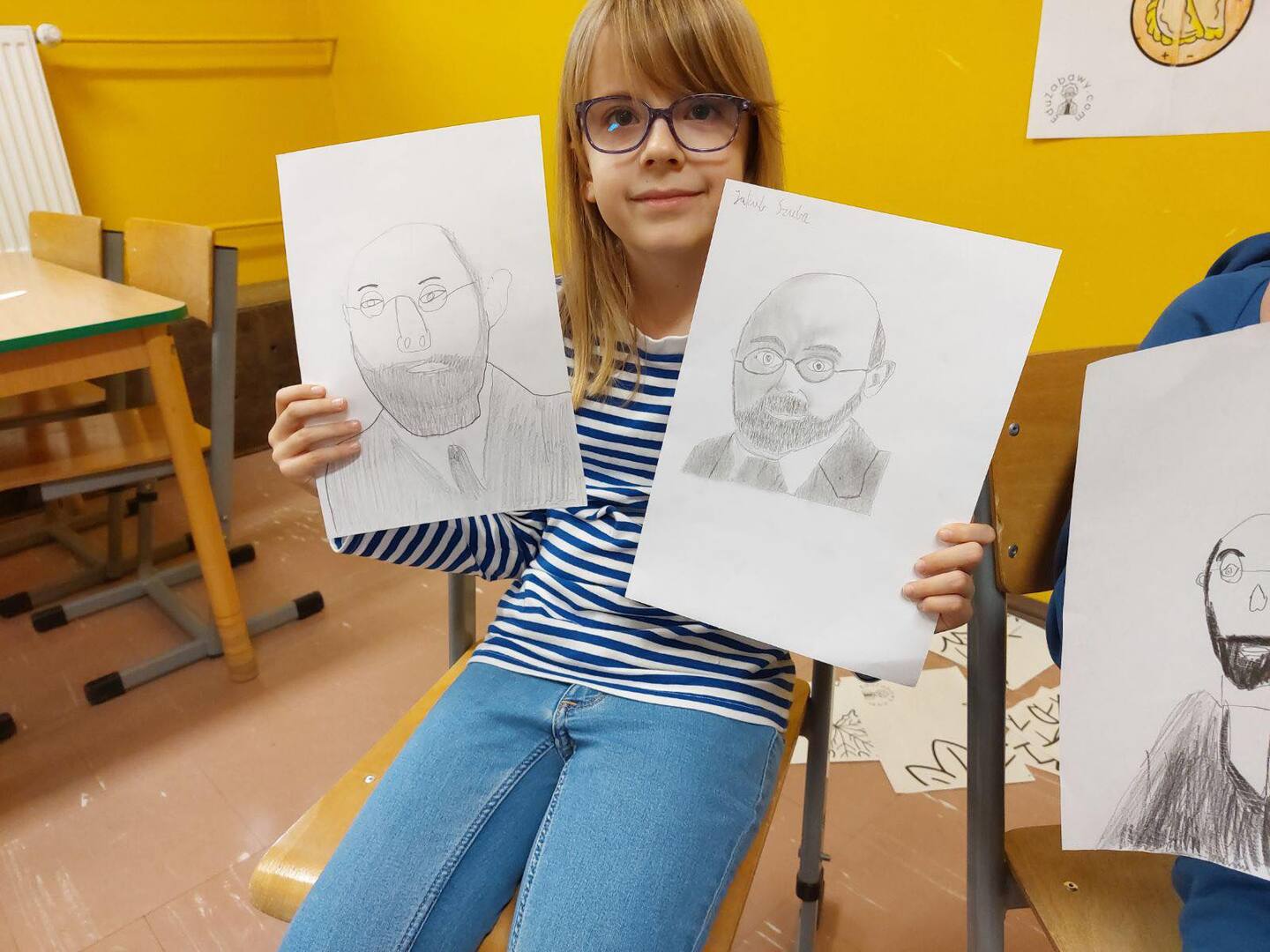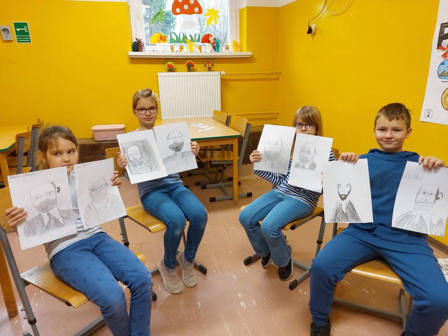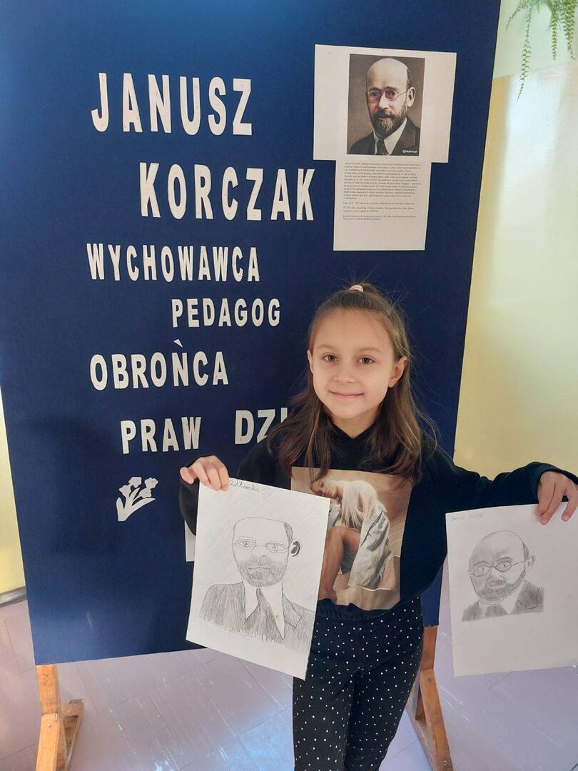 W świetlicy szkolnej uczniowie wykonali prace plastyczne pt: „Korczak oczami dziecka”.