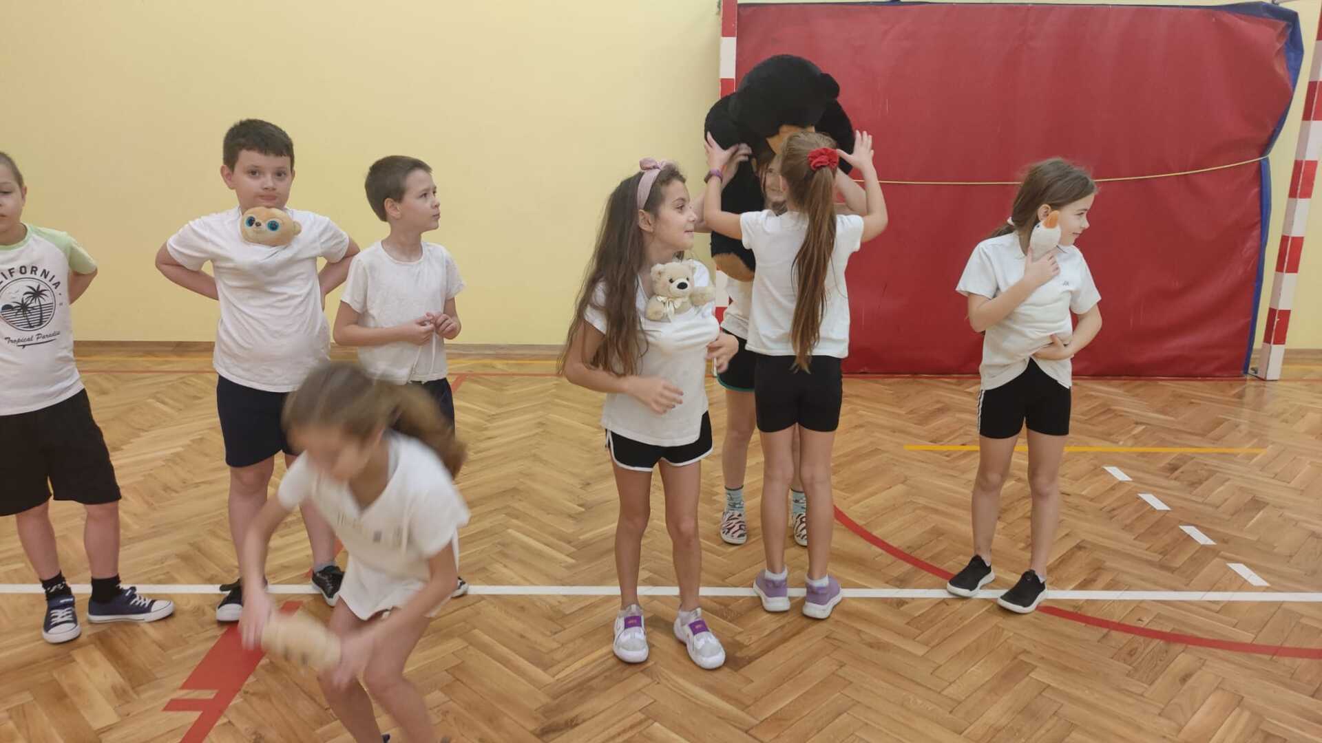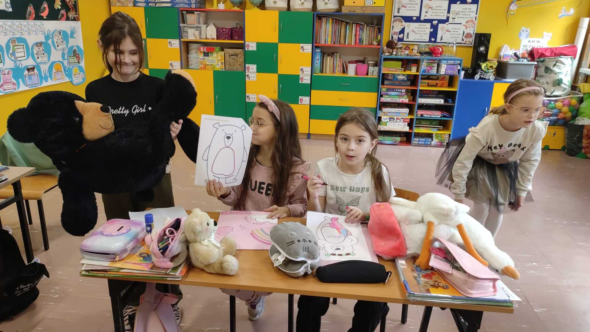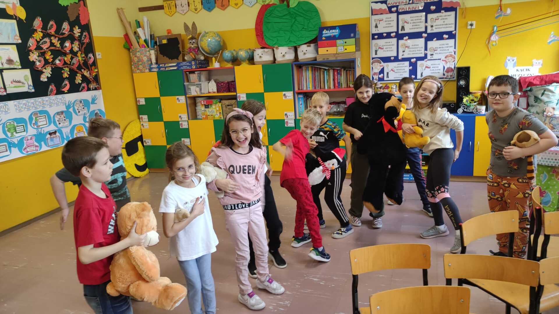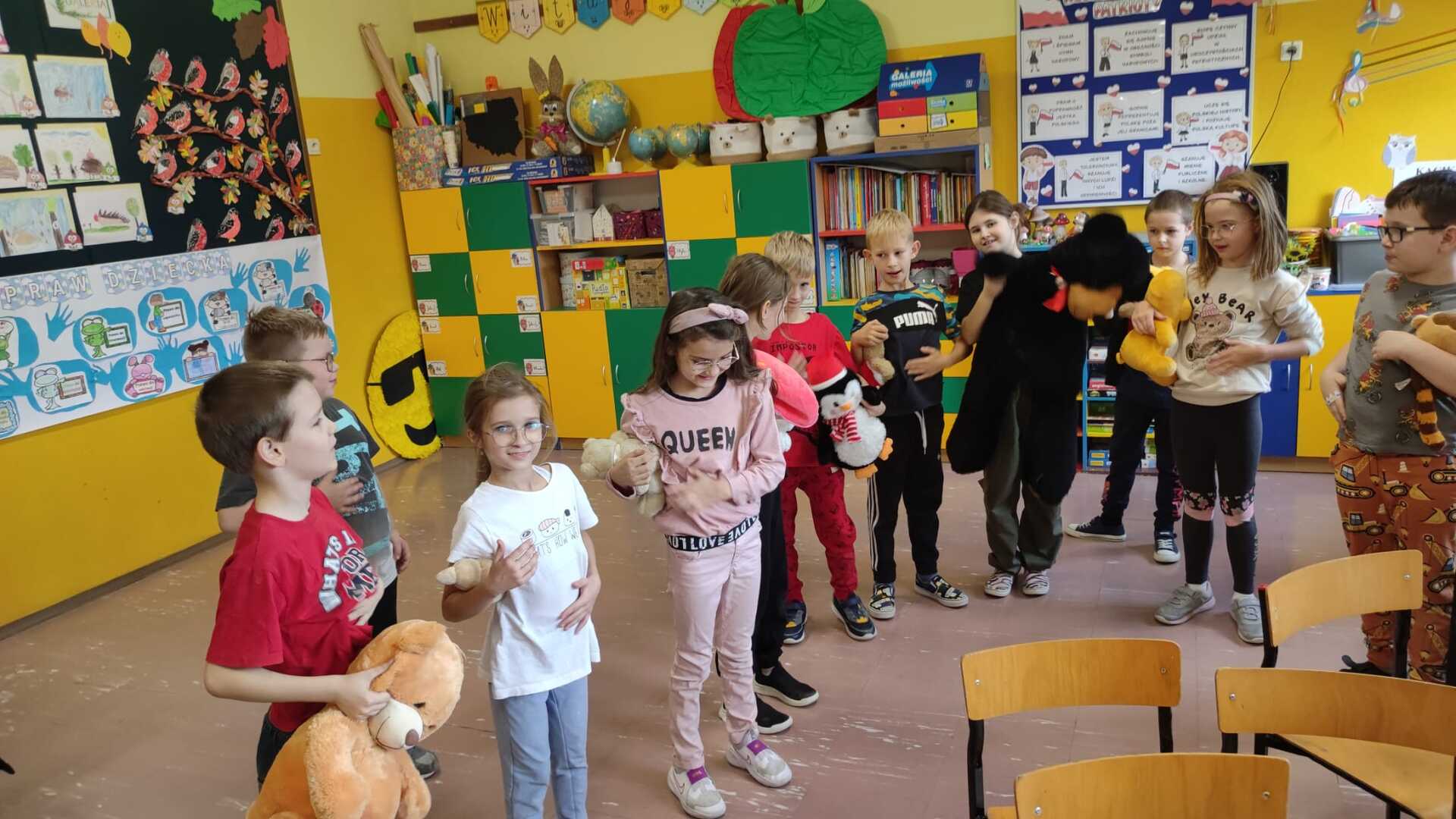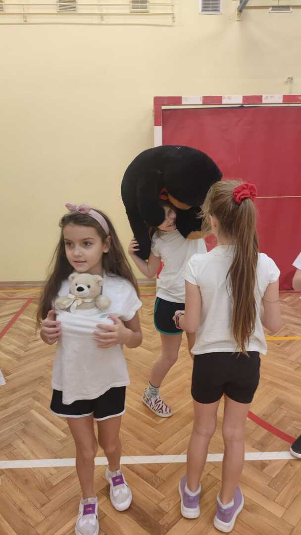 Od samego rana towarzyszyły nam w zajęciach, nawet na lekcji wf. Były kolorowanki, ciekawe historie misiów, zabawy i słodkie upominki. Prawdziwe święto Misia.