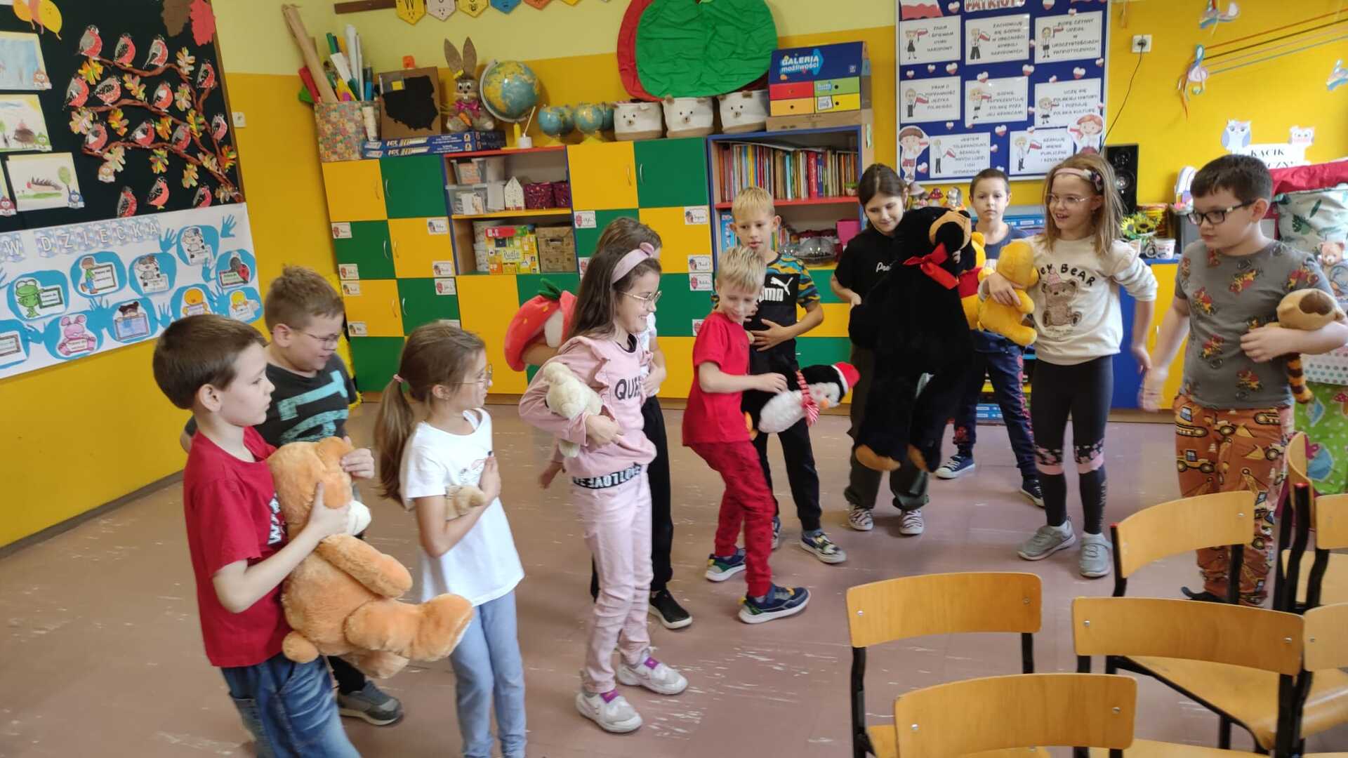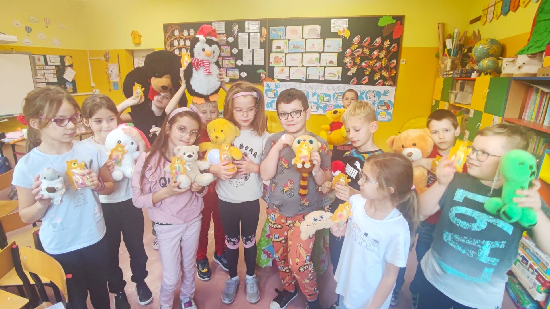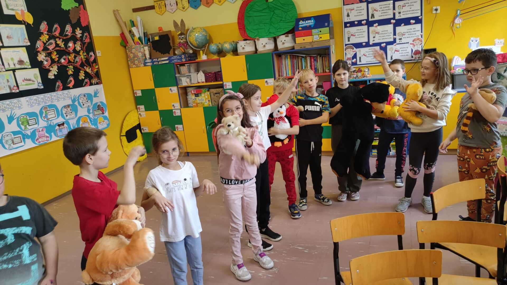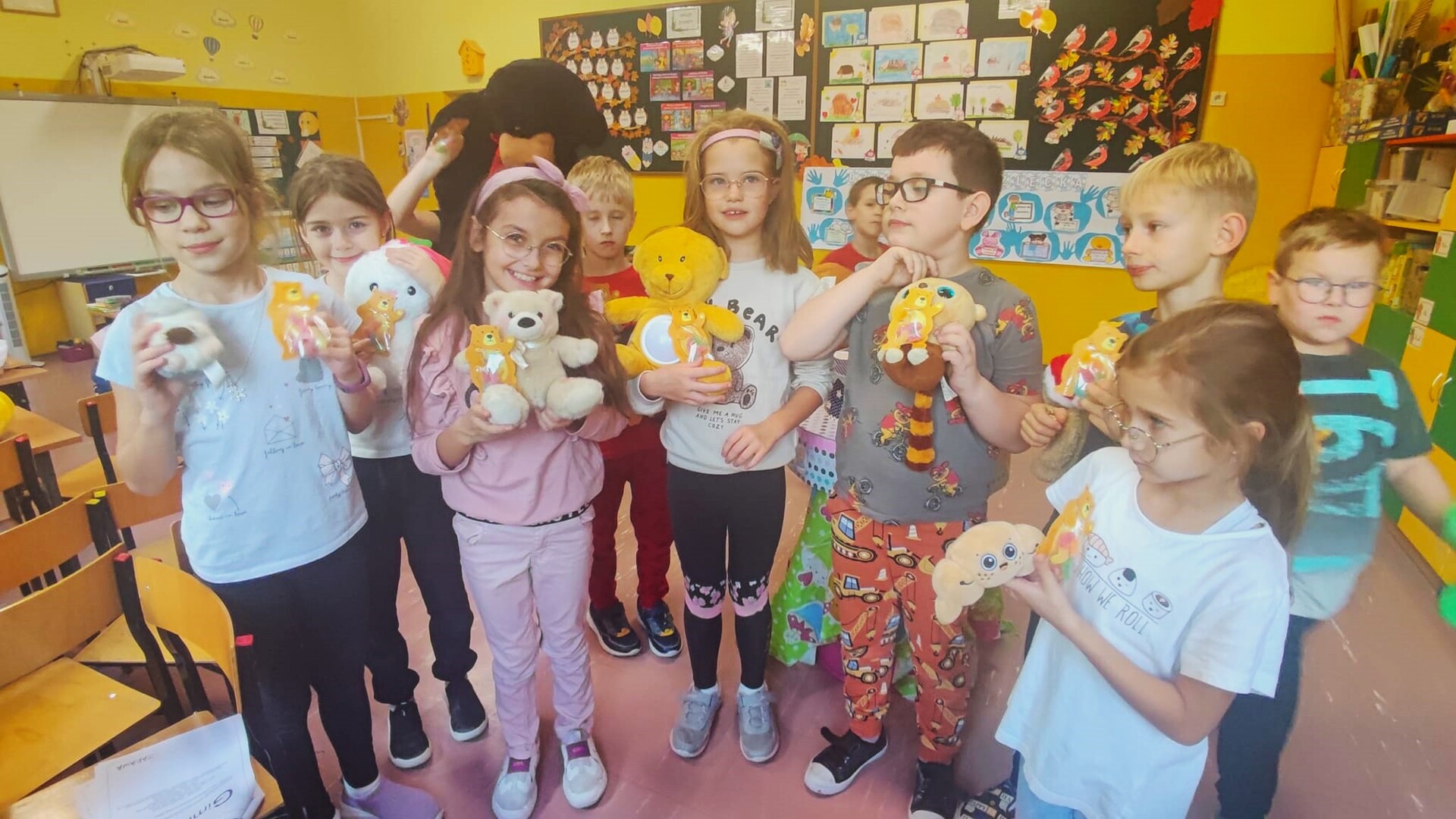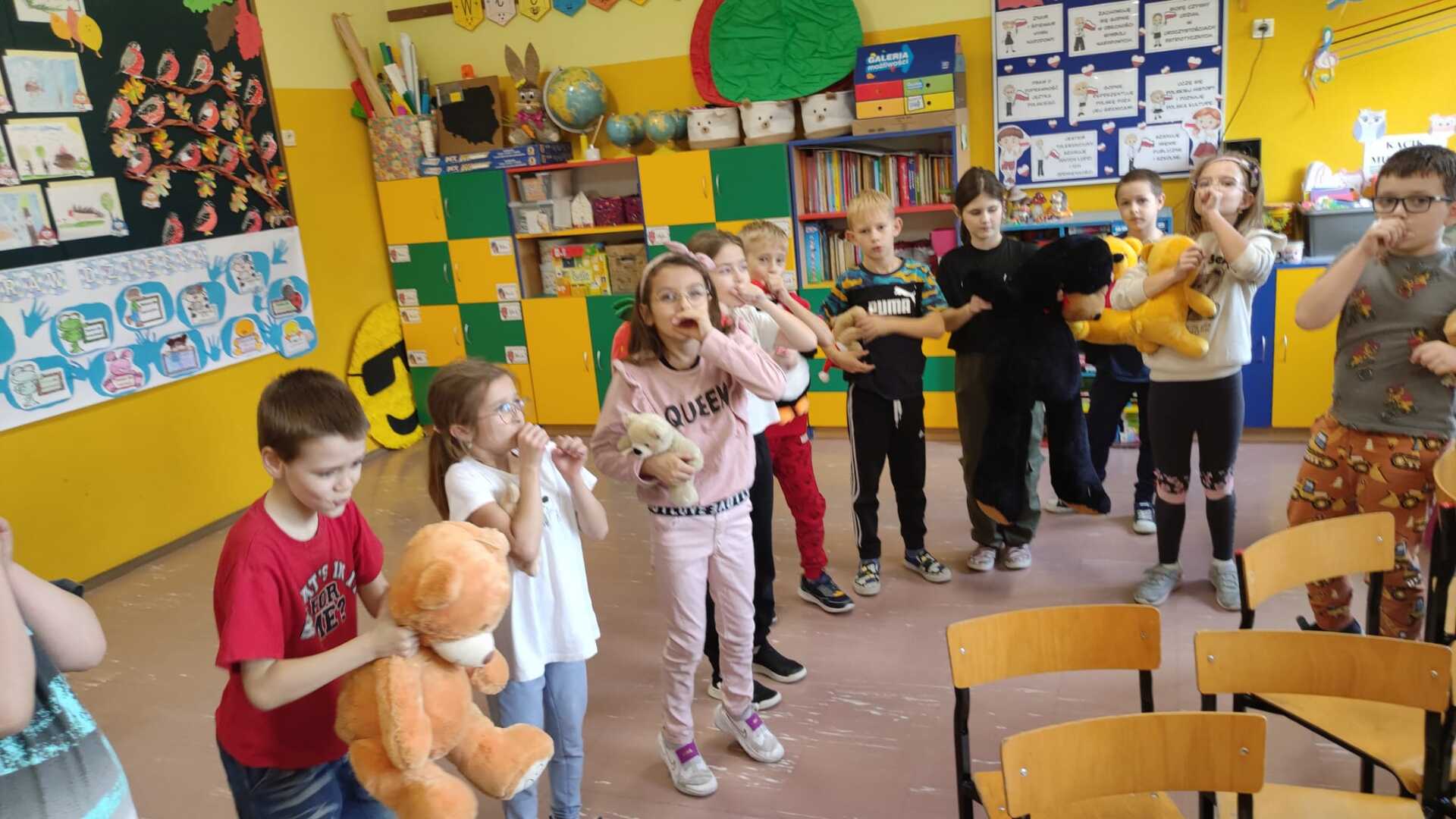 Od samego rana towarzyszyły nam w zajęciach, nawet na lekcji wf. Były kolorowanki, ciekawe historie misiów, zabawy i słodkie upominki. Prawdziwe święto Misia.