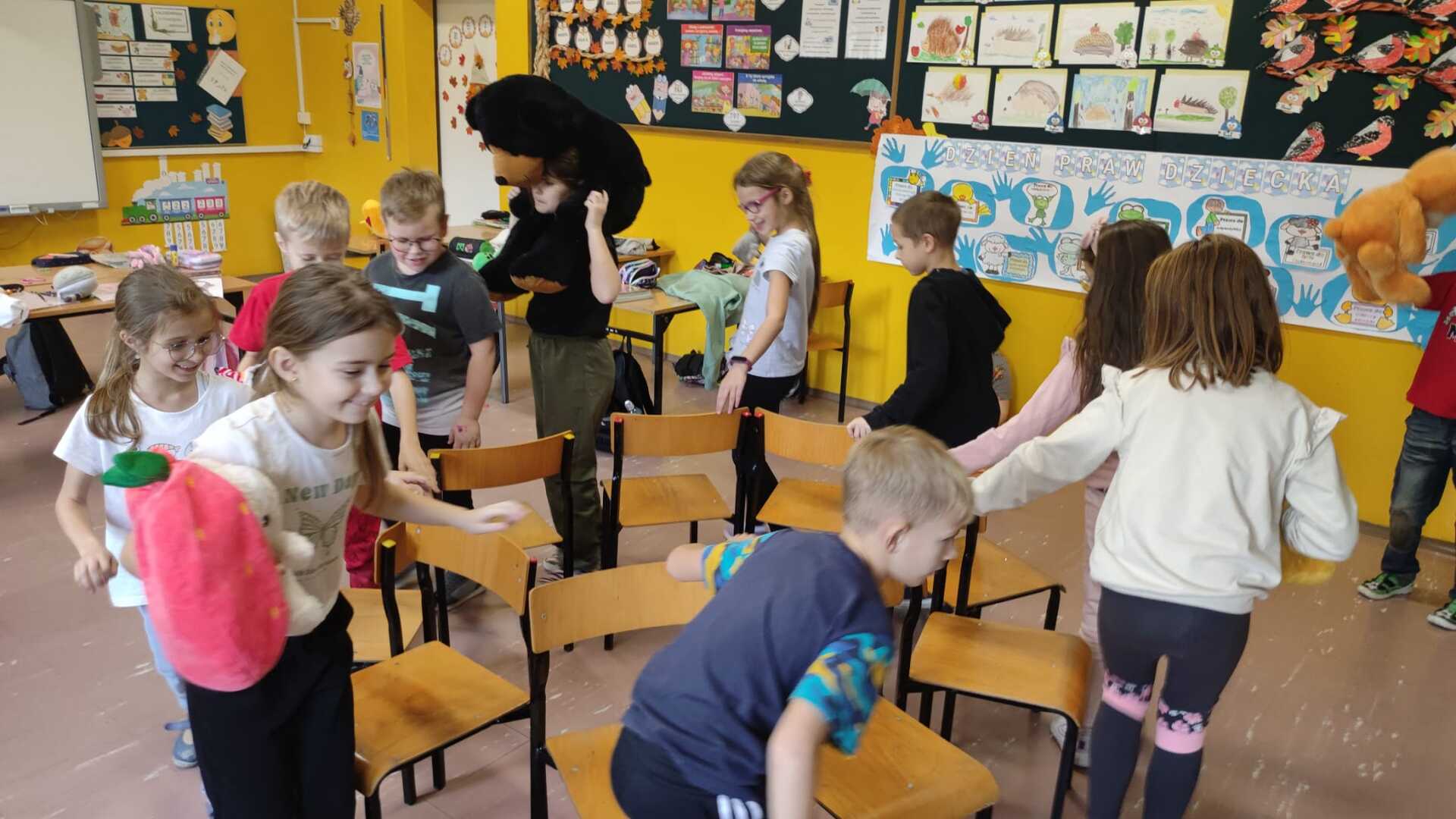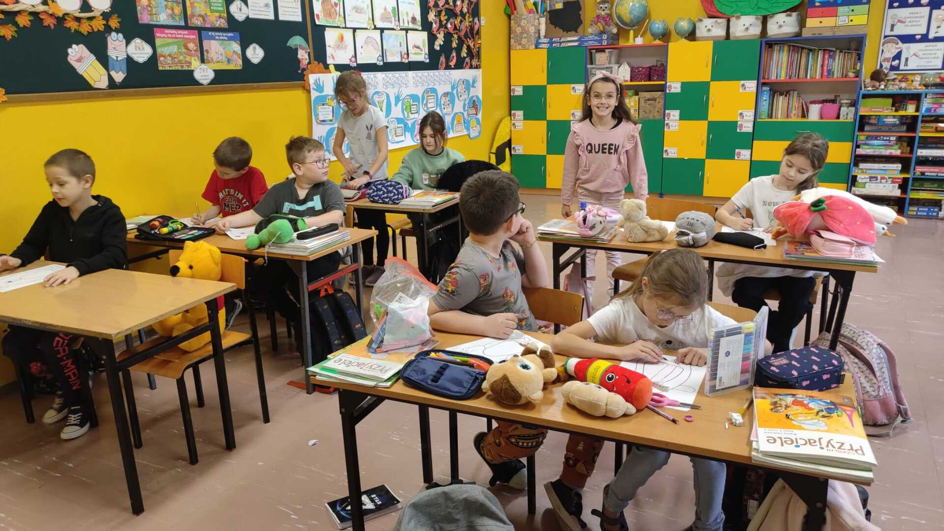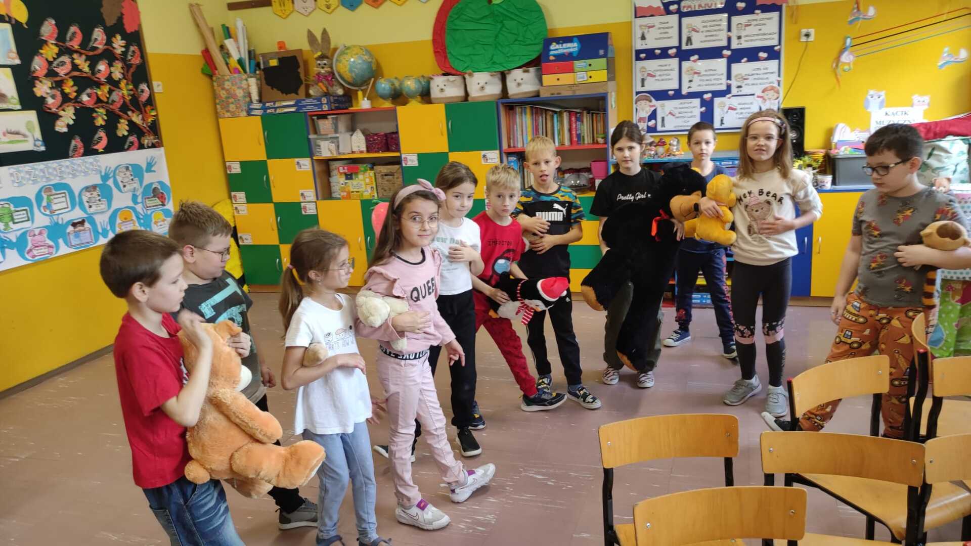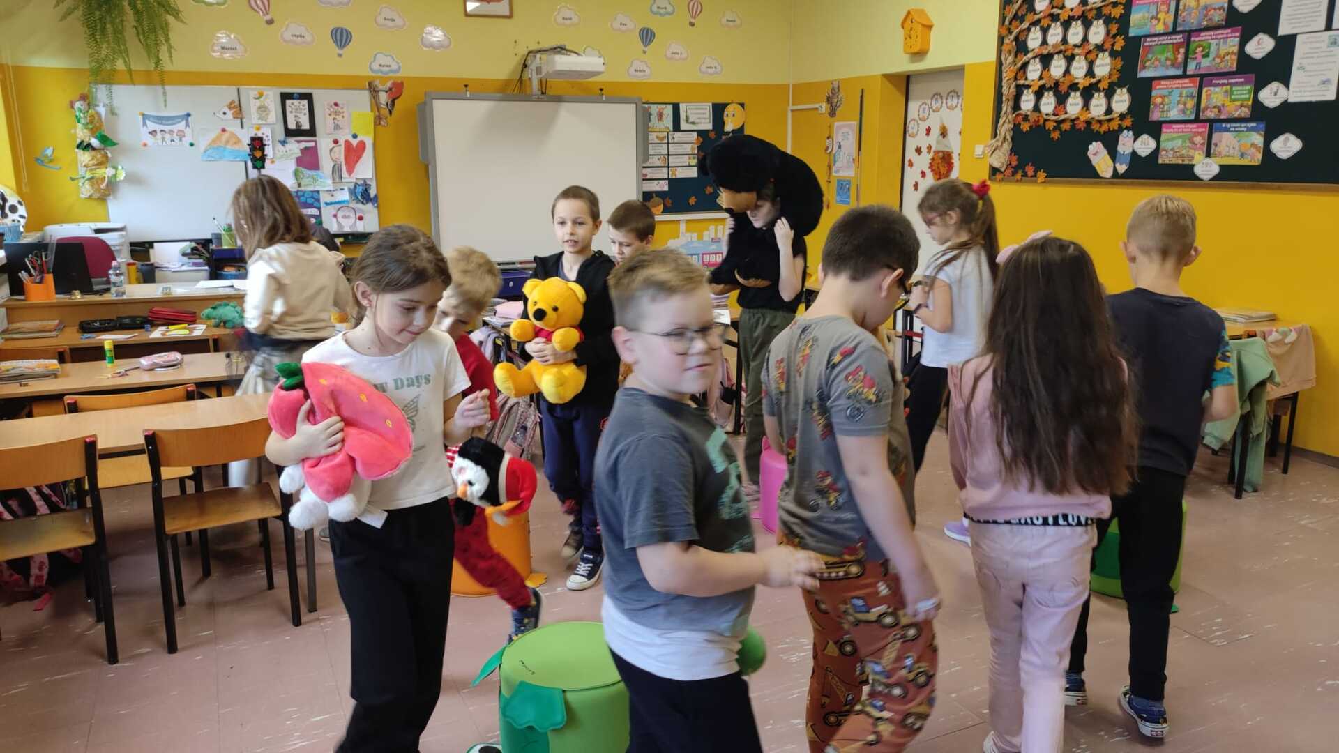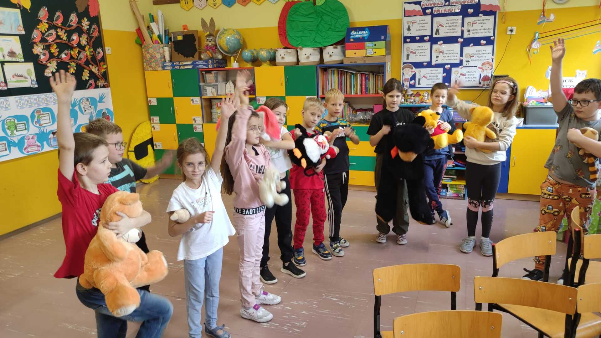 Od samego rana towarzyszyły nam w zajęciach, nawet na lekcji wf. Były kolorowanki, ciekawe historie misiów, zabawy i słodkie upominki. Prawdziwe święto Misia.