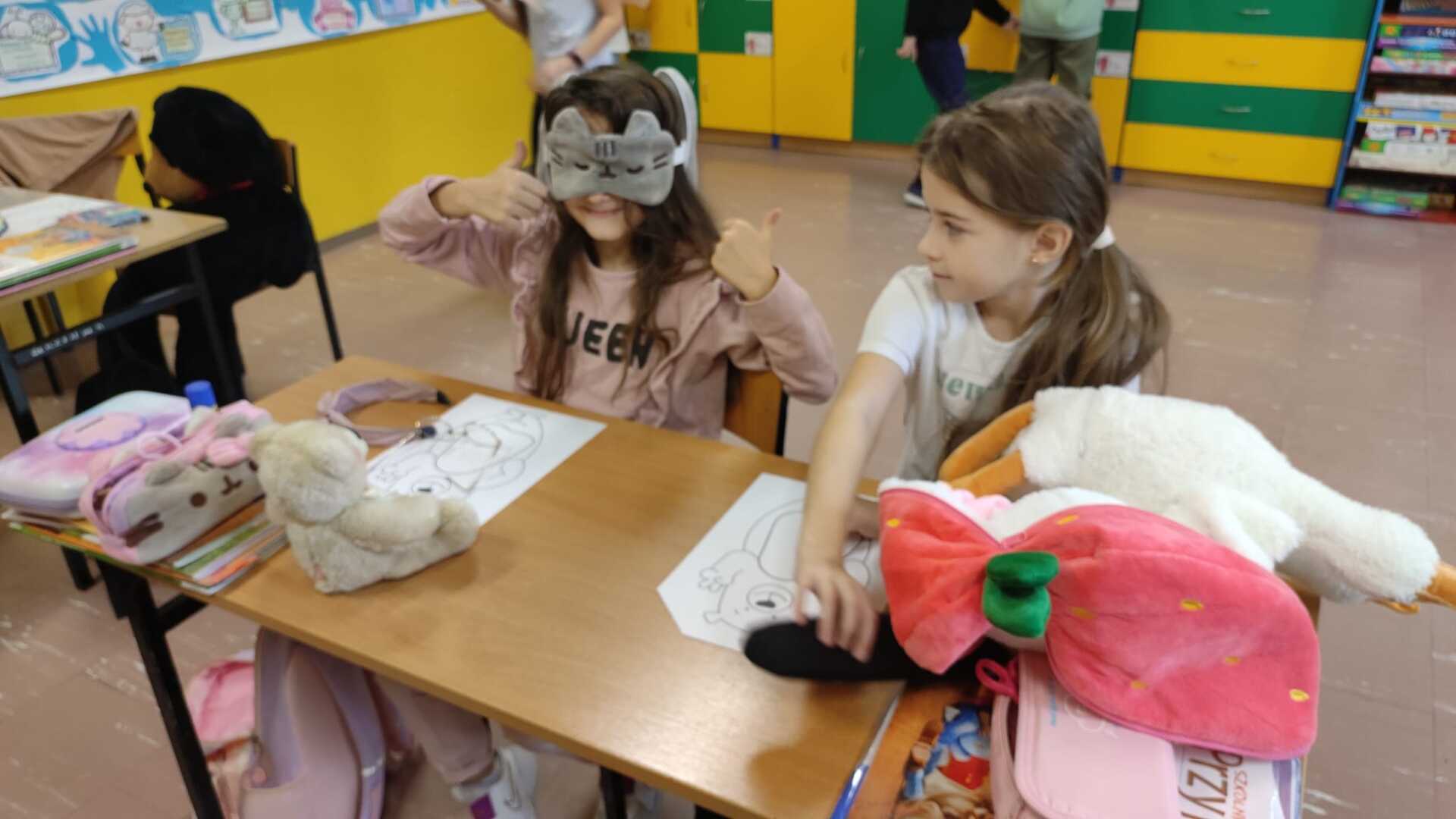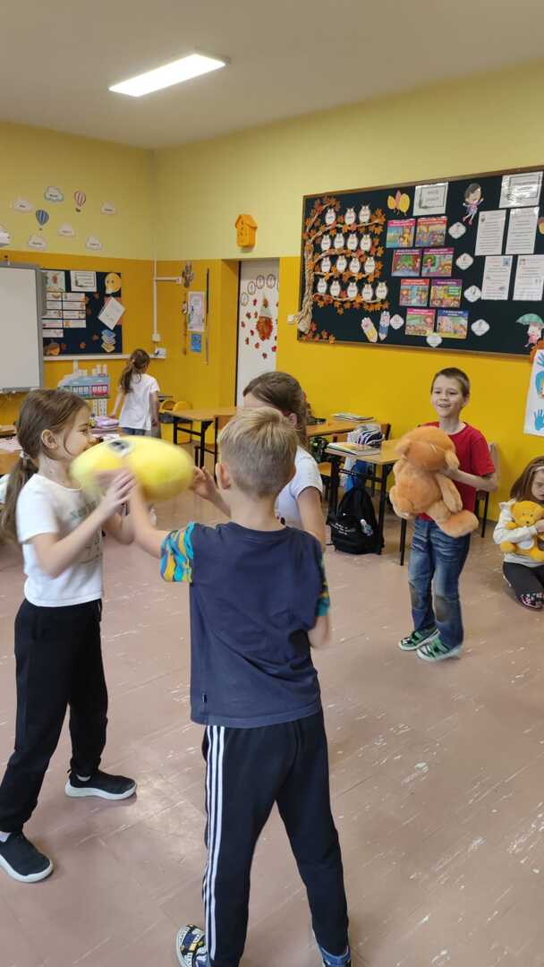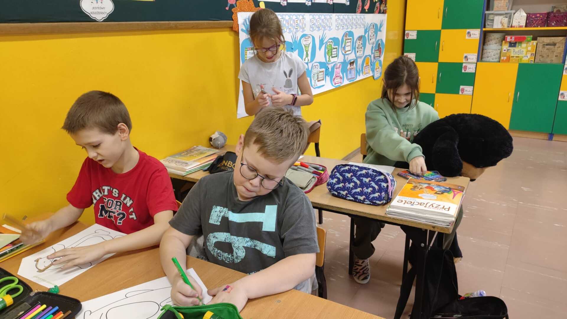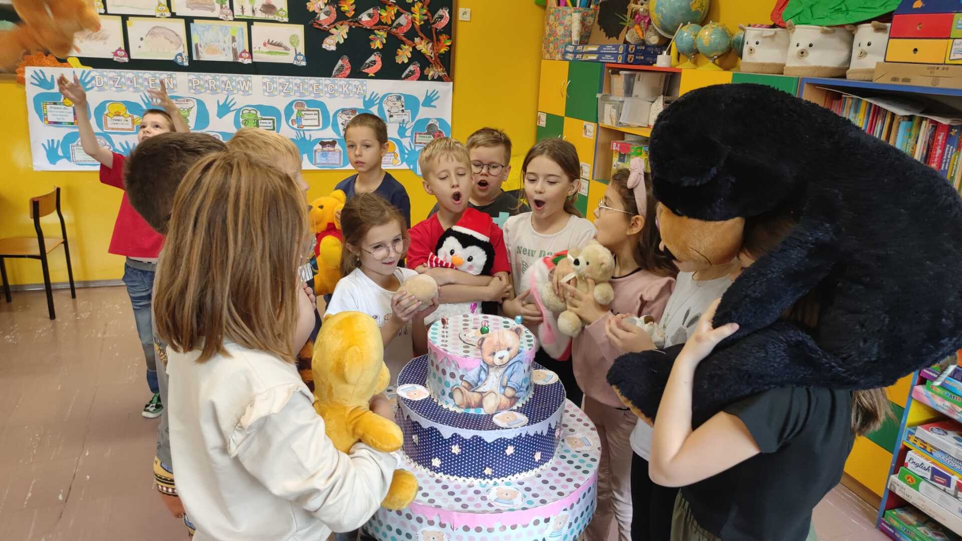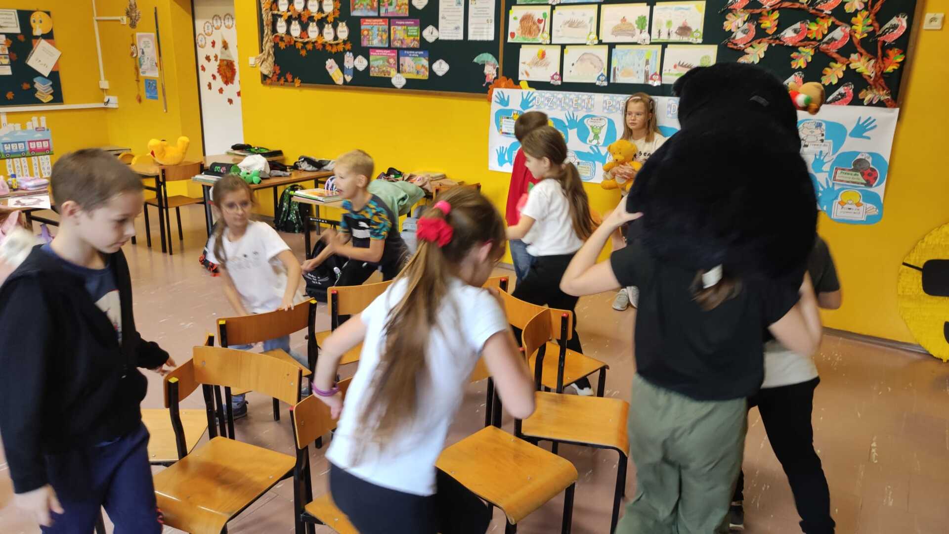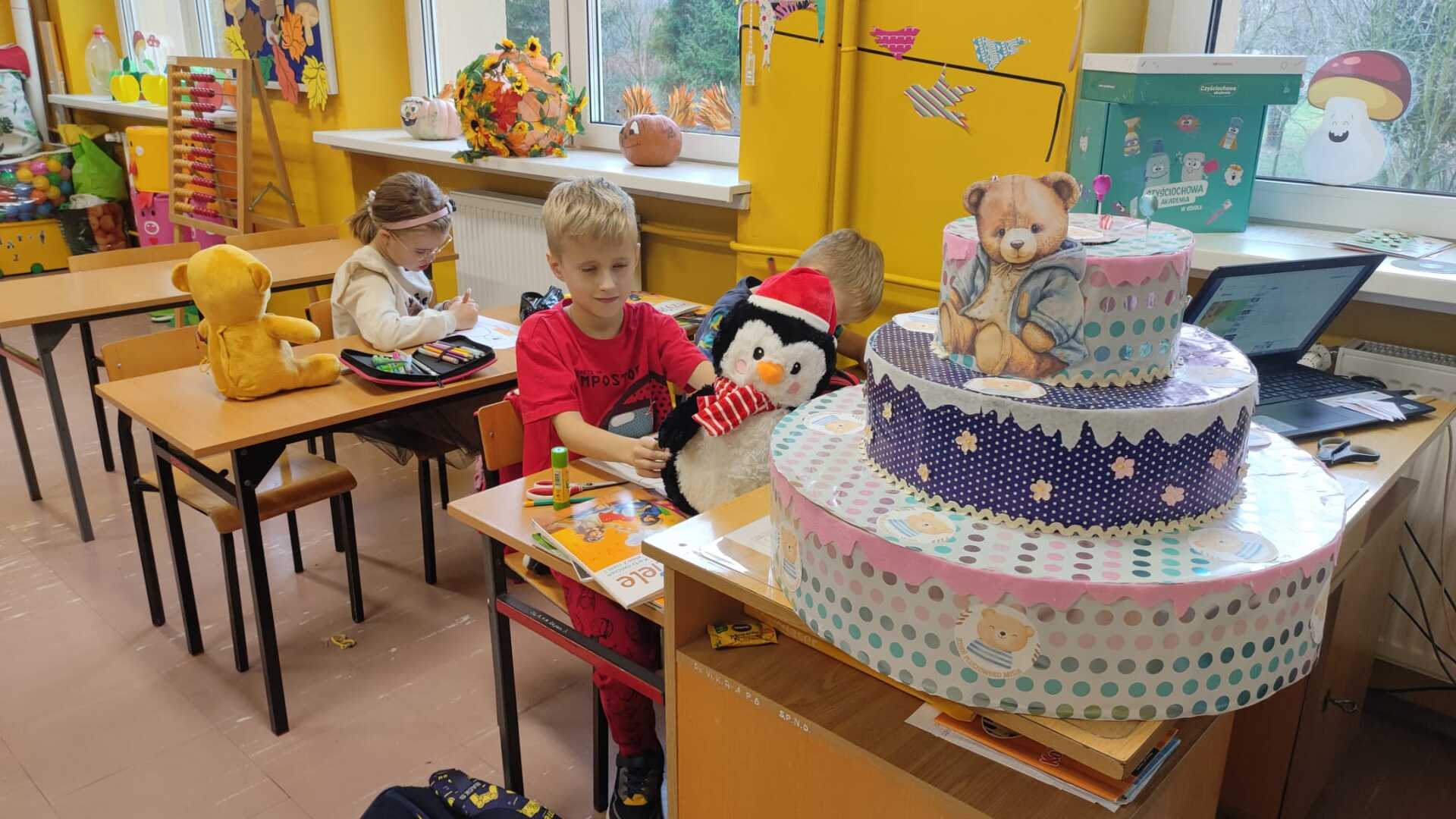 Od samego rana towarzyszyły nam w zajęciach, nawet na lekcji wf. Były kolorowanki, ciekawe historie misiów, zabawy i słodkie upominki. Prawdziwe święto Misia.
