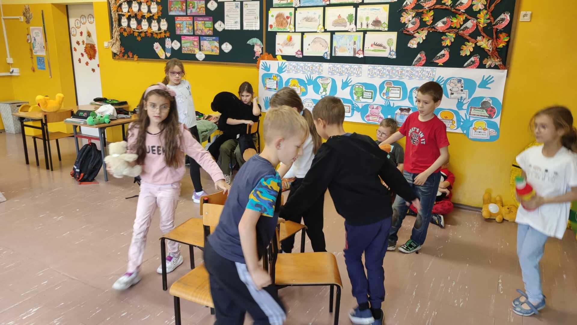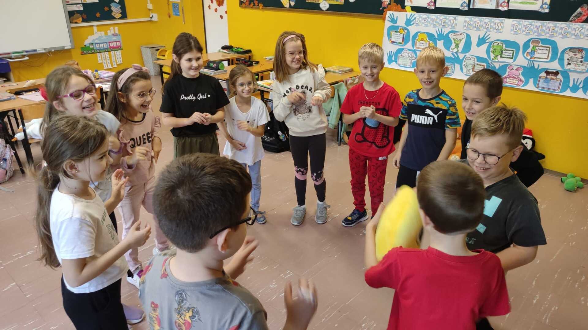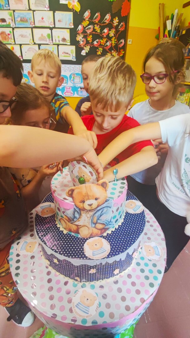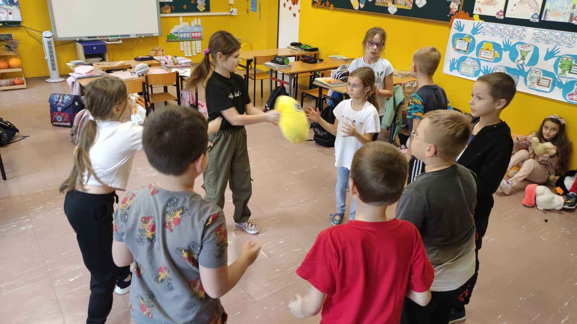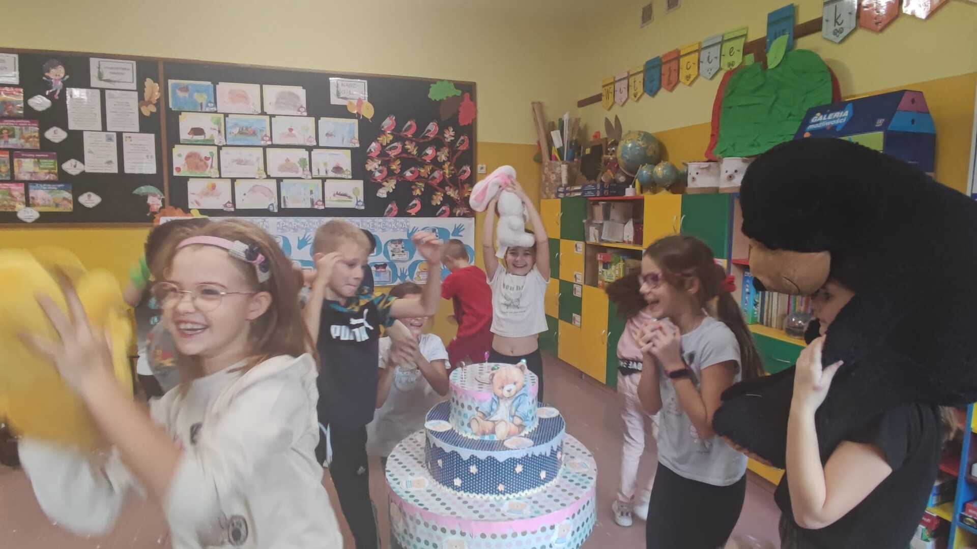 Od samego rana towarzyszyły nam w zajęciach, nawet na lekcji wf. Były kolorowanki, ciekawe historie misiów, zabawy i słodkie upominki. Prawdziwe święto Misia.