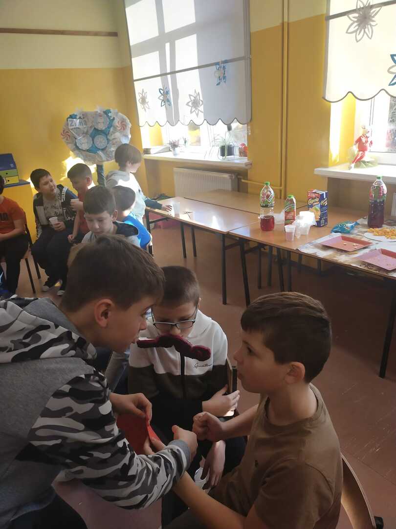 Andrzejki były świętowane także w klasie III. Tak popularne imieniny i tradycje z nimi związane były okazją do integracji klasy i dobrej zabawy. Oprócz tradycyjnych zabaw andrzejkowych odbył się także konkurs na najładniejsze wąsy Andrzeja. Dzieci prezentowały wąsy przygotowane w domu i naprawdę niektórym było w nich do twarzy. Laureatami konkursu zostali: Tosia, Marta i Wiktor, a wyróżnienie otrzymał Kamil. Niemało emocji dostarczyła zabawa w tajemnicze pudełko z wyzwaniami i magiczny dywan. Nie zabrakło także domowych wypieków i słodkości za które dziękujemy rodzicom.