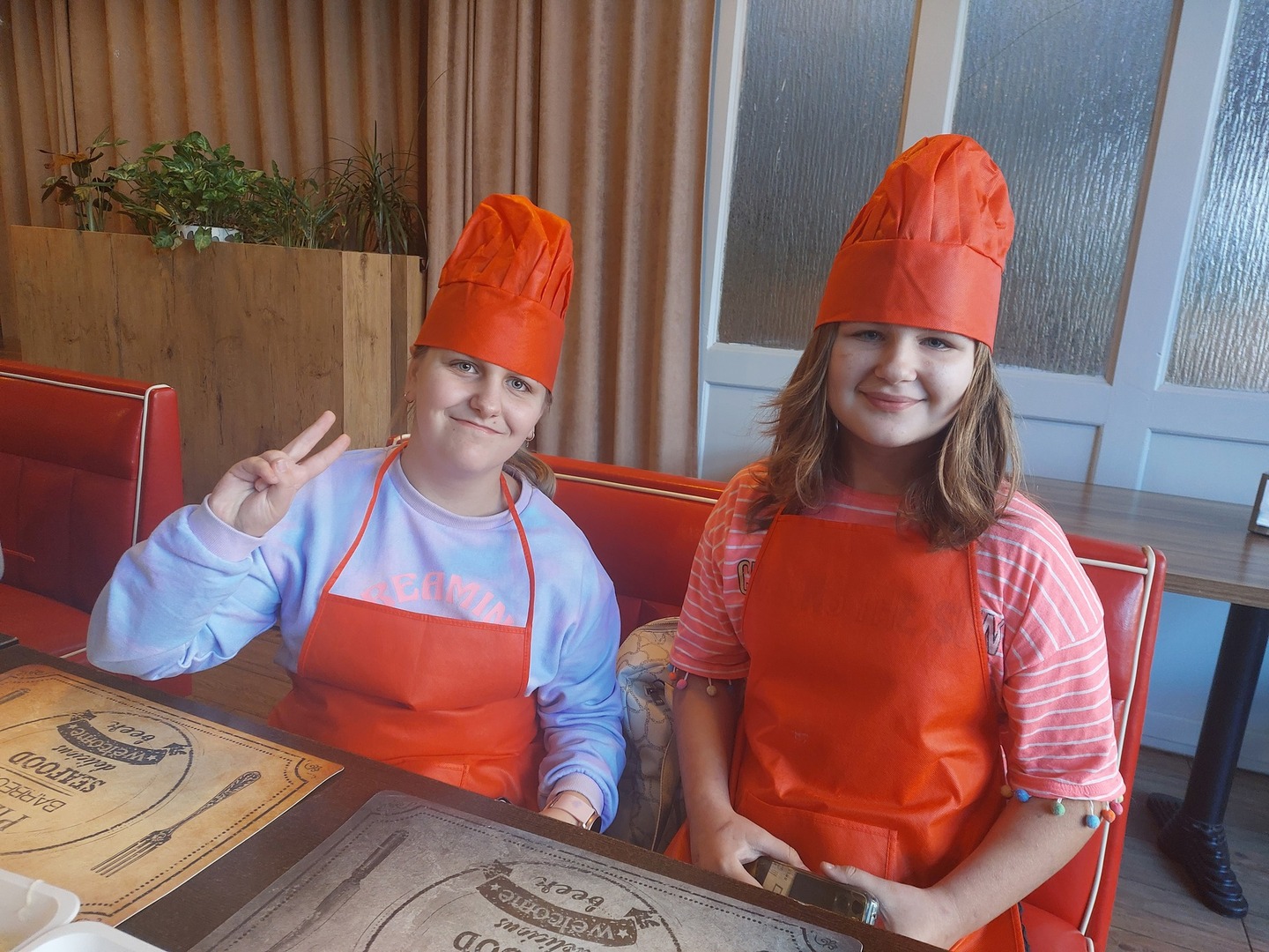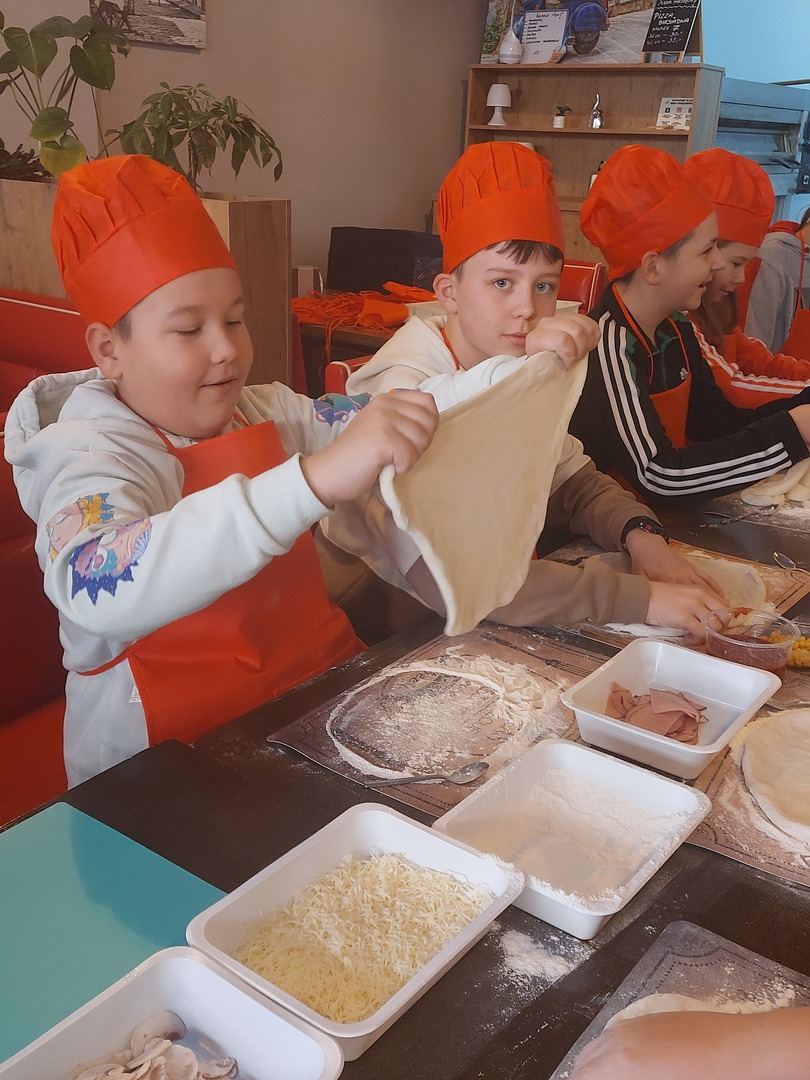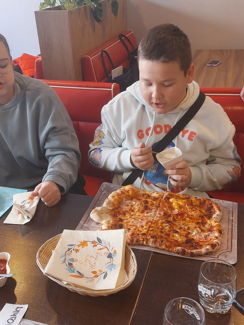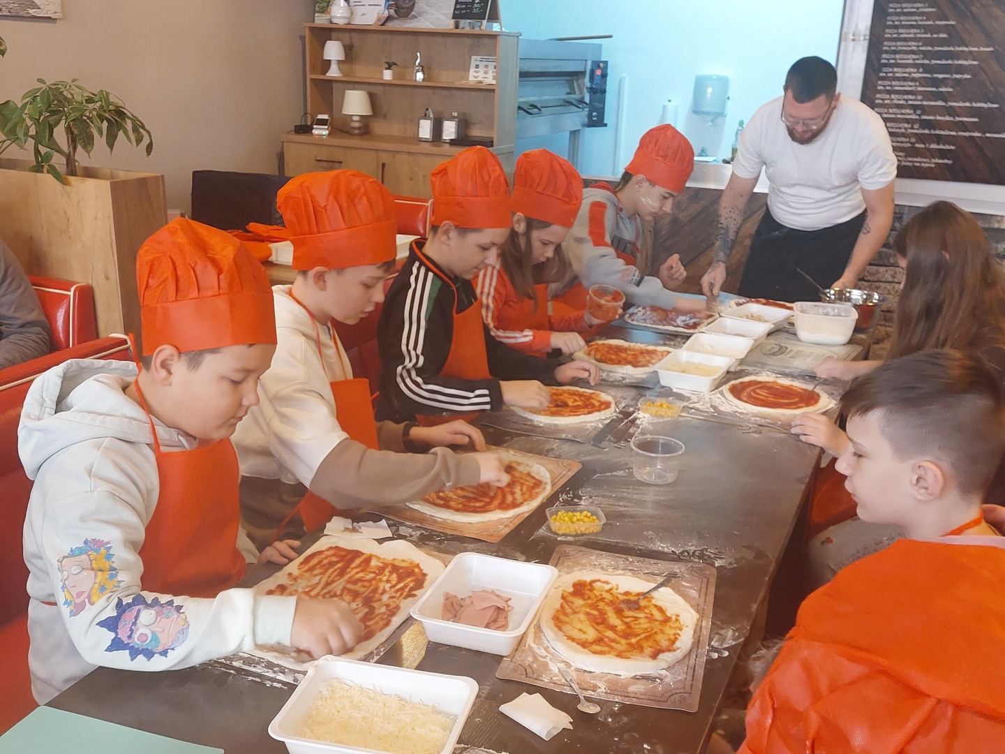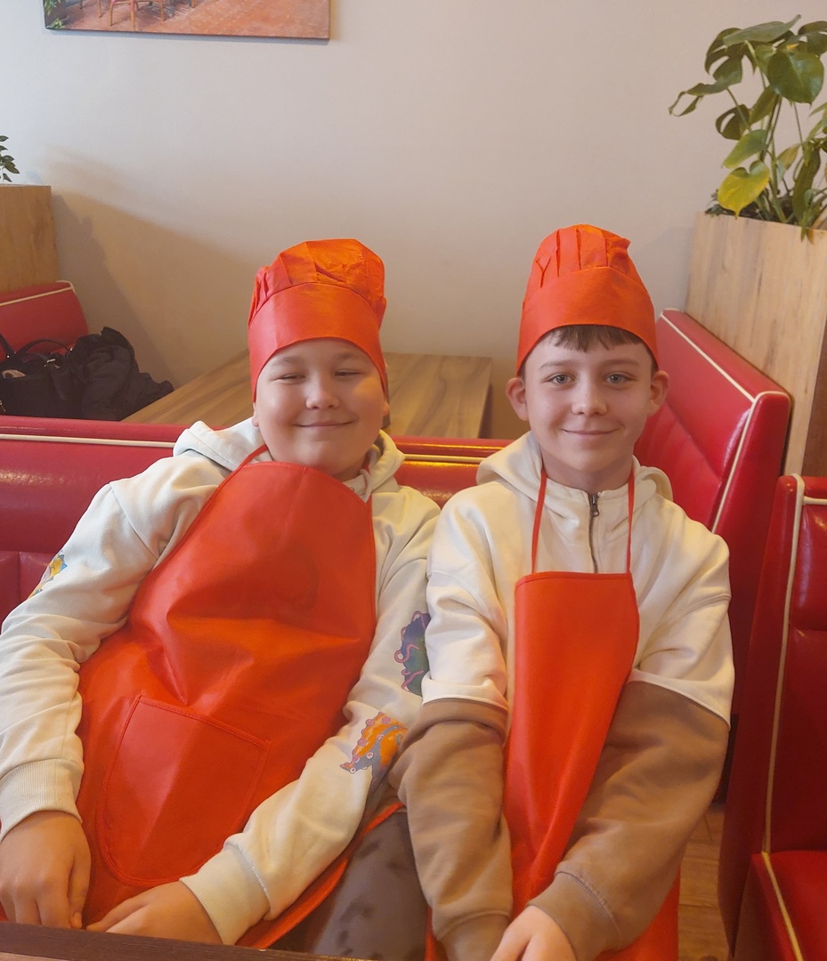 Z tej okazji wybrali się na warsztaty kulinarne do restauracji "Kącik Biesiadny" we Włocławku. Celem wycieczki było zapoznanie się z pracą w pizzerii i sposobem przygotowania pizzy, a także uwrażliwienie uczniów na kulturalne zachowanie się w pizzerii.