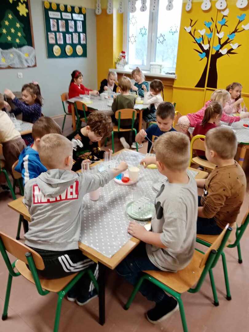 W dniu 13 grudnia 2023r. grupy 0 A, 0 B, 0 C uczestniczyły w warsztatach kreatywnych „Zimowe doświadczenia”.