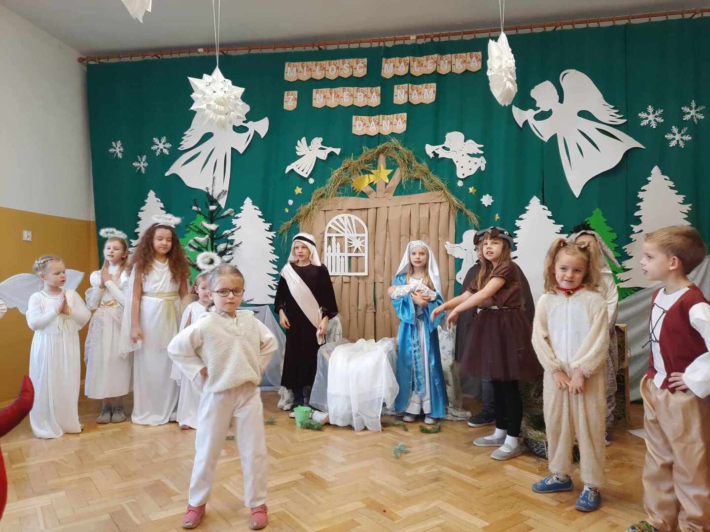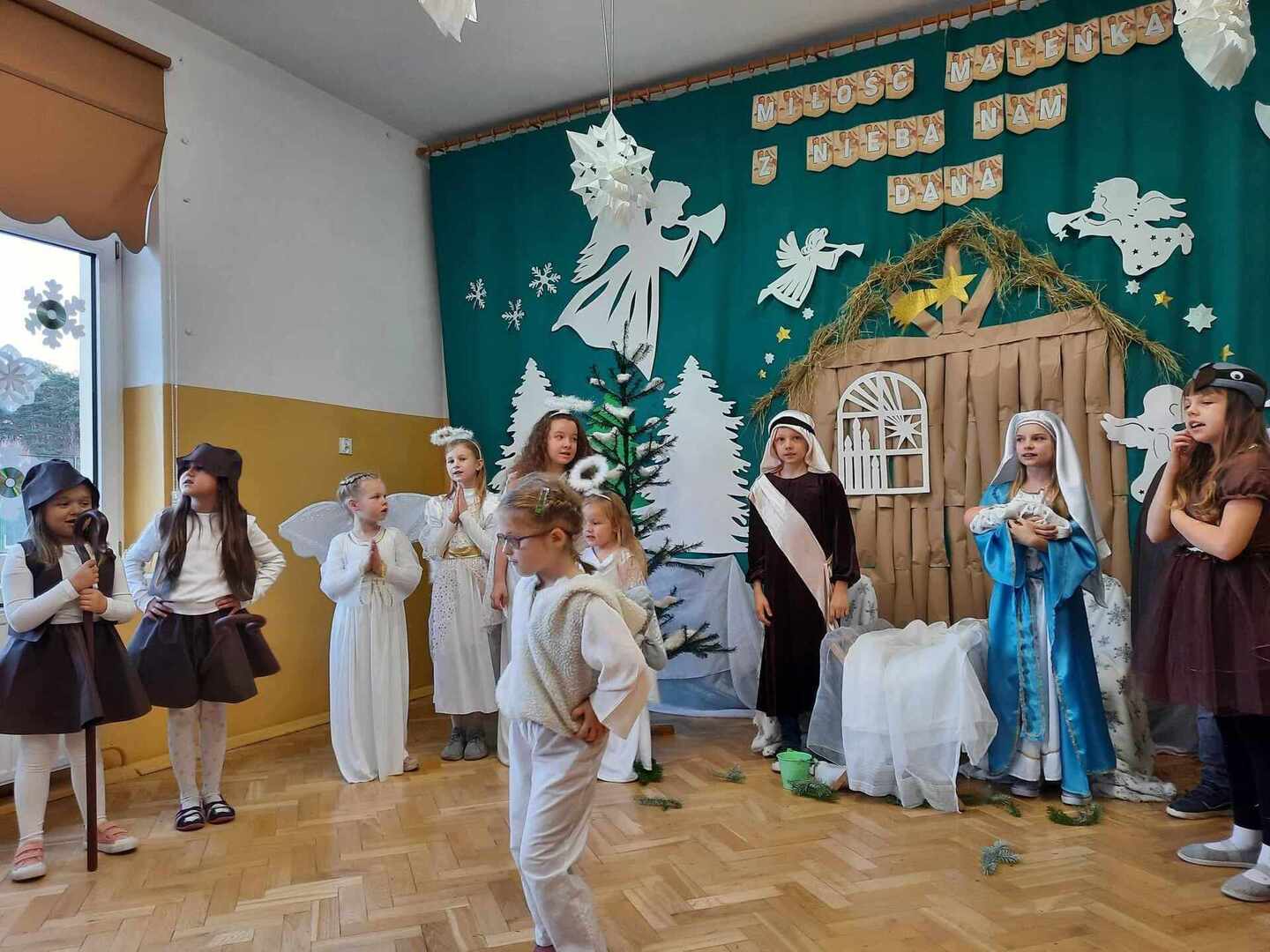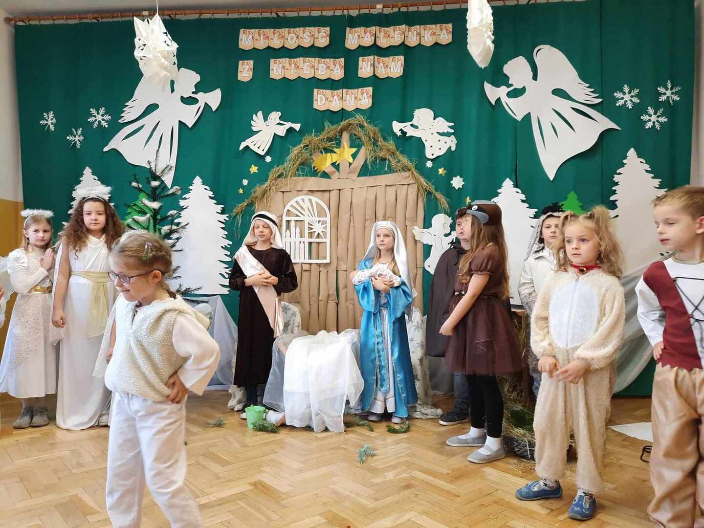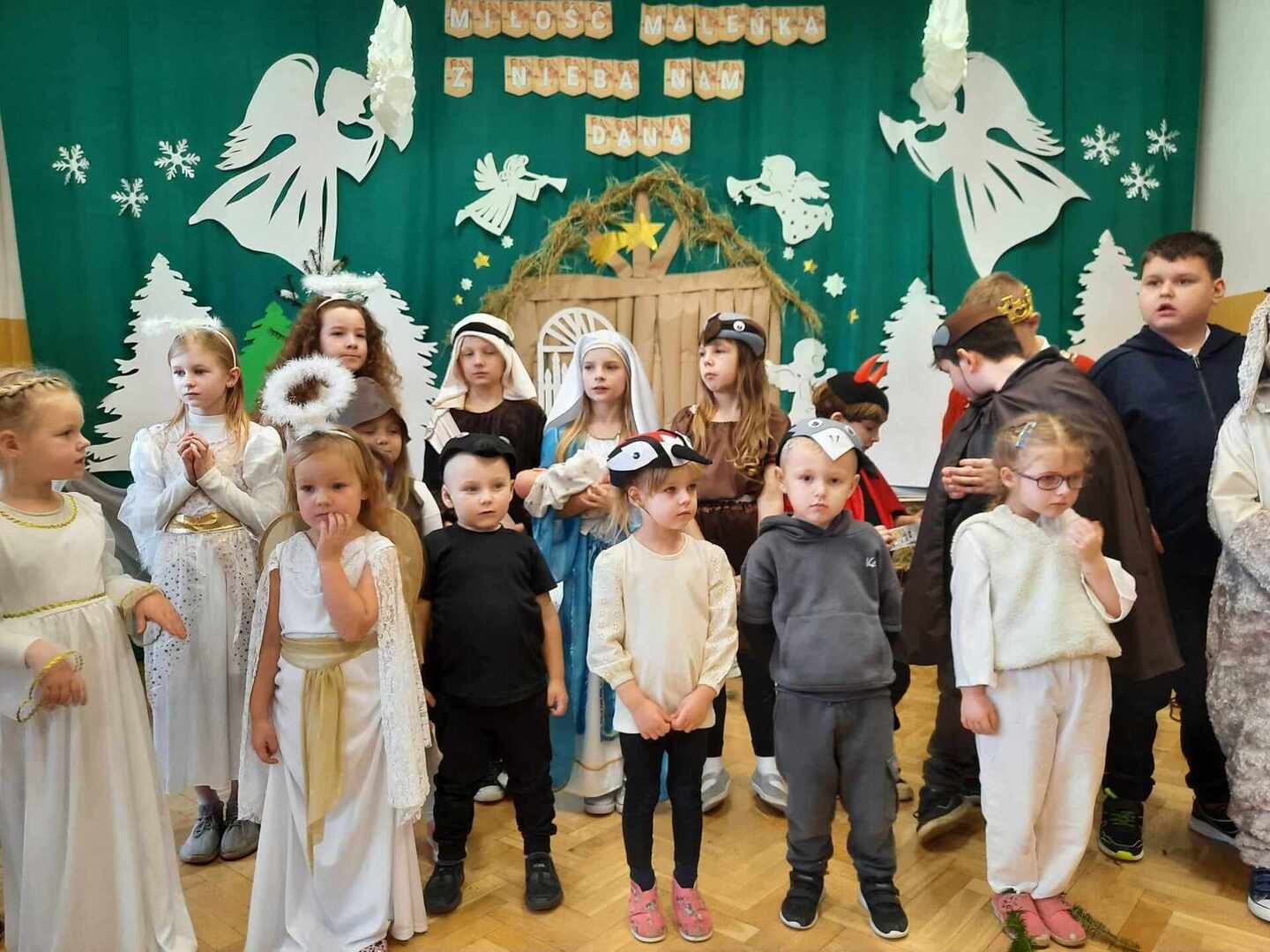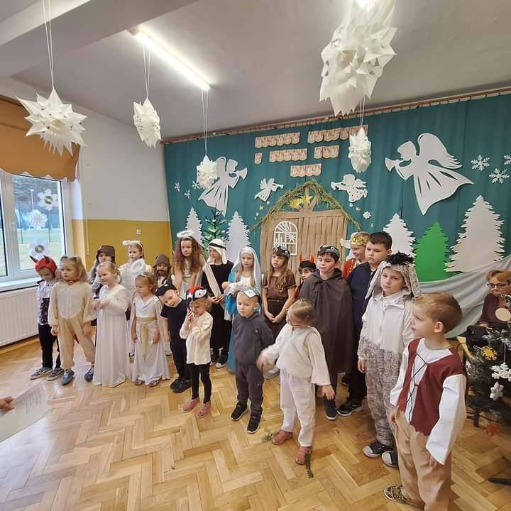 Przedszkolaki i uczniowie Szkoły Filialnej w Soczewce, aby podkreślić wyjątkowy charakter Świąt Bożego Narodzenia wystawili dnia 22 grudnia 2023 r. Jasełka Bożonarodzeniowe. W specjalnie przygotowanych strojach oraz w pięknej scenografii mali aktorzy przedstawili sceny narodzin Chrystusa. Obok postaci Maryi, Józefa, aniołów, diabłów i pasterzy wystąpiły zwierzęta, a szczególną rolę odegrała pewna ptasia rodzina. Jej losy w niesamowity sposób, także za sprawą brody Heroda, splatały się z przeżyciami Świętej Rodziny. W tej opowieści Herod coś traci, ptaszki i ludzkość zyskują, a Bóg zło w dobro przemienia. Jasełka w wykonaniu uczniów kl. 0A, 0B, I, II, III wprowadziły wszystkich w świąteczny nastrój, a swym pięknym występem dzieci podbiły serca publiczności. Piękny śpiew pastorałek i kolęd przypomniał wszystkim, że Święta Bożego Narodzenia są już bardzo blisko. Po zakończonym przedstawieniu głos zabrała Dyrektor Szkoły pani Ewa Romańska, która podziękowała uczniom za występ oraz złożyła wszystkim świąteczne życzenia. Do życzeń dołączył się także Ksiądz Proboszcz Mariusz Przybysz oraz inni zaproszeni goście. Tradycyjnie wszyscy podzielili się opłatkiem i złożyli sobie życzenia. Spotkanie przebiegło w miłej i świątecznej atmosferze.