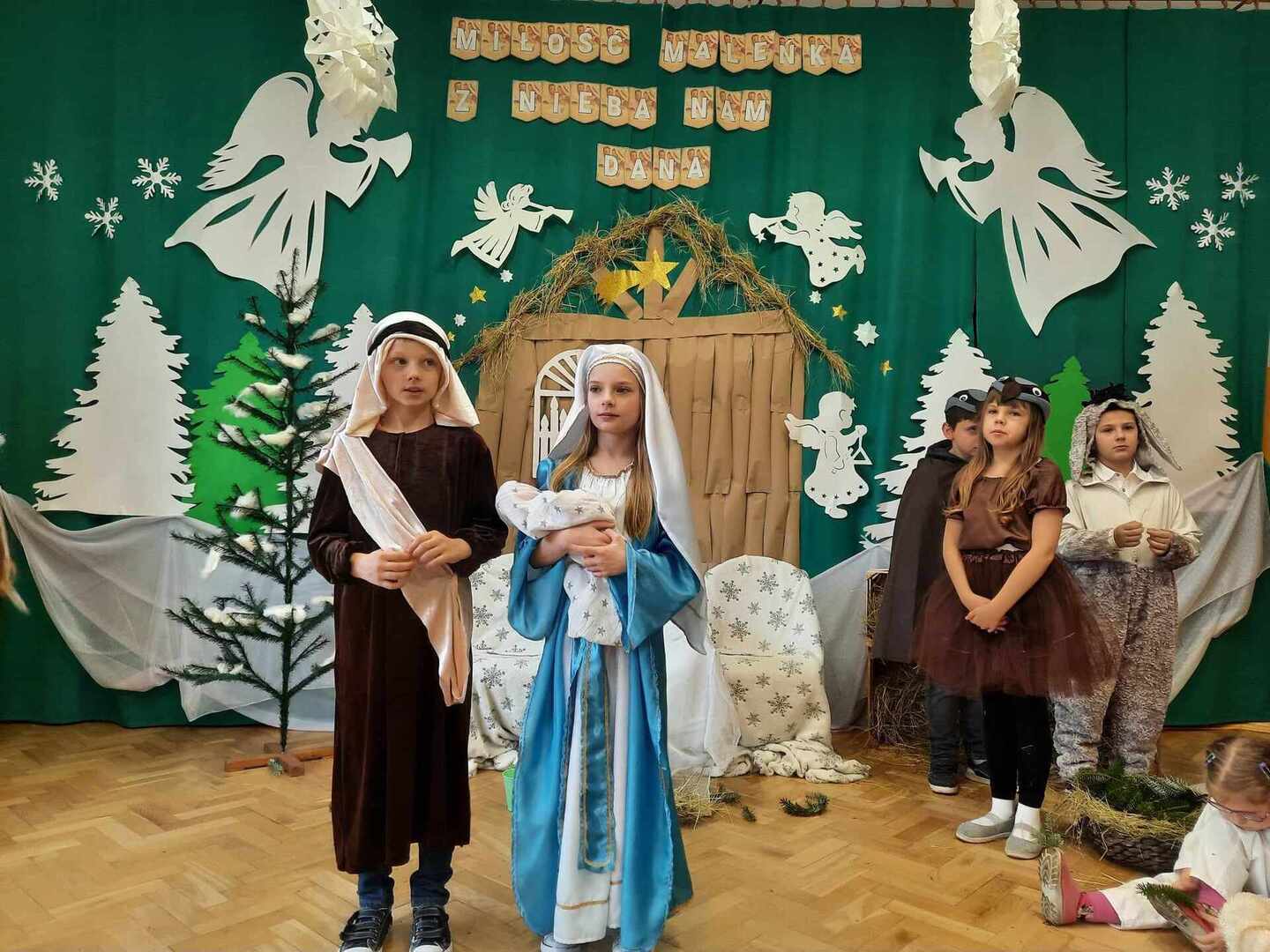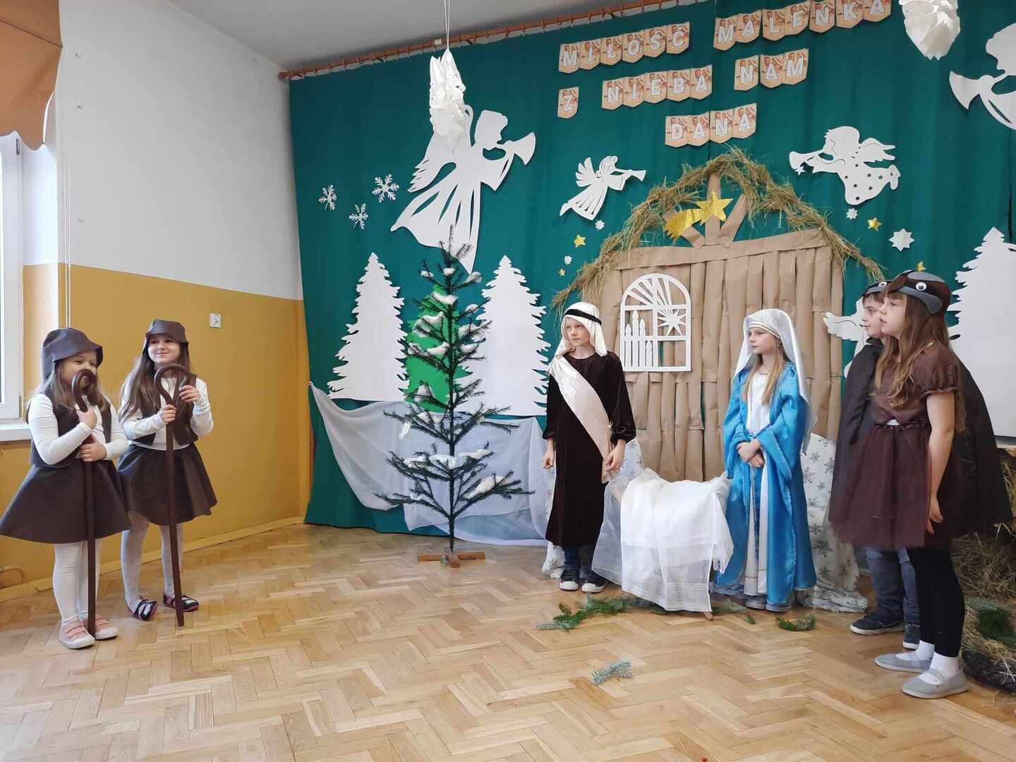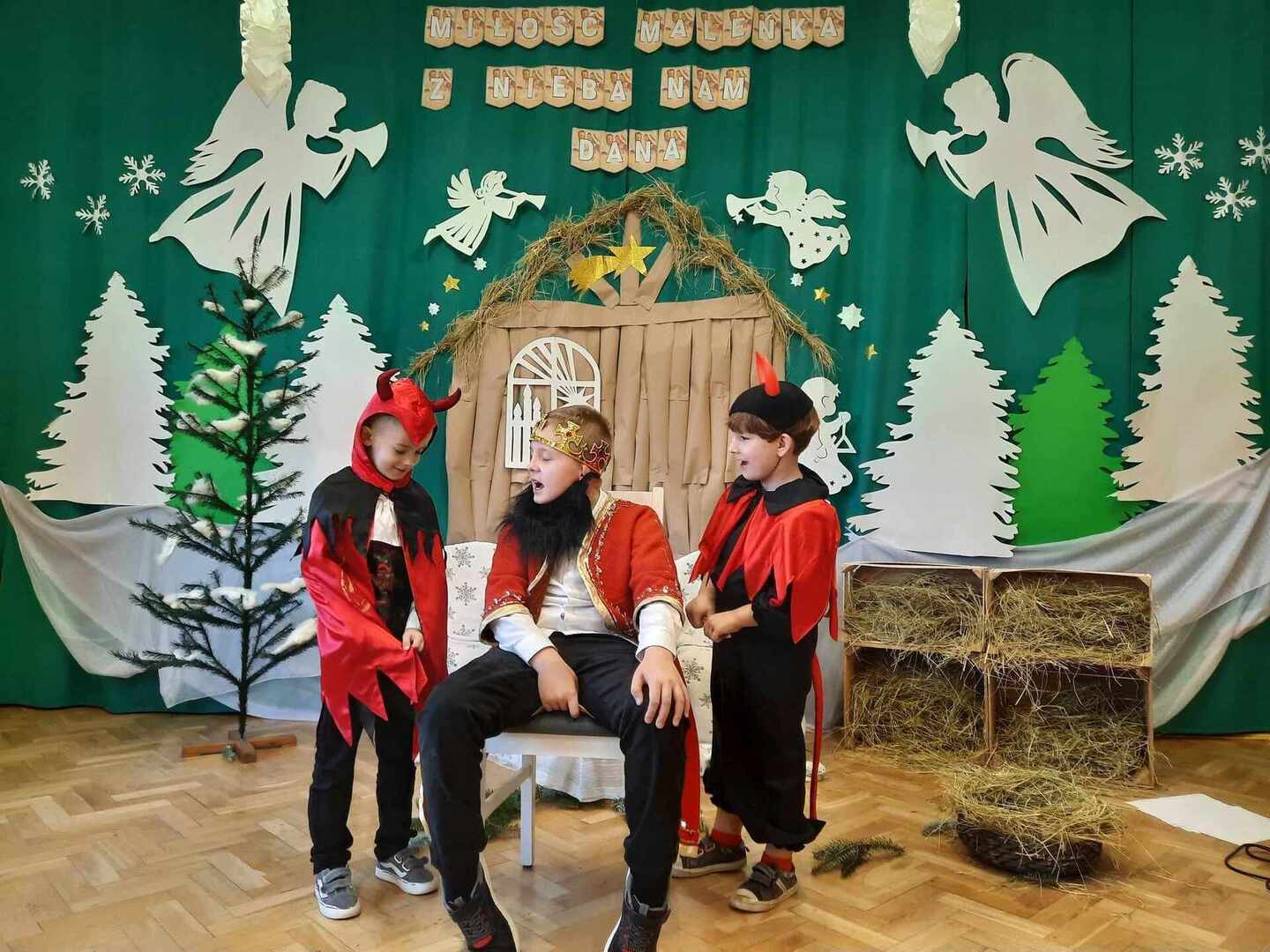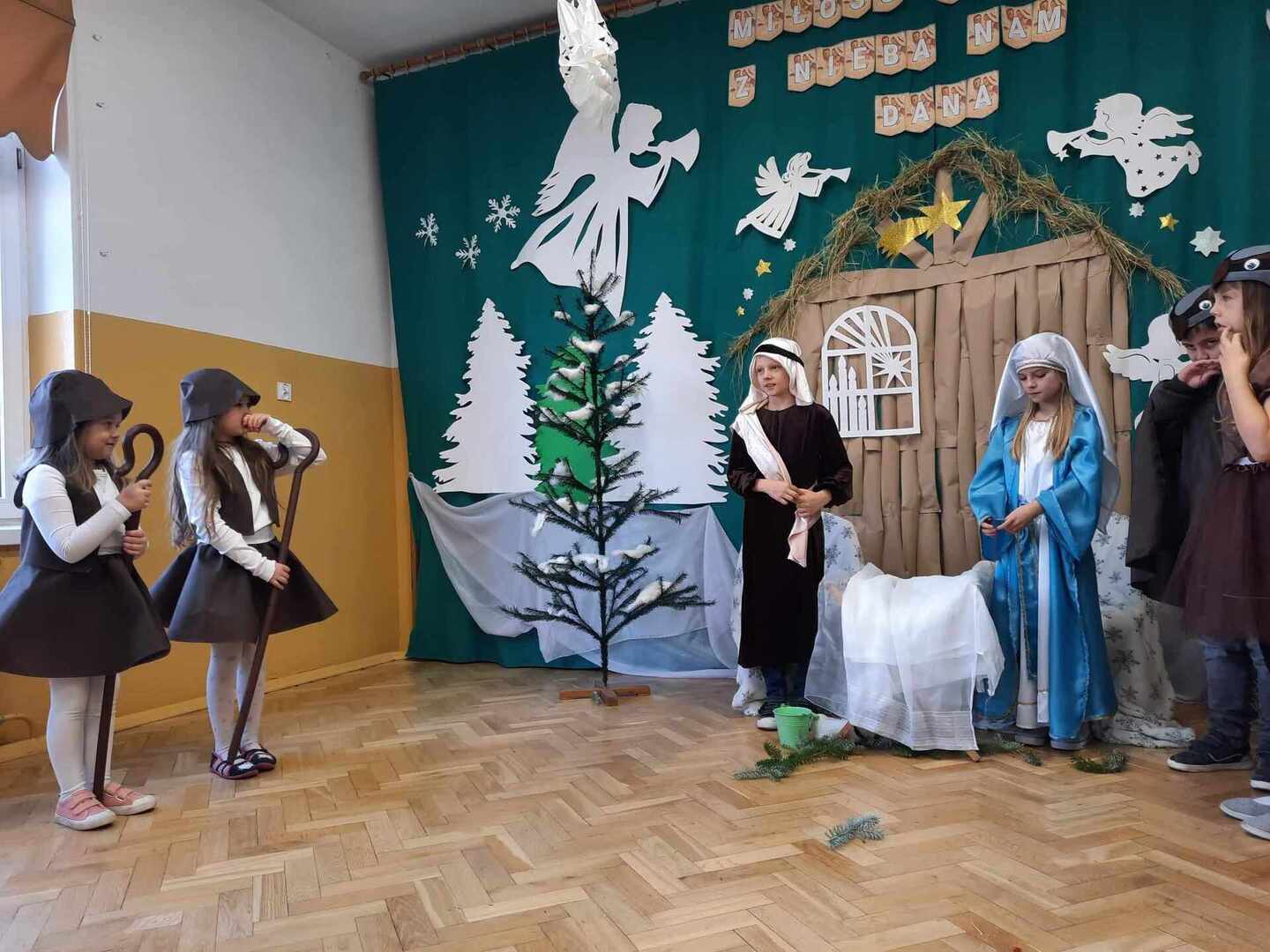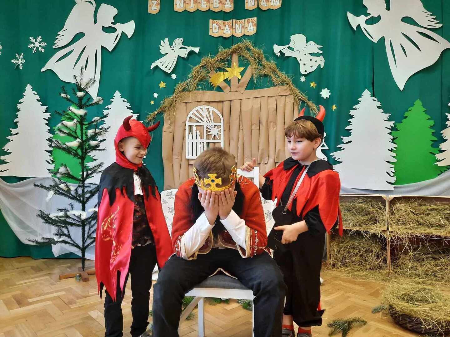 Przedszkolaki i uczniowie Szkoły Filialnej w Soczewce, aby podkreślić wyjątkowy charakter Świąt Bożego Narodzenia wystawili dnia 22 grudnia 2023 r. Jasełka Bożonarodzeniowe. W specjalnie przygotowanych strojach oraz w pięknej scenografii mali aktorzy przedstawili sceny narodzin Chrystusa. Obok postaci Maryi, Józefa, aniołów, diabłów i pasterzy wystąpiły zwierzęta, a szczególną rolę odegrała pewna ptasia rodzina. Jej losy w niesamowity sposób, także za sprawą brody Heroda, splatały się z przeżyciami Świętej Rodziny. W tej opowieści Herod coś traci, ptaszki i ludzkość zyskują, a Bóg zło w dobro przemienia. Jasełka w wykonaniu uczniów kl. 0A, 0B, I, II, III wprowadziły wszystkich w świąteczny nastrój, a swym pięknym występem dzieci podbiły serca publiczności. Piękny śpiew pastorałek i kolęd przypomniał wszystkim, że Święta Bożego Narodzenia są już bardzo blisko. Po zakończonym przedstawieniu głos zabrała Dyrektor Szkoły pani Ewa Romańska, która podziękowała uczniom za występ oraz złożyła wszystkim świąteczne życzenia. Do życzeń dołączył się także Ksiądz Proboszcz Mariusz Przybysz oraz inni zaproszeni goście. Tradycyjnie wszyscy podzielili się opłatkiem i złożyli sobie życzenia. Spotkanie przebiegło w miłej i świątecznej atmosferze.