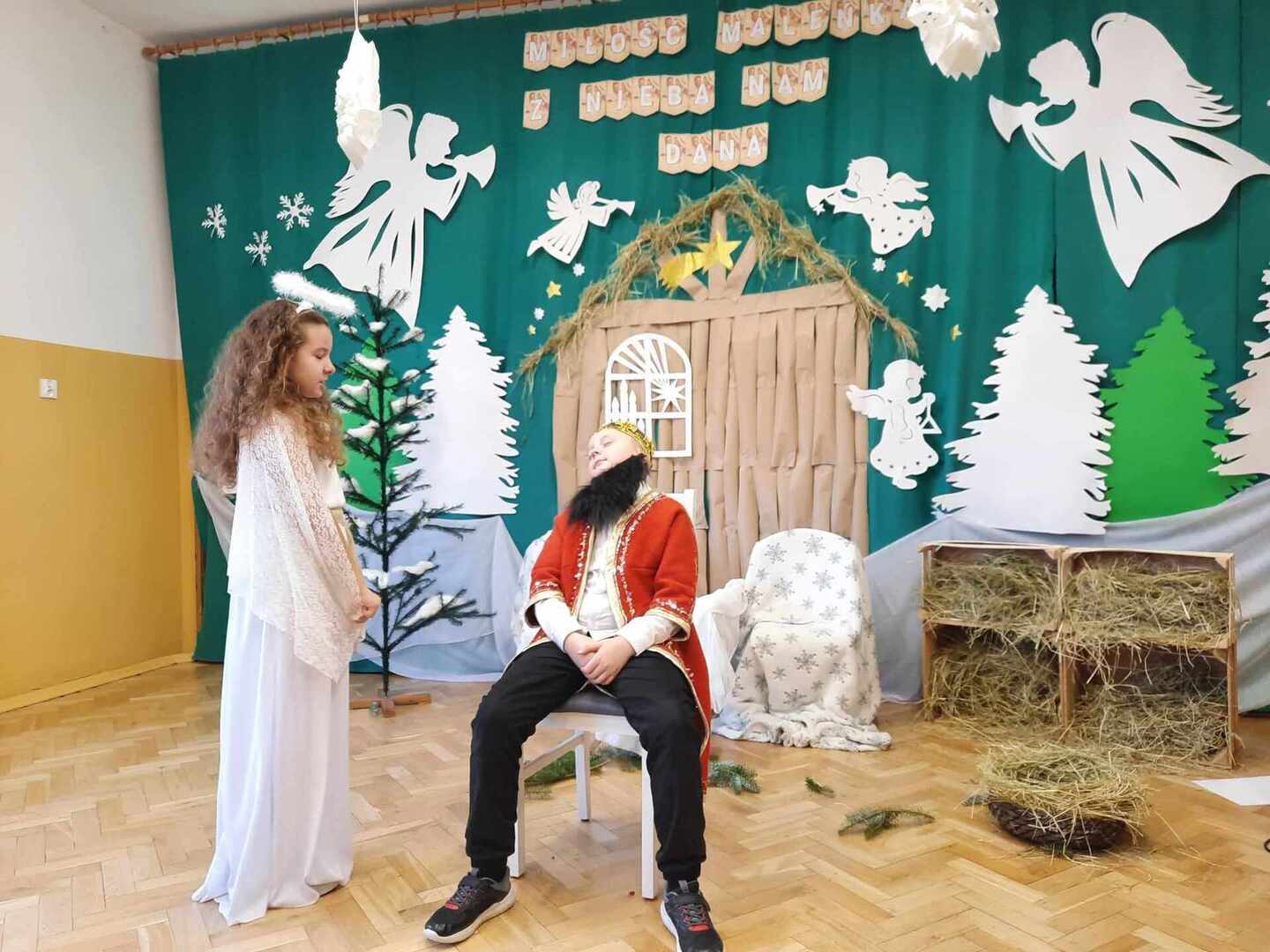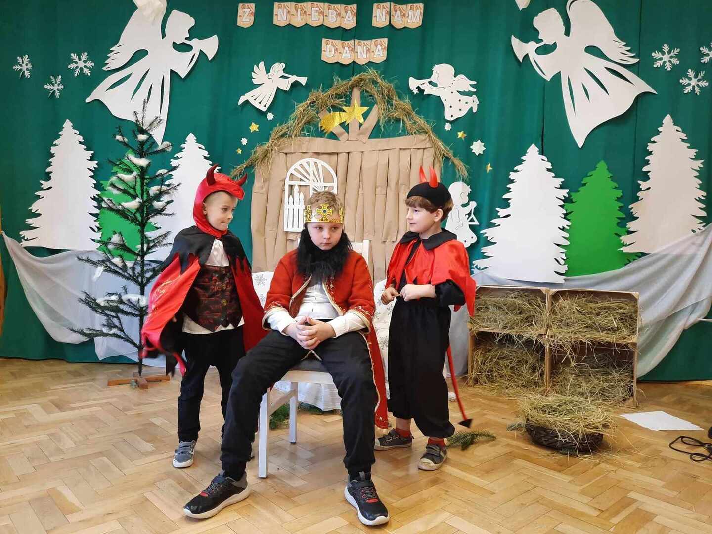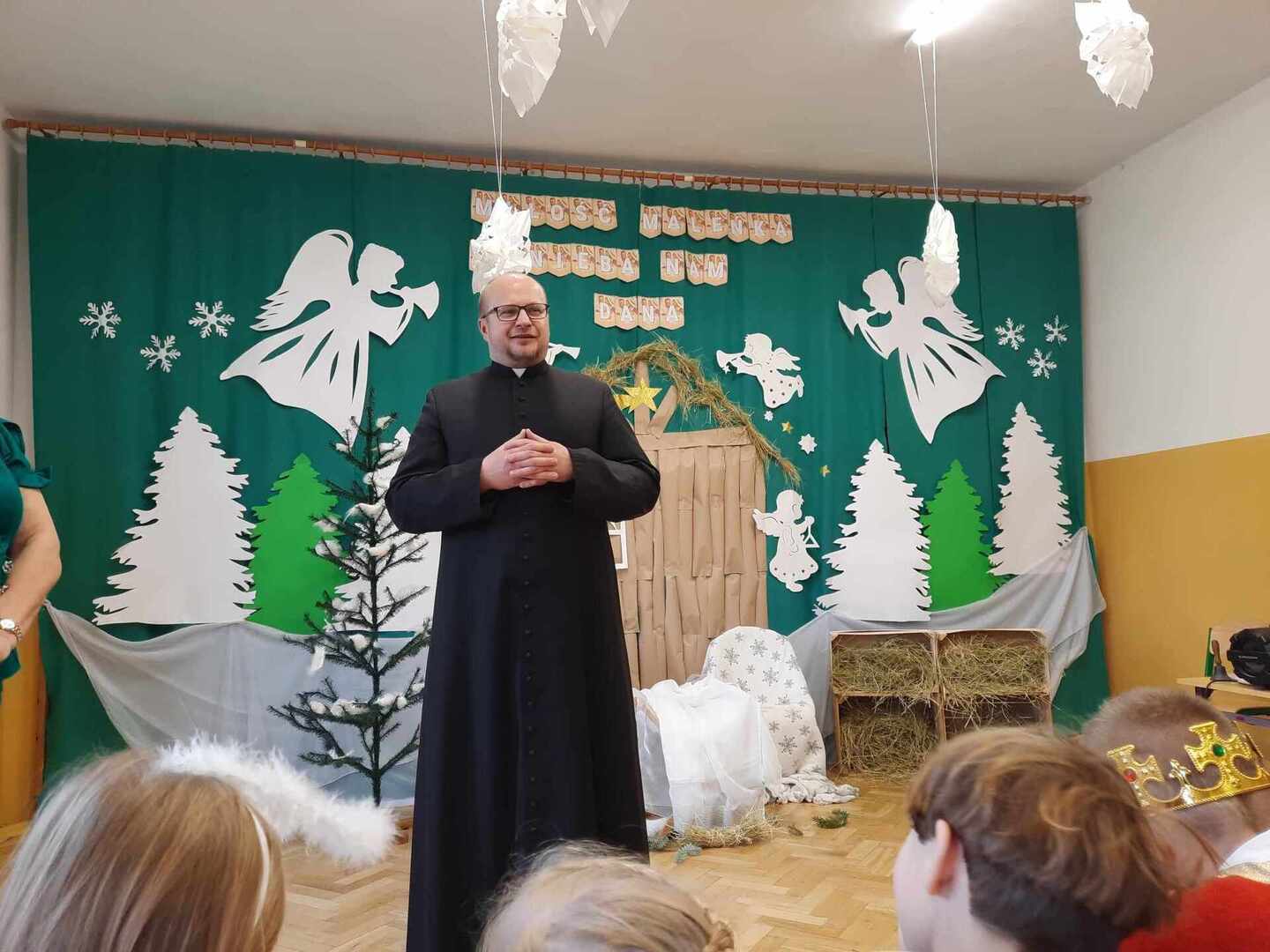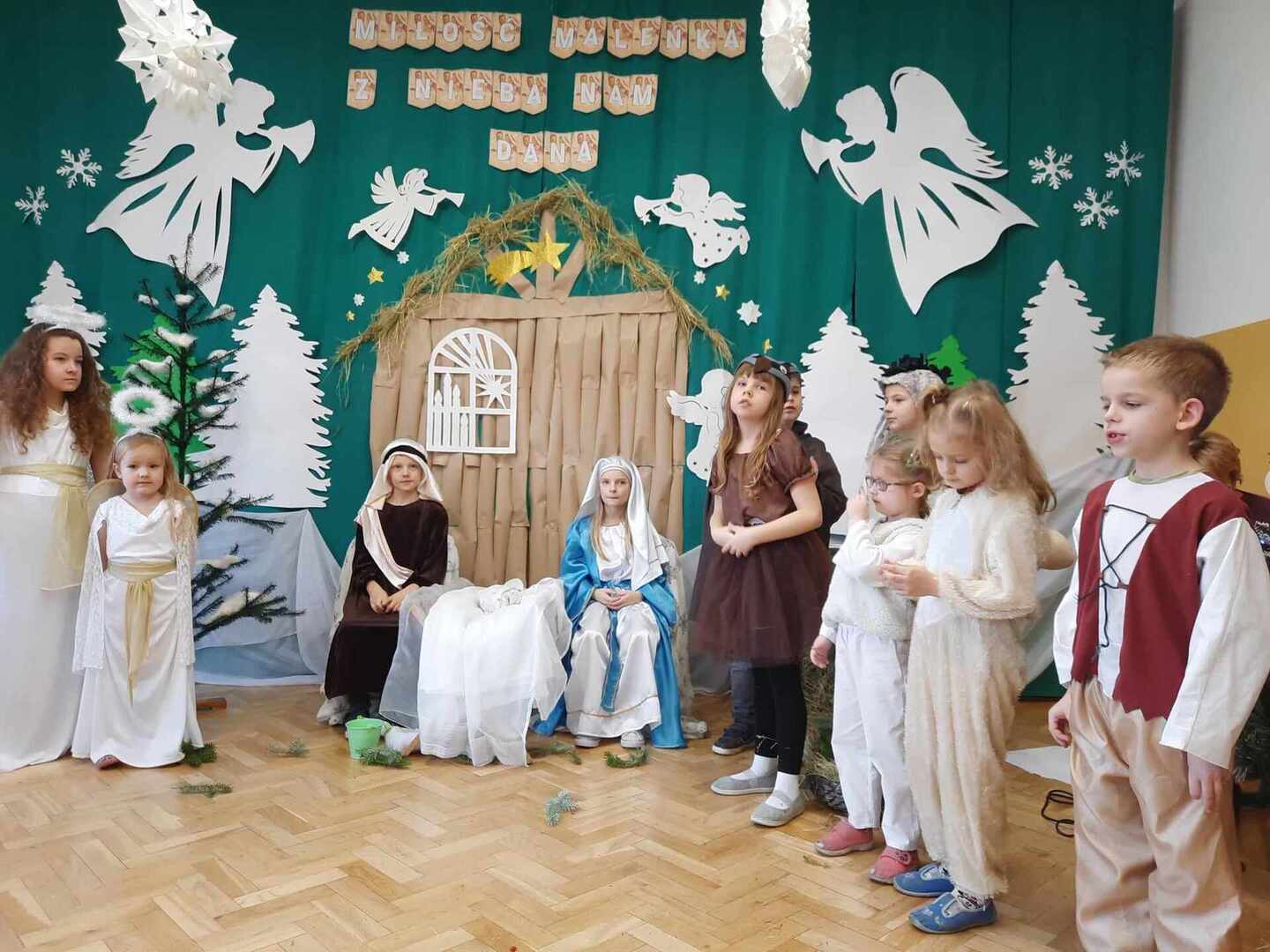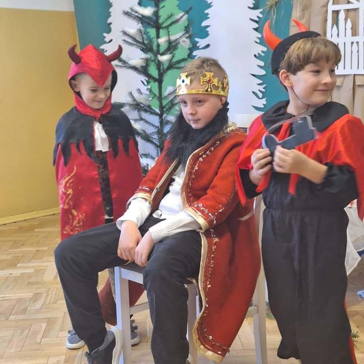 Przedszkolaki i uczniowie Szkoły Filialnej w Soczewce, aby podkreślić wyjątkowy charakter Świąt Bożego Narodzenia wystawili dnia 22 grudnia 2023 r. Jasełka Bożonarodzeniowe. W specjalnie przygotowanych strojach oraz w pięknej scenografii mali aktorzy przedstawili sceny narodzin Chrystusa. Obok postaci Maryi, Józefa, aniołów, diabłów i pasterzy wystąpiły zwierzęta, a szczególną rolę odegrała pewna ptasia rodzina. Jej losy w niesamowity sposób, także za sprawą brody Heroda, splatały się z przeżyciami Świętej Rodziny. W tej opowieści Herod coś traci, ptaszki i ludzkość zyskują, a Bóg zło w dobro przemienia. Jasełka w wykonaniu uczniów kl. 0A, 0B, I, II, III wprowadziły wszystkich w świąteczny nastrój, a swym pięknym występem dzieci podbiły serca publiczności. Piękny śpiew pastorałek i kolęd przypomniał wszystkim, że Święta Bożego Narodzenia są już bardzo blisko. Po zakończonym przedstawieniu głos zabrała Dyrektor Szkoły pani Ewa Romańska, która podziękowała uczniom za występ oraz złożyła wszystkim świąteczne życzenia. Do życzeń dołączył się także Ksiądz Proboszcz Mariusz Przybysz oraz inni zaproszeni goście. Tradycyjnie wszyscy podzielili się opłatkiem i złożyli sobie życzenia. Spotkanie przebiegło w miłej i świątecznej atmosferze.