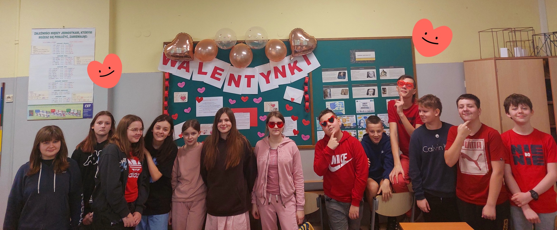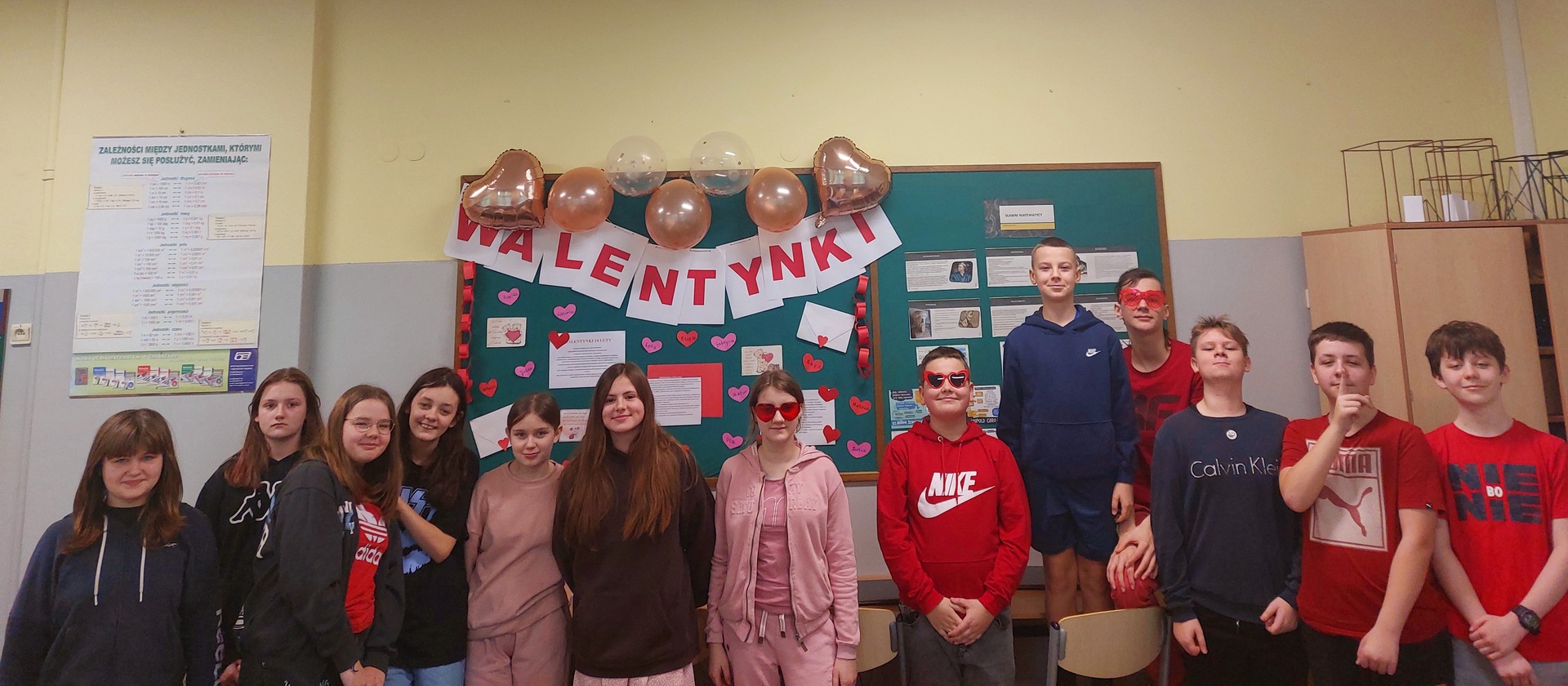 Z okazji walentynek uczniowie ubrali się na czerwono i różowo. Agatka z Wiktorią przygotowały piękną gazetkę okolicznościową.