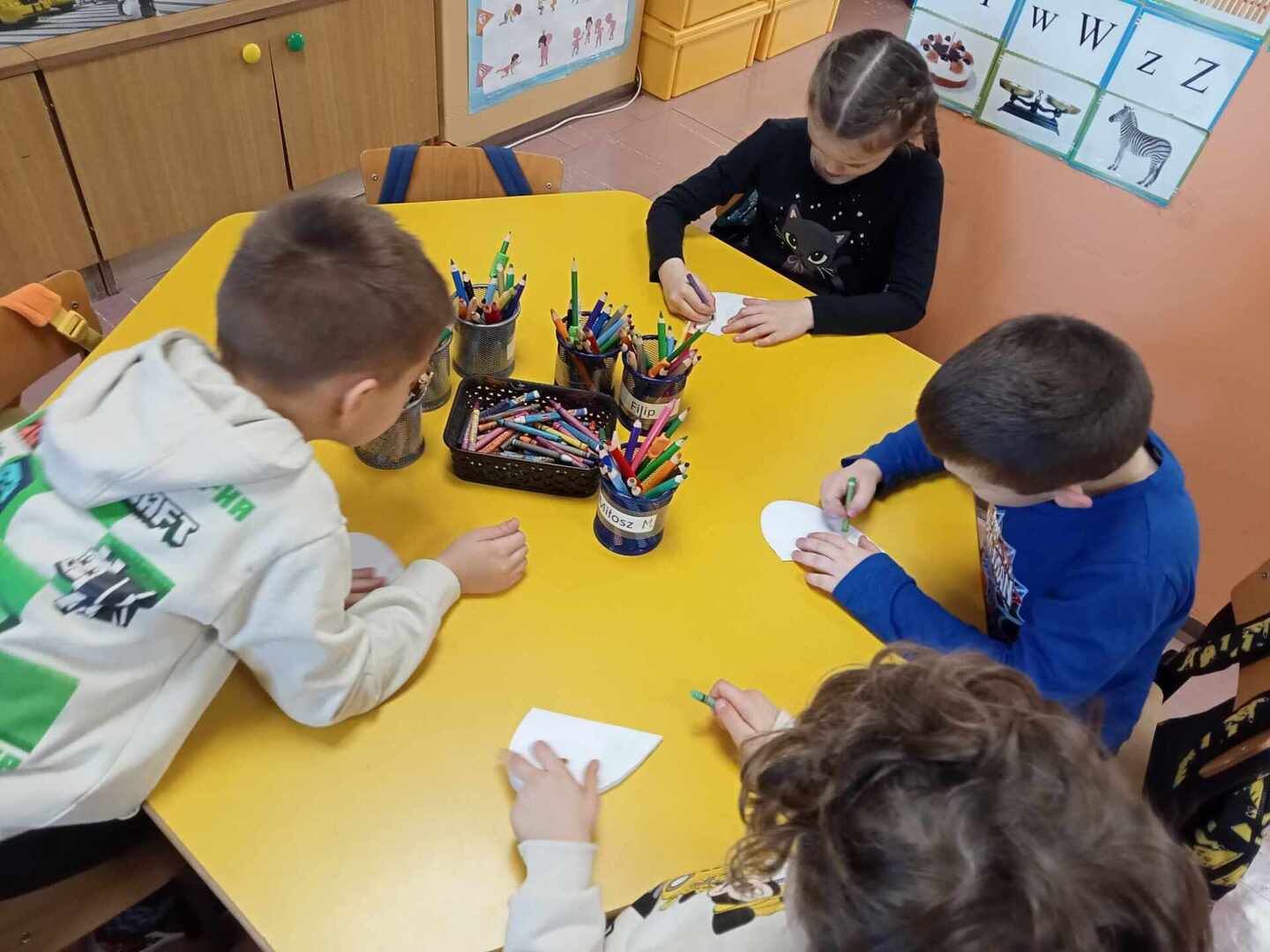 W środę 14 lutego obchodziliśmy walentynki. Rozmawialiśmy na temat znaczenia miłości i przyjaźni w naszym życiu. Dzieci wzięły udział w różnych zabawach związanych z Walentynkami, m.in.: szukały drugiej połówki serca, rozwiązywały zagadki dotyczące bohaterów bajek, lepiły serduszka z ciastoliny. Poznały także tradycje walentynkowe, dowiedziały się jak ważne jest okazywanie uczuć przyjaźni i sympatii. Wyklejały, rysowały i kolorowały serduszka, by następnie wręczyć je jako walentynkę swoim kolegom i koleżankom. Nie zabrakło również zdjęć w serduszkowej ramce.Dzień upłynął nam wszystkim w bardzo miłej atmosferze!