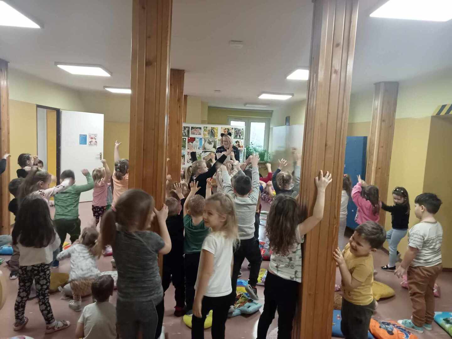 Były wesołe „kocie zabawy”, rozwiązywanie zagadek o kotach, oglądanie zdjęć różnych kotów, wykonywanie ciekawych zadań m.in.: picie mleka, karmienie kotków, a także śpiewanie kocich piosenek.