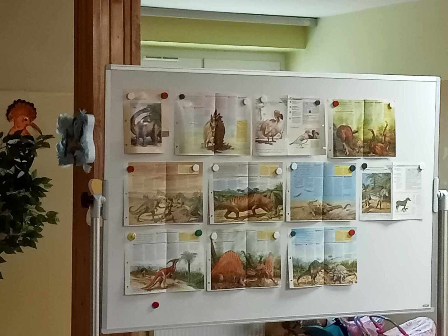29 lutego obchodziliśmy Dzień Dinozaura. To nietypowe święto obchodzone jest z wielką przyjemnością, bo dzieci uwielbiają dinozaury. Przez cały tydzień w każdej grupie odbywały się zajęcia związane z poznaniem tych zwierząt. Oglądaliśmy albumy plakaty, książki o dinozaurach. Przenieśliśmy się w ich niezwykły, prehistoryczny świat za sprawą przygotowanego na tę okazję filmu edukacyjnego, dzięki któremu mogły zobaczyć, jak wyglądały i żyły dinozaury, jak się poruszały i jakie mogły wydawać dźwięki. Dzieci dowiedziały się też kim jest paleontolog i czym się zajmuje. Następnie uczestniczyły w szeregu dino -zabaw takich jak: chodzenie po śladach dinozaurów, poszukiwanie dino-skamielin. Dzień Dinozaura przeniósł nas w odległy, fascynujący i wciąż tajemniczy świat i był dla dzieci dużą atrakcją.