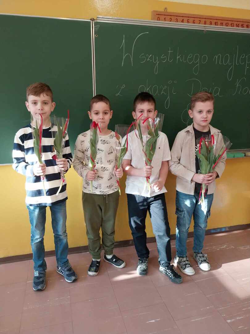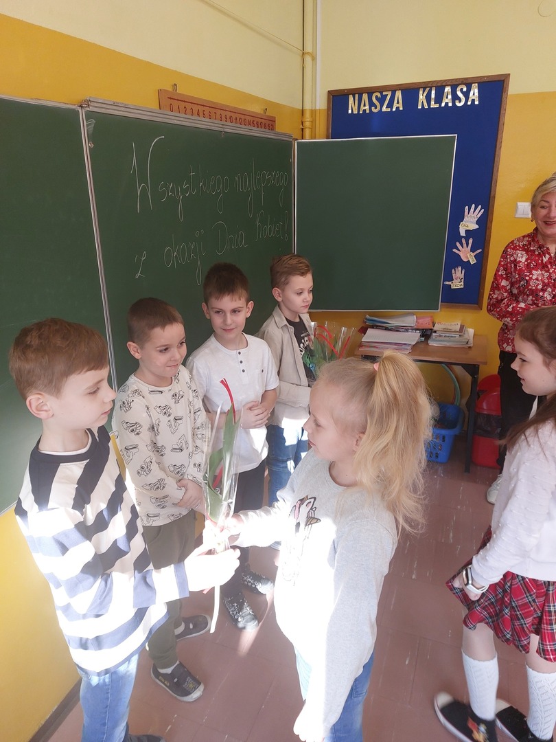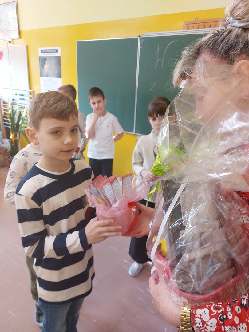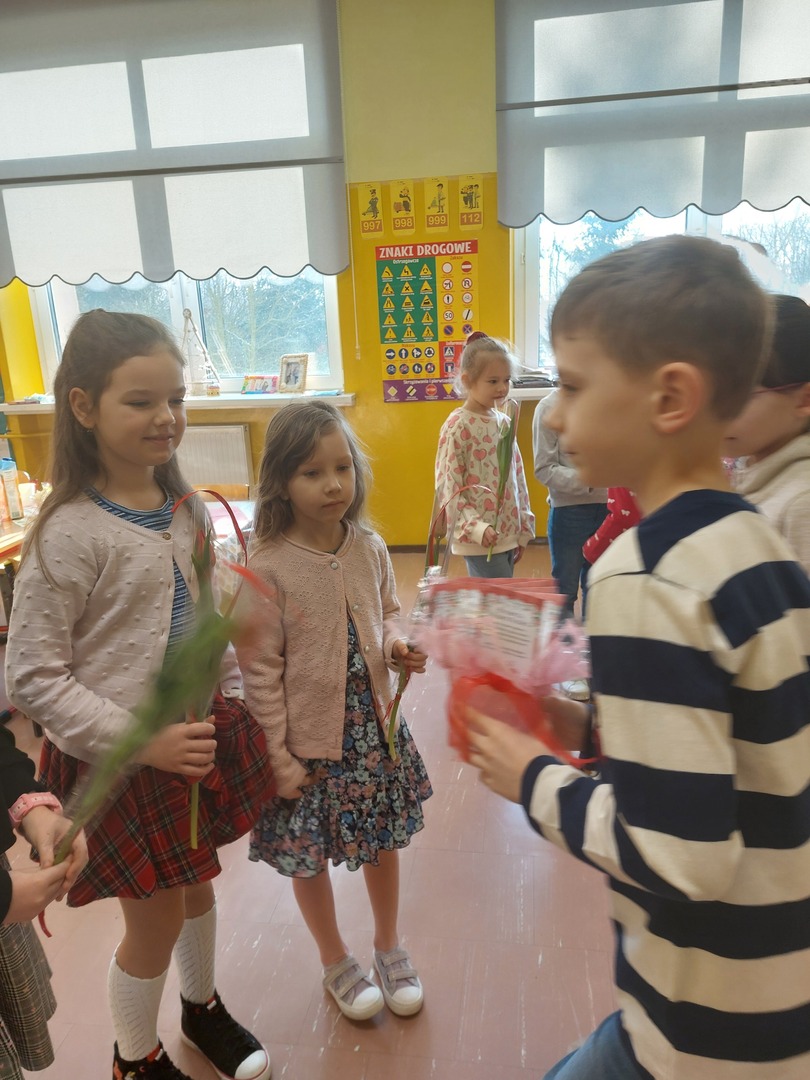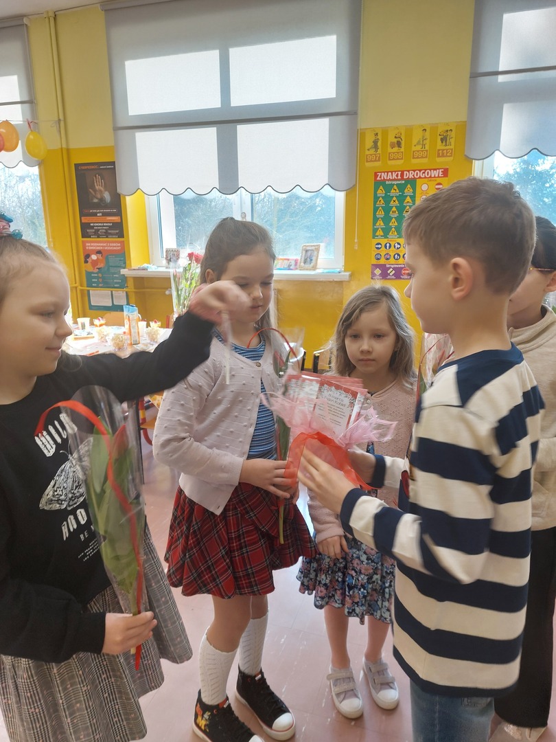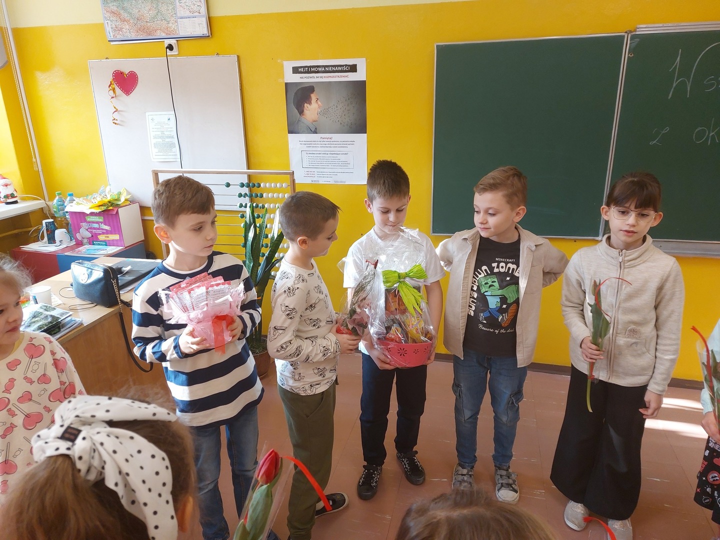 Dziś od rana chłopcy z klasy pierwszej przygotowali dla swoich kochanych koleżanek małą niespodziankę.