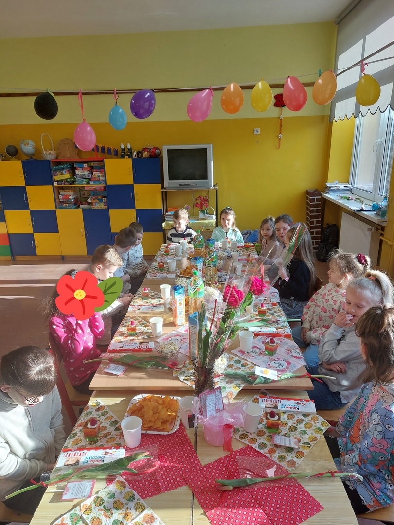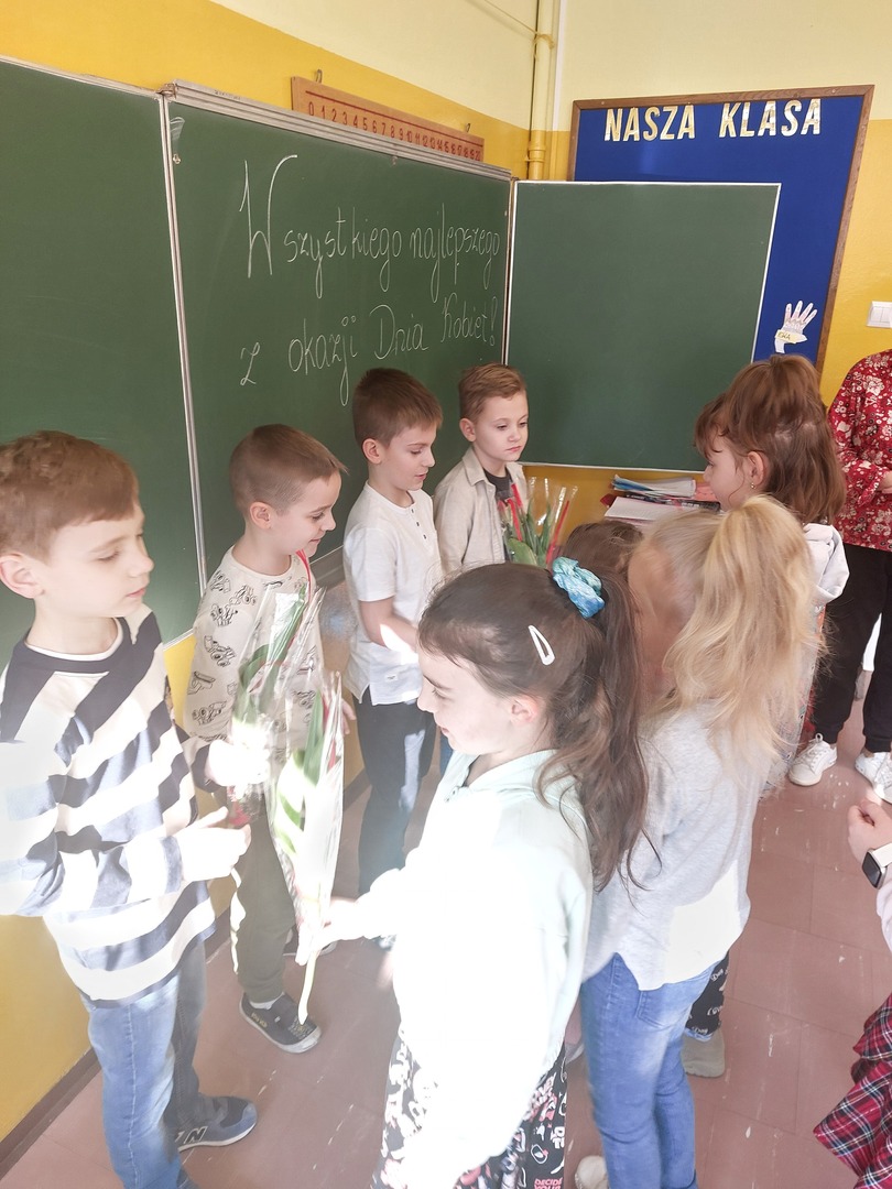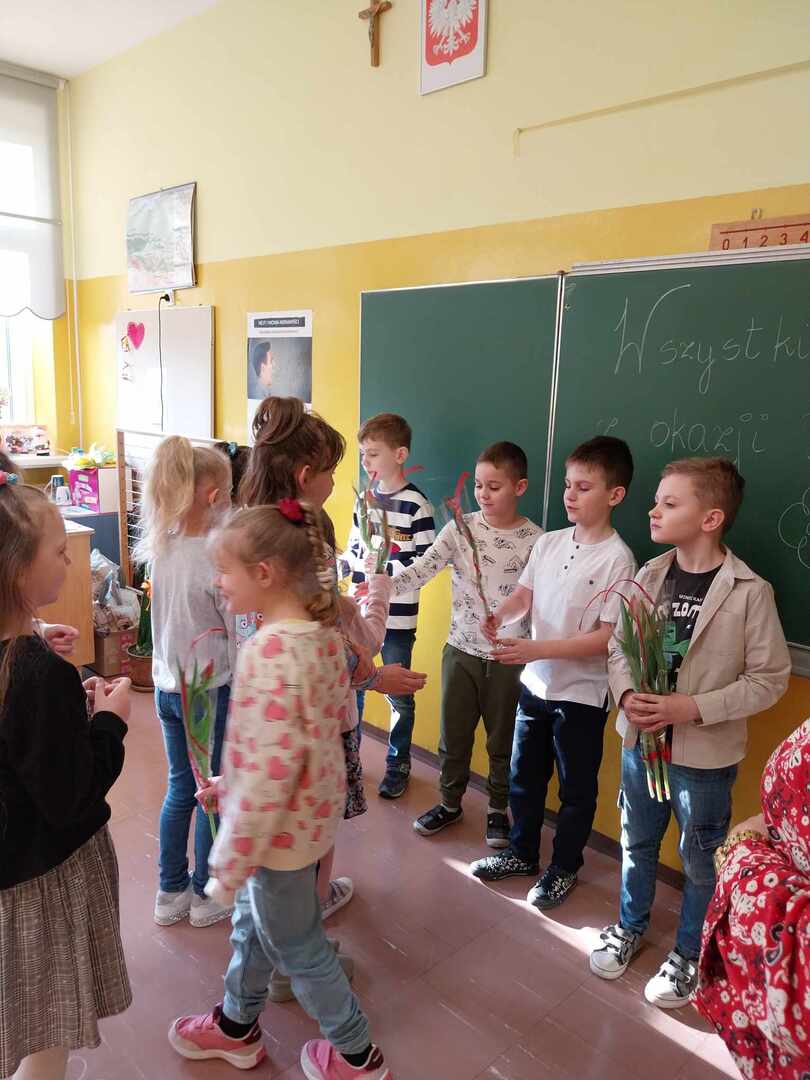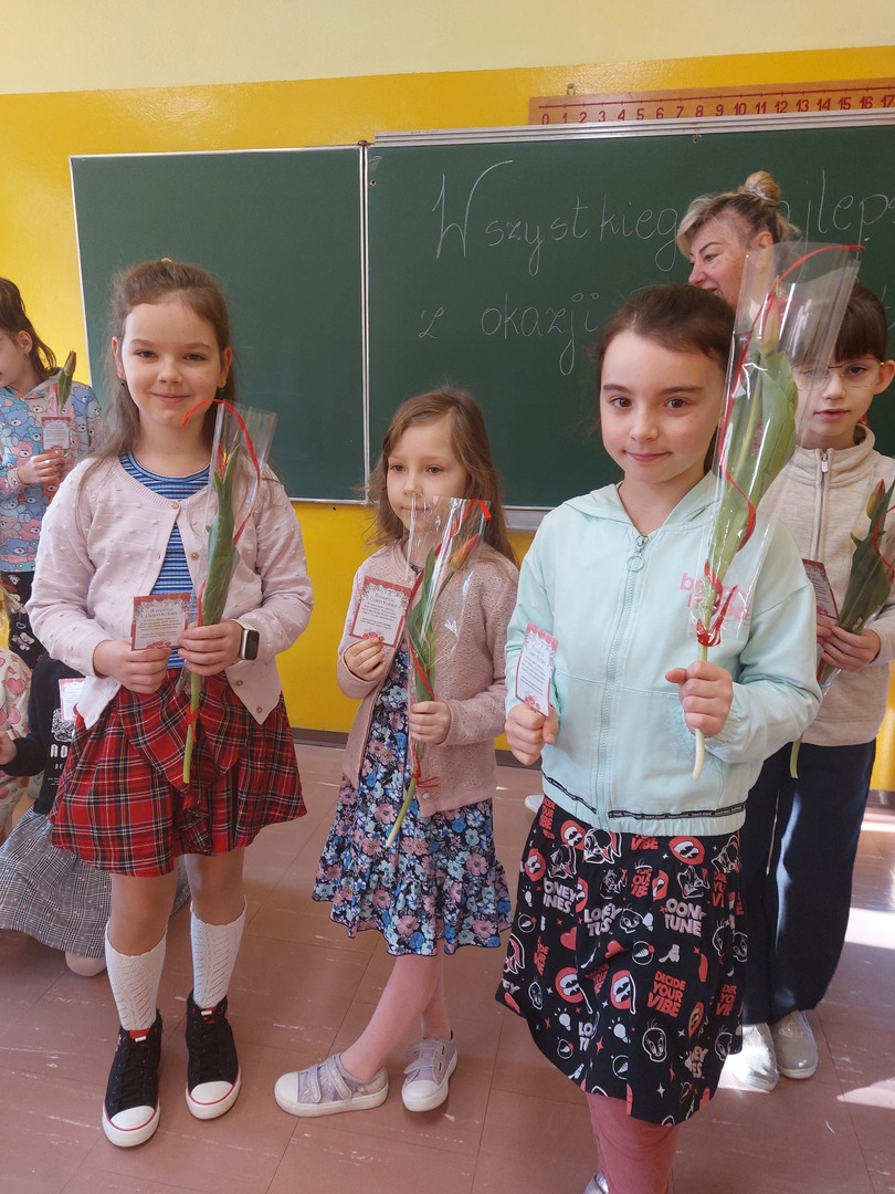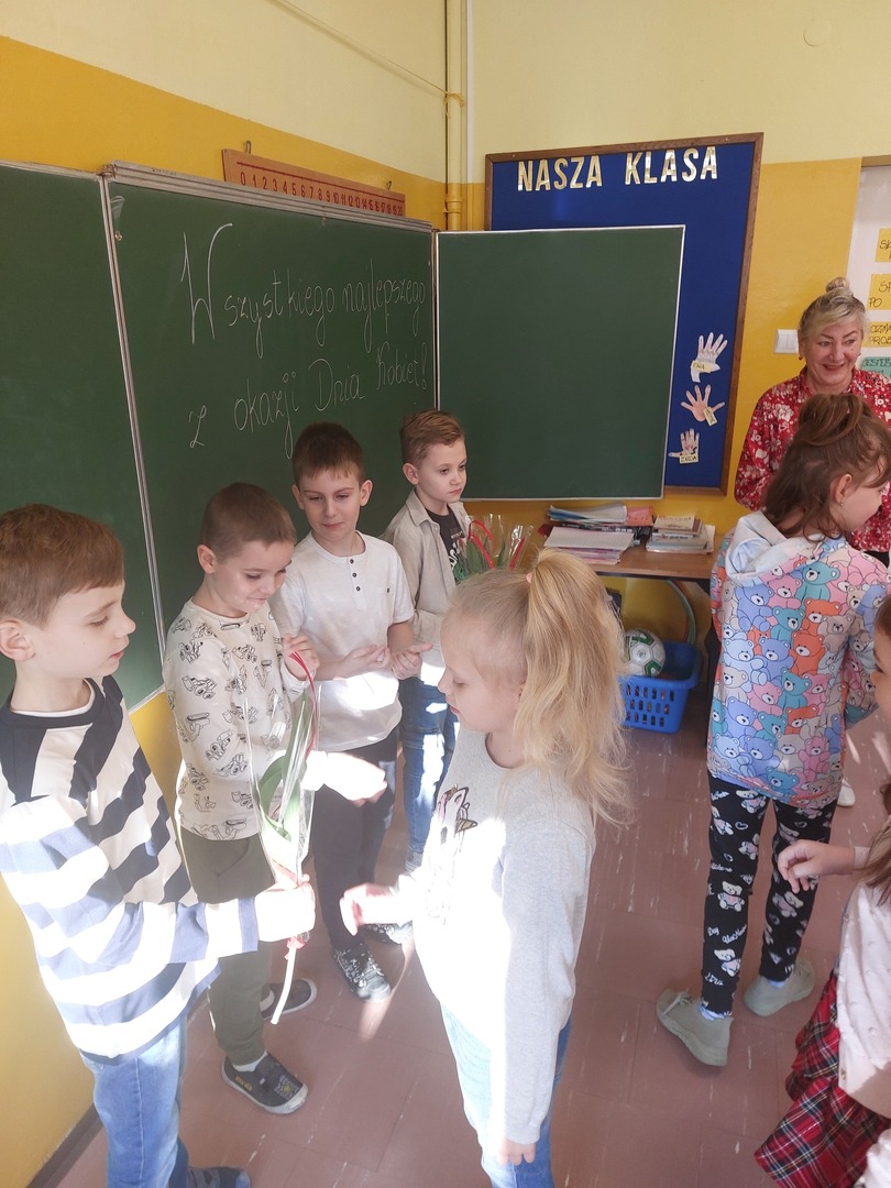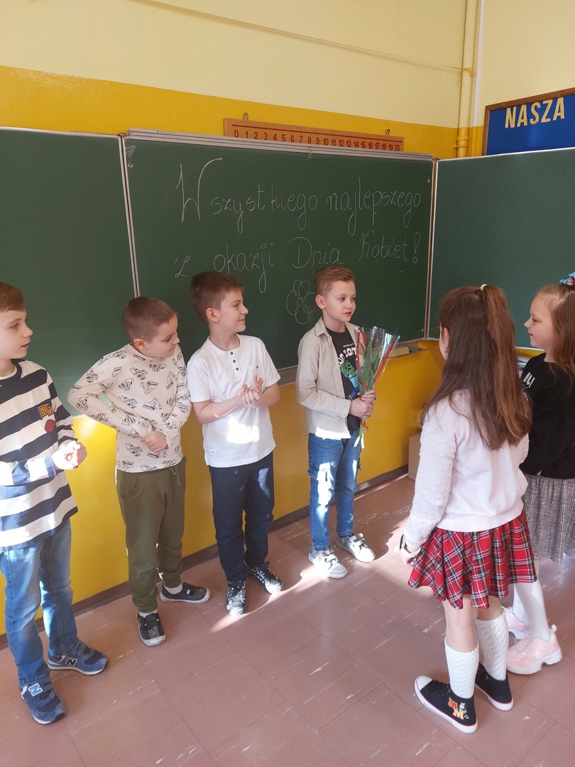 Dziś od rana chłopcy z klasy pierwszej przygotowali dla swoich kochanych koleżanek małą niespodziankę.
